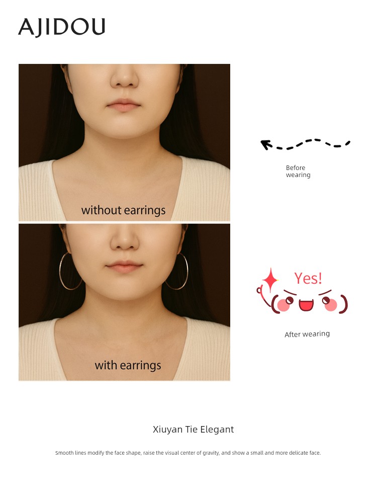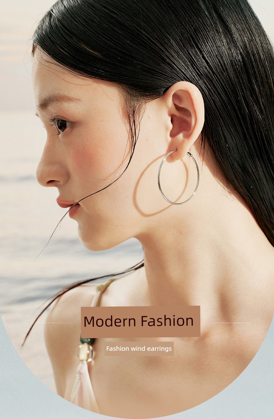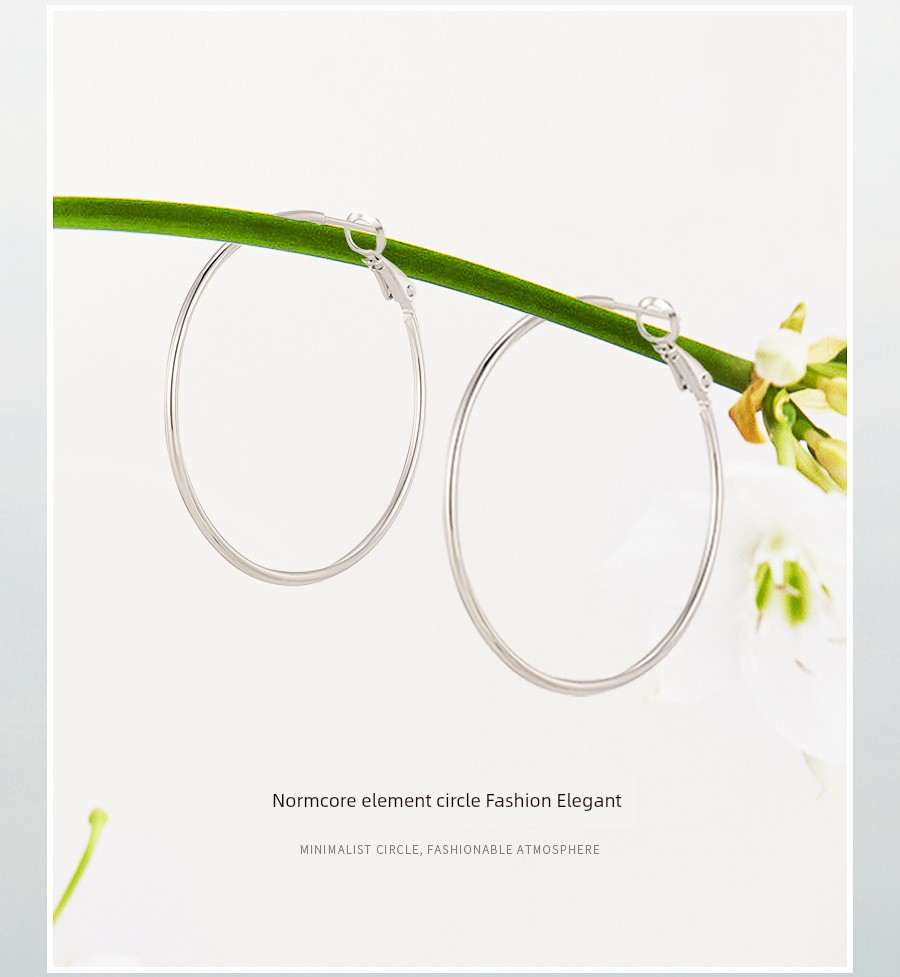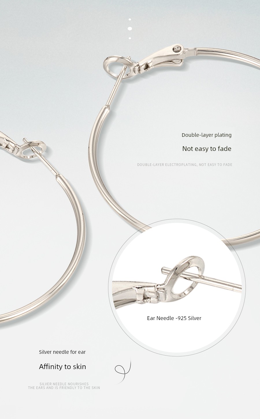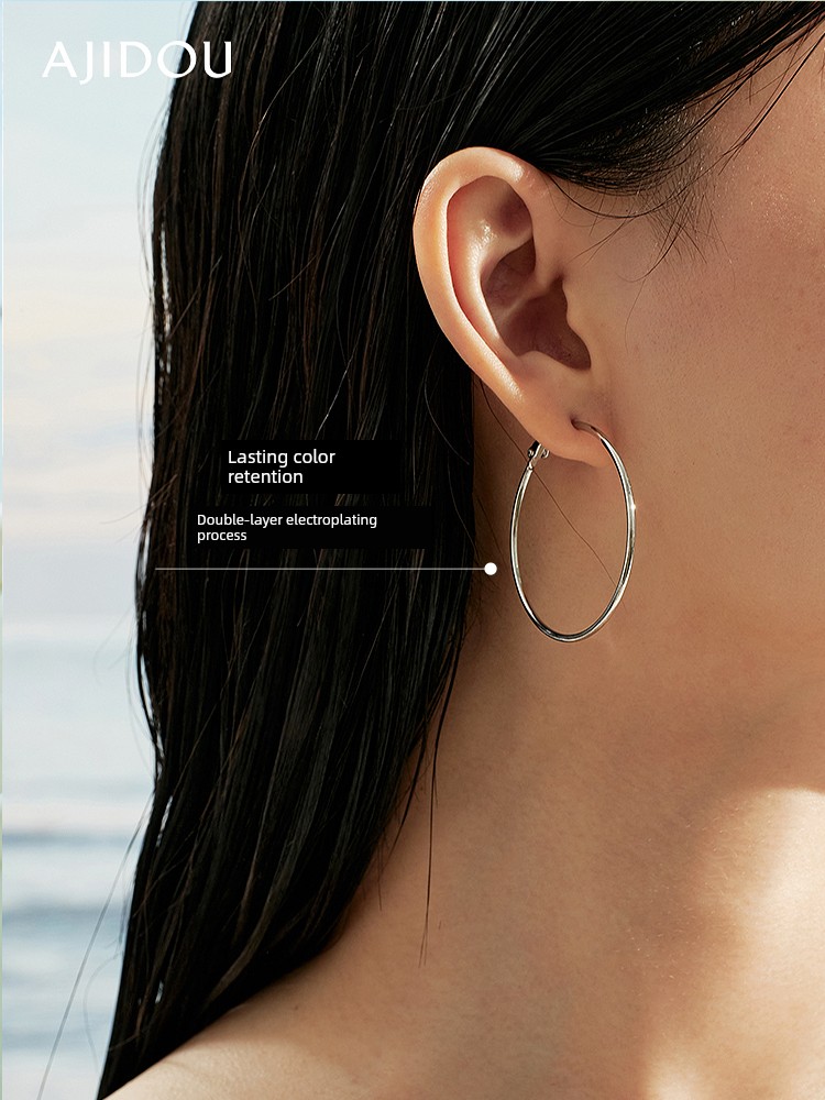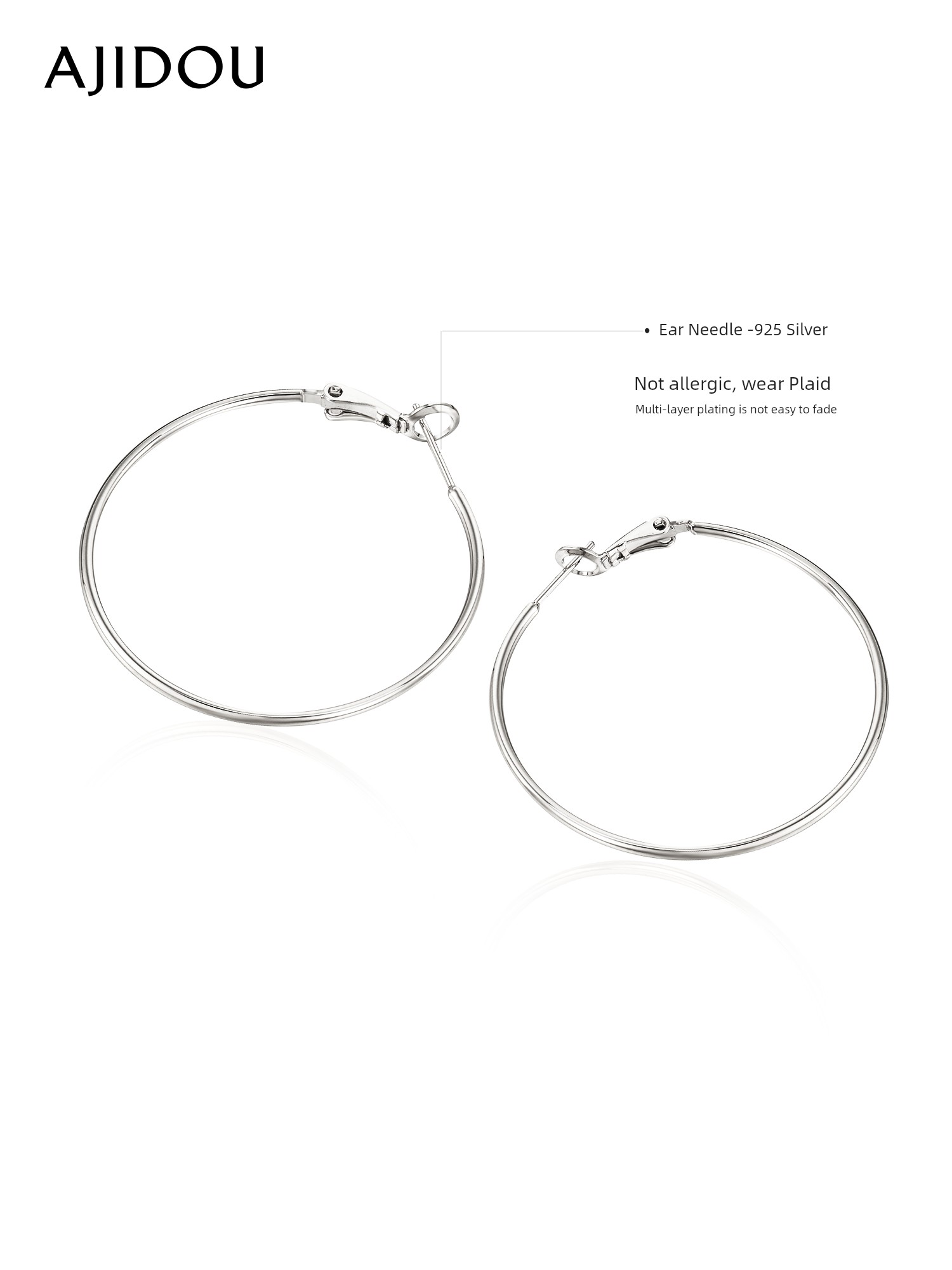 热卖阿吉豆耳圈素圈女款S925银色耳环夸张小众设计圈圈爆款大耳圈耳饰