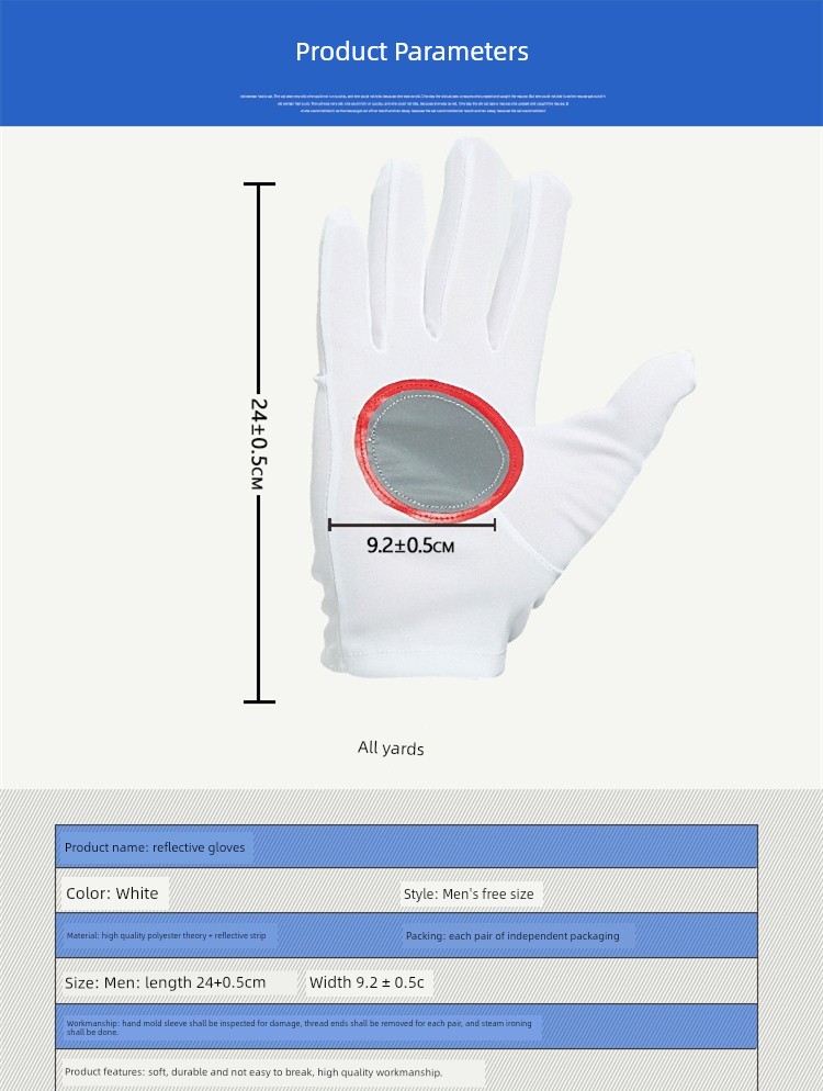热卖夏天季高反光薄夜间安全站岗男女通用礼仪门卫保安健走广场舞手套