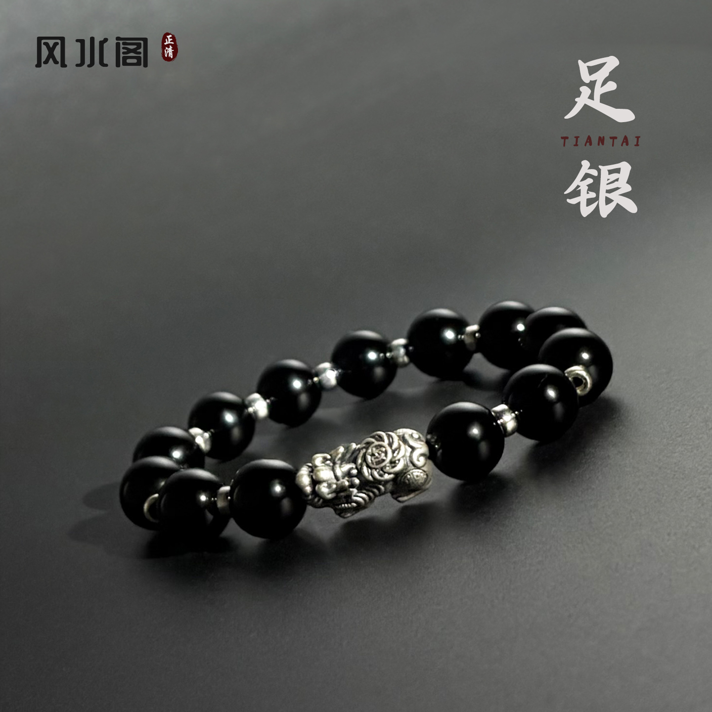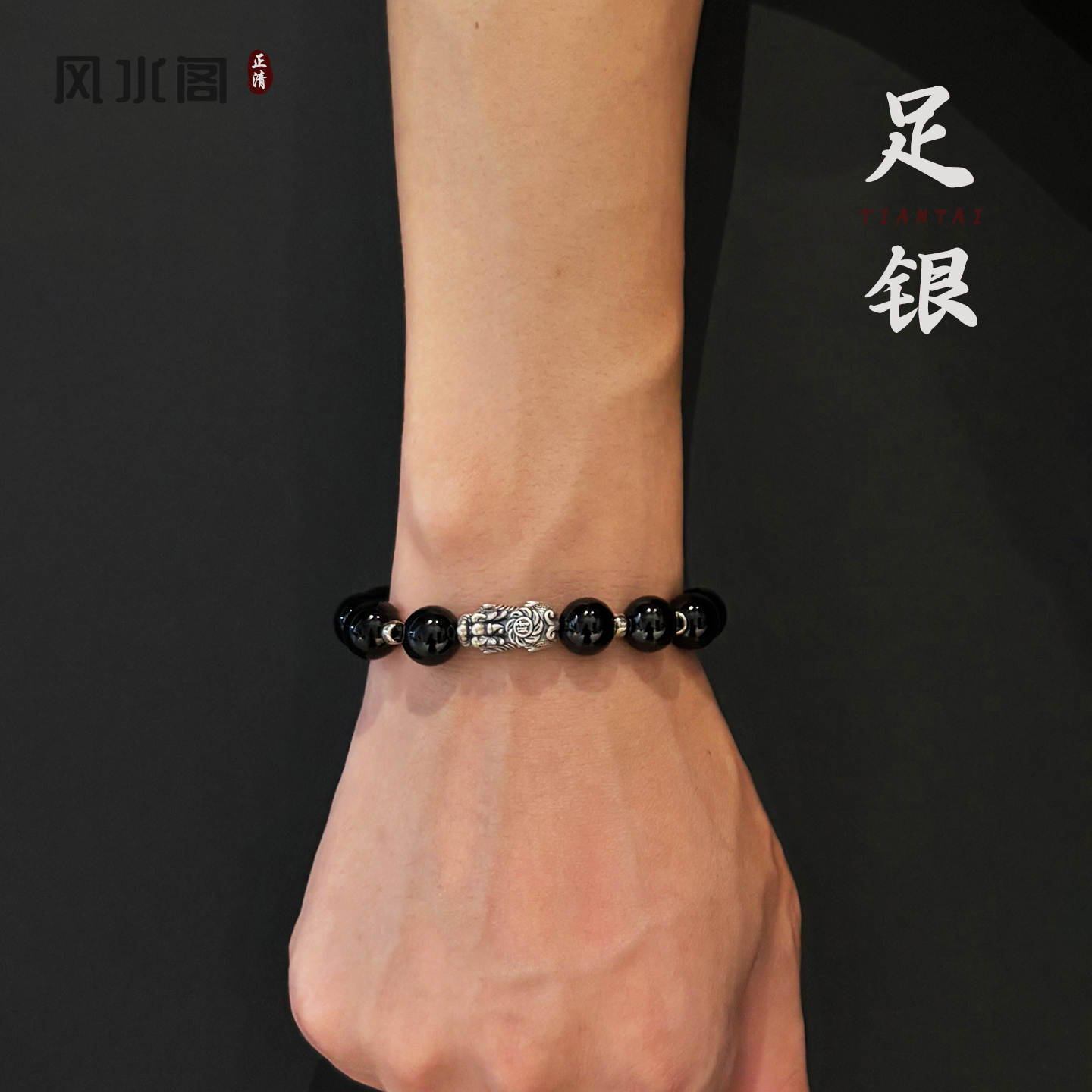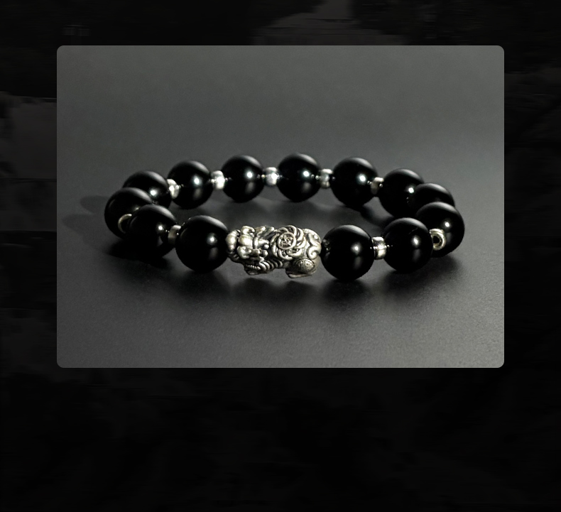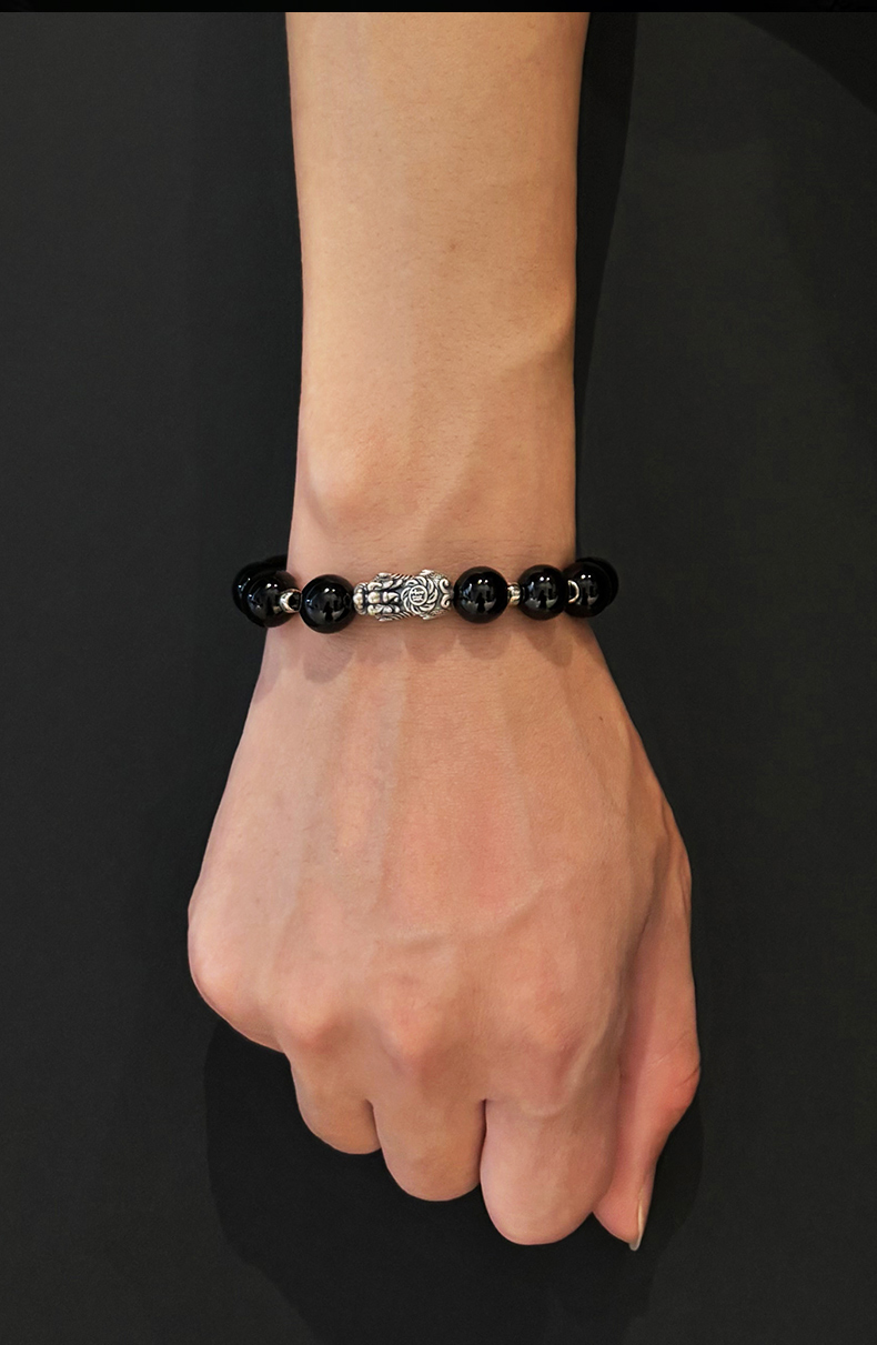 热卖足银貔貅手链天然黑曜石手串男士男款招财转运喜缺补用金水送礼物
