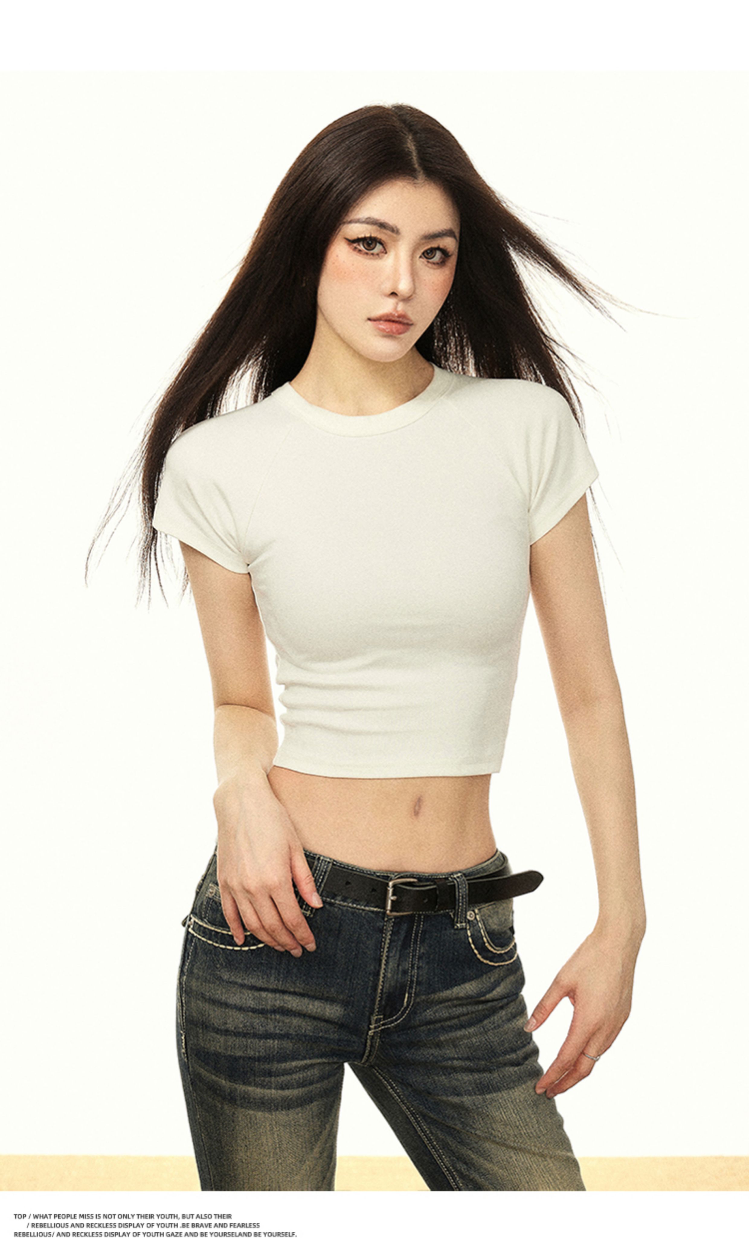 热卖AAISUP白色正肩夏季修身短袖T恤