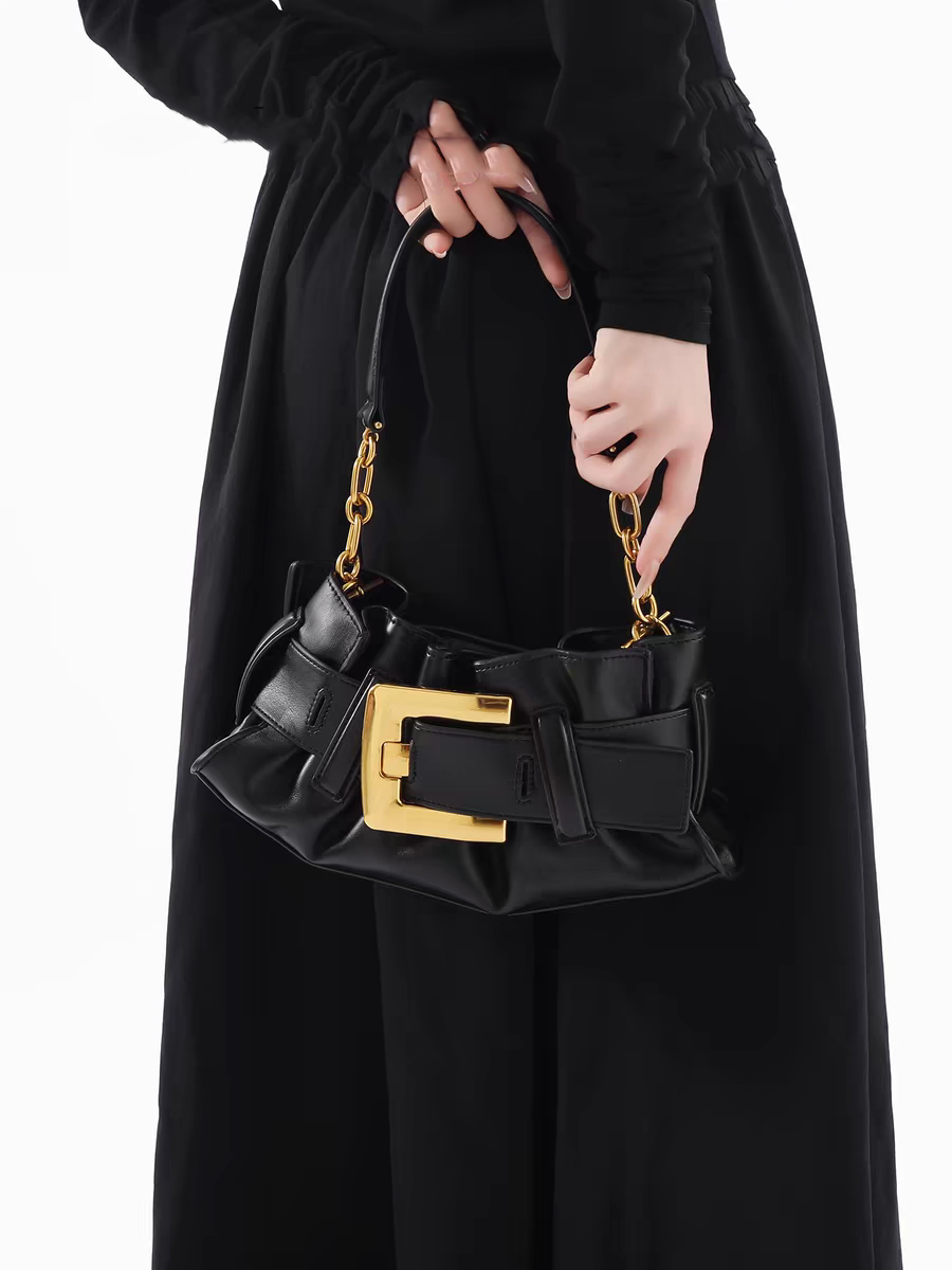 热卖美少女褶皱软皮单肩腋下包女2025秋冬新款通勤百搭手提包
