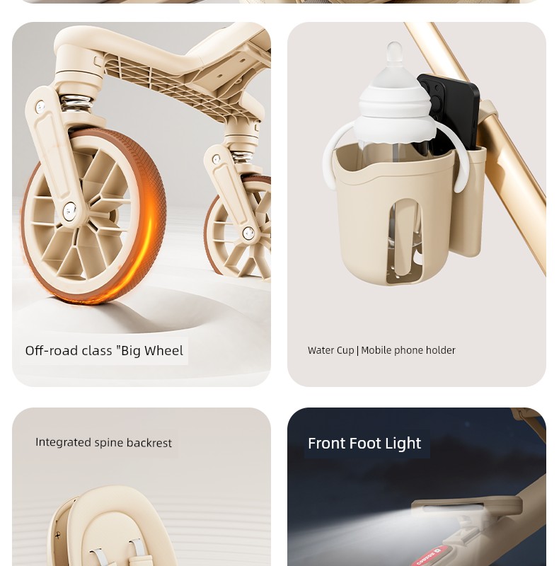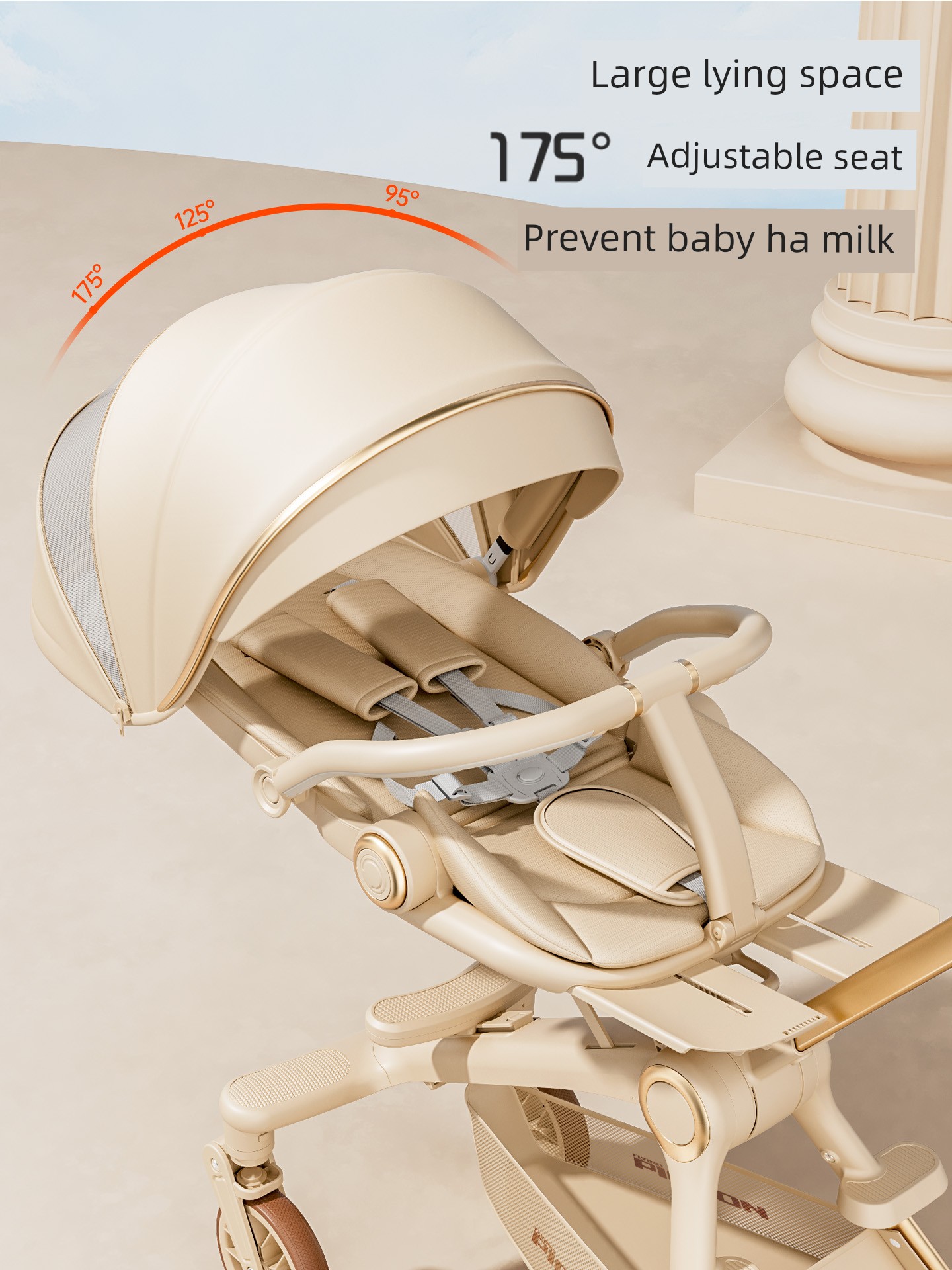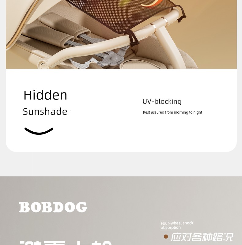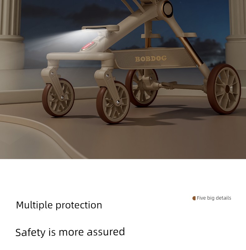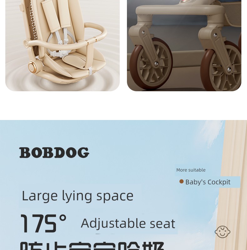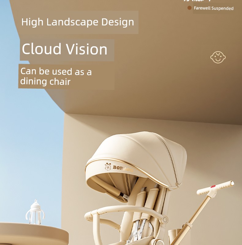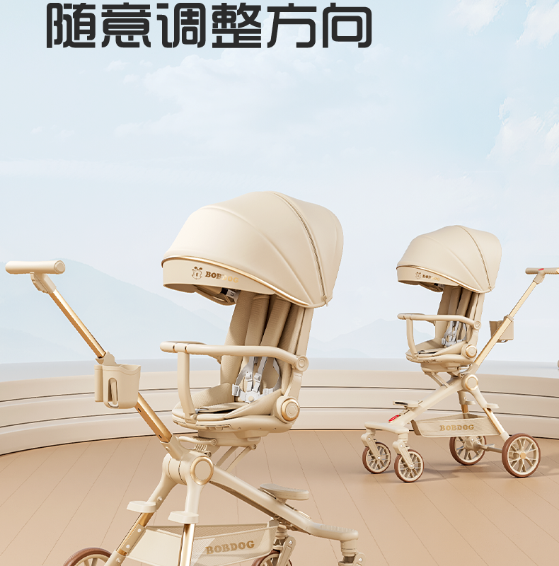 热卖巴布豆溜娃神器高景观一键折叠婴儿遛娃双向四轮避震可坐躺手推车