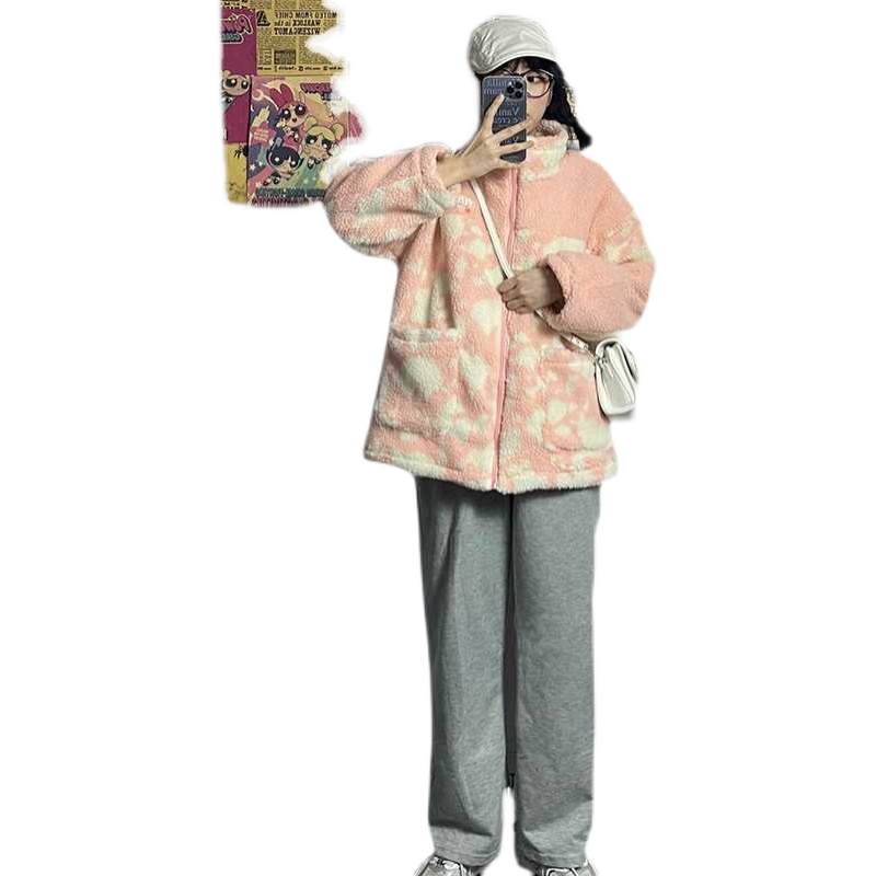 热卖羊羔绒立领短款女2022秋冬新款洋气可爱宽松颗粒绒小个子上衣外套