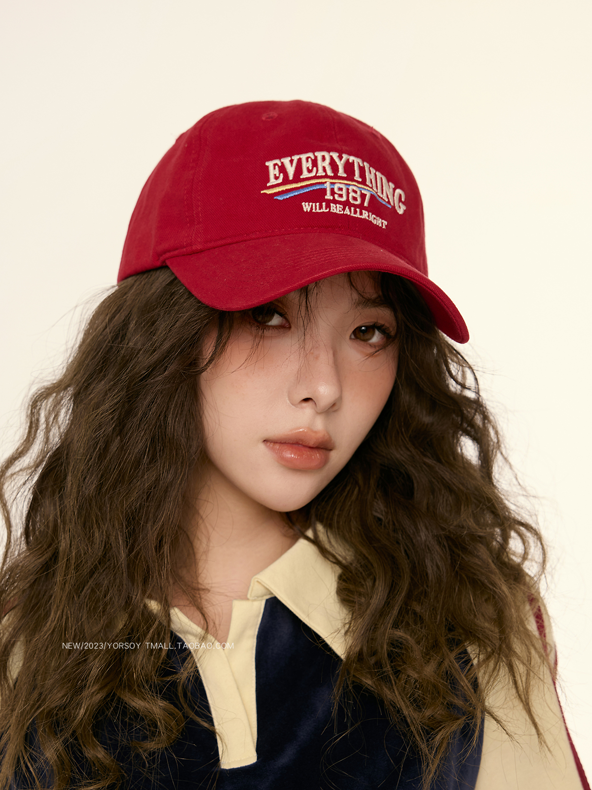 热卖显白酒红色女休闲宽弯檐鸭舌帽子