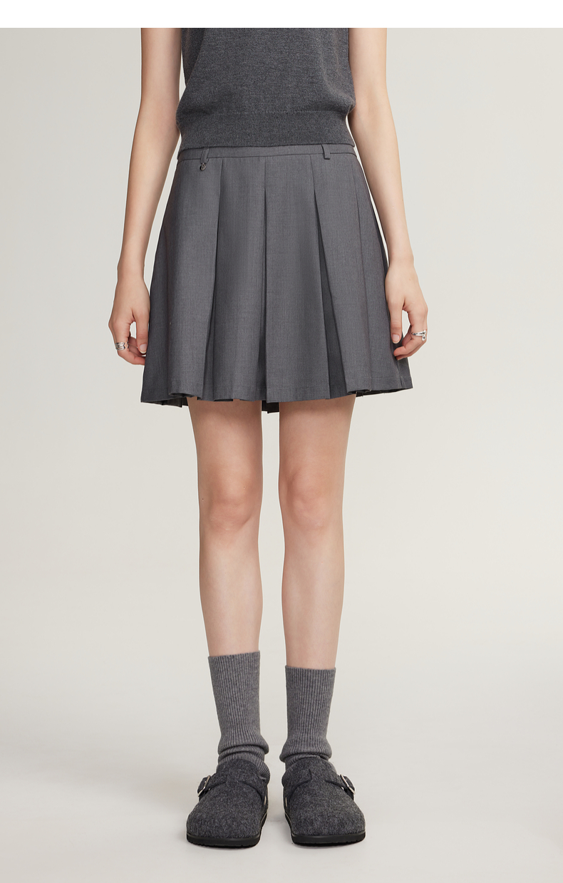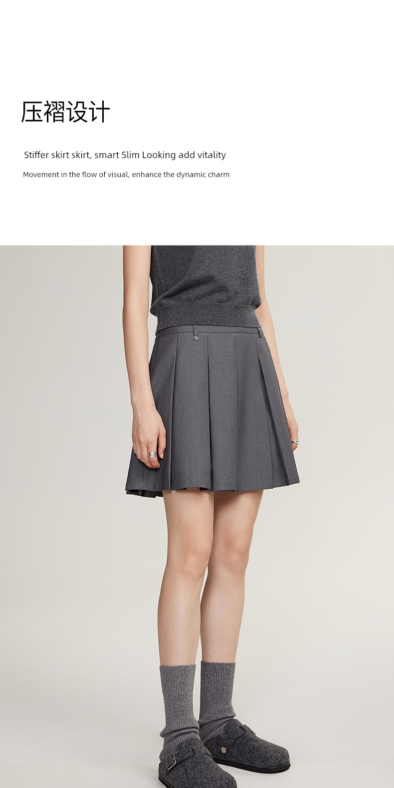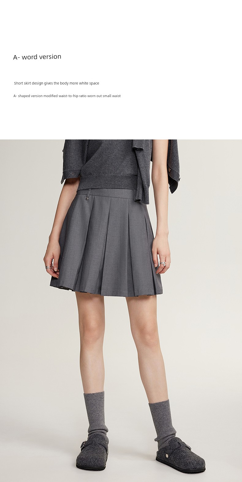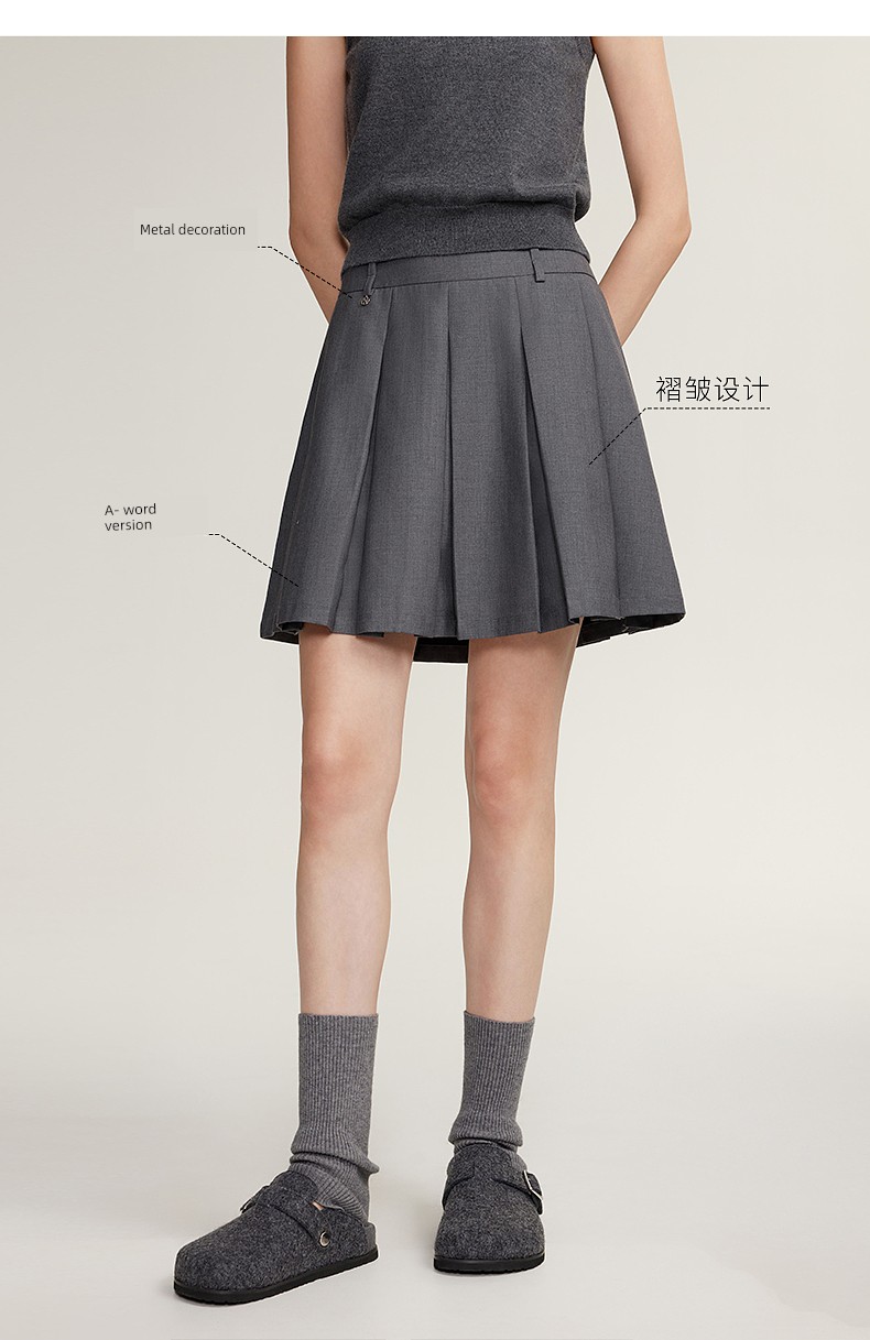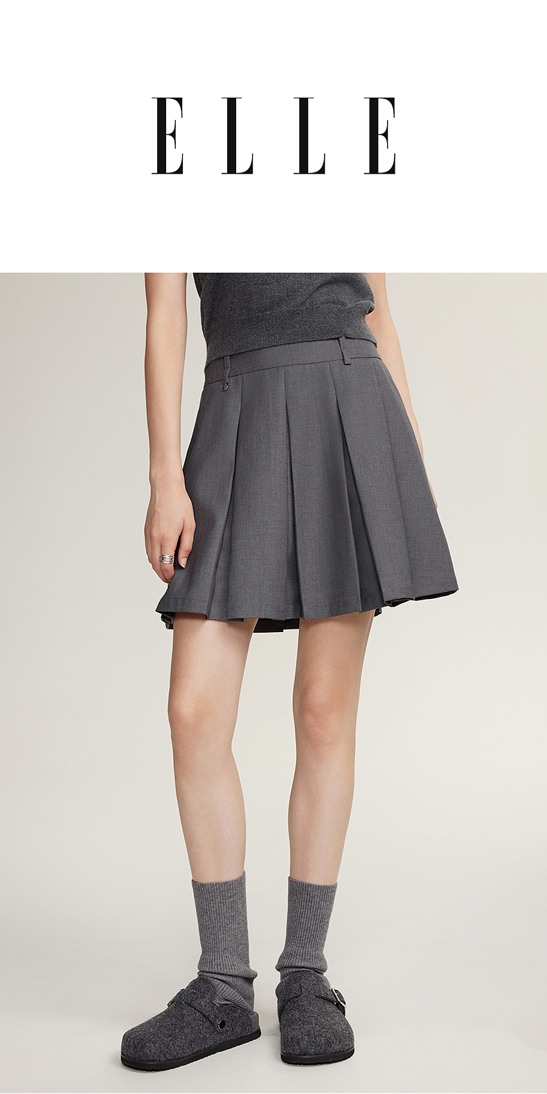 热卖ELLE学院灰色高腰显瘦秋季百褶裙