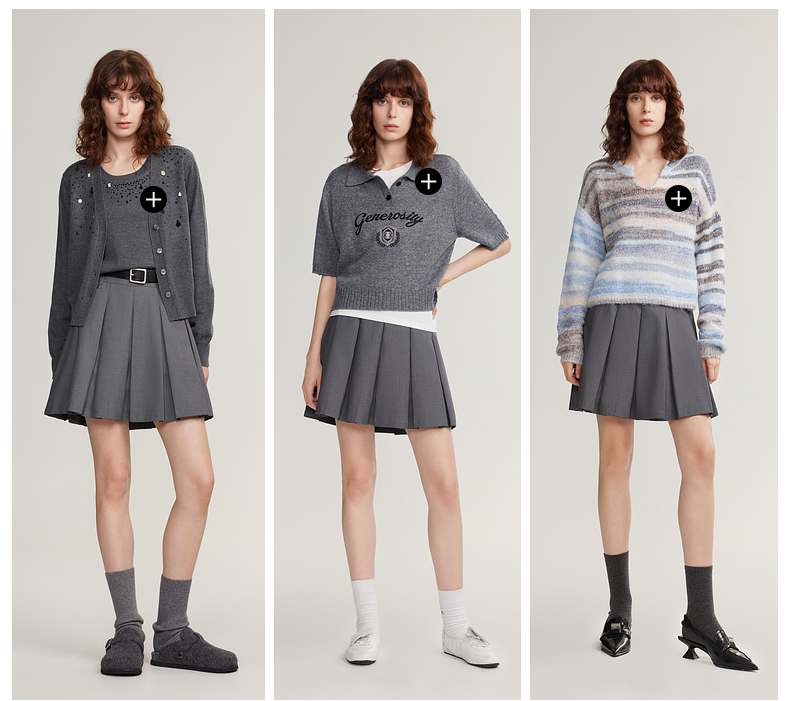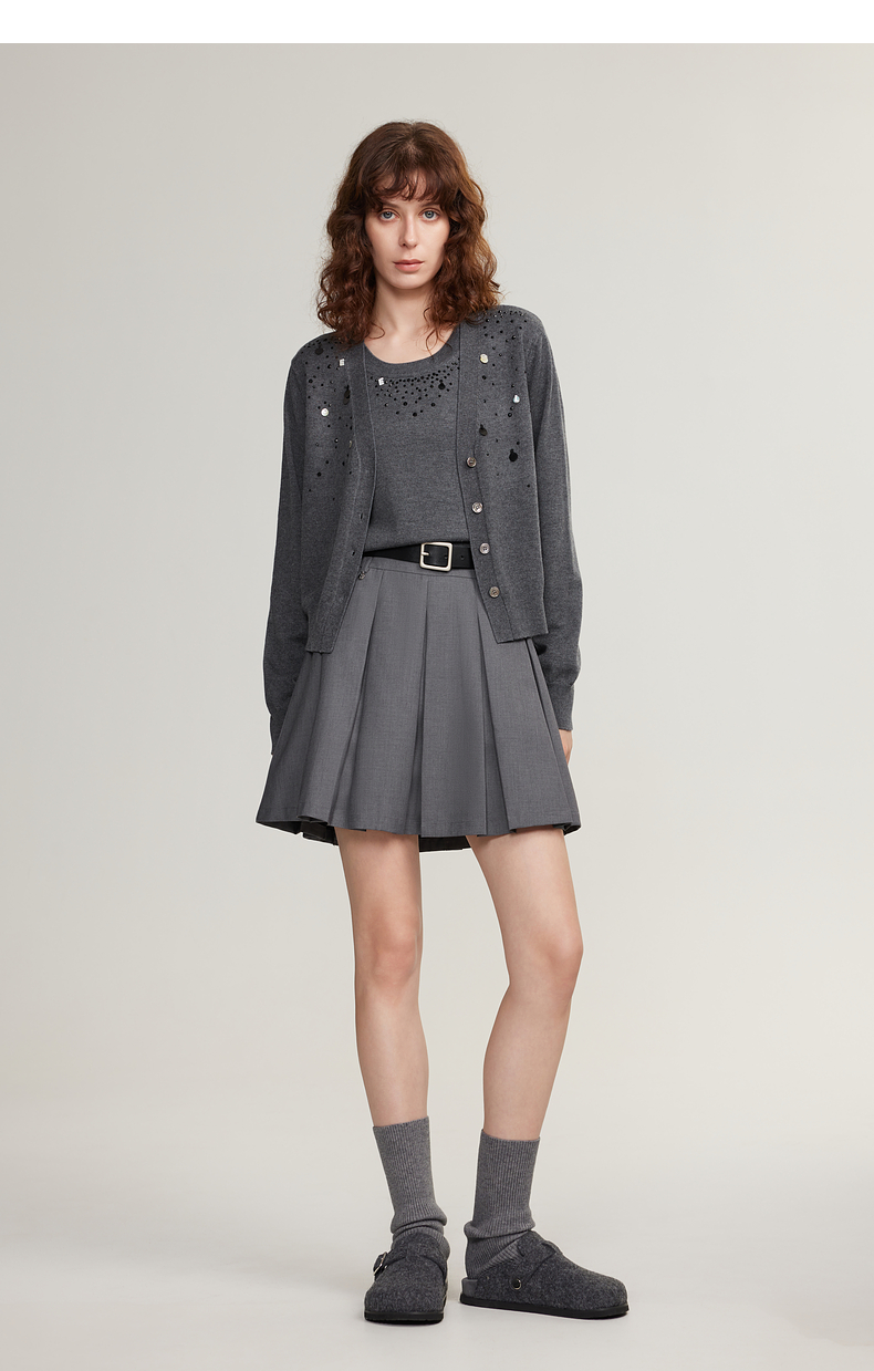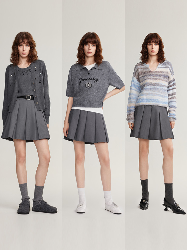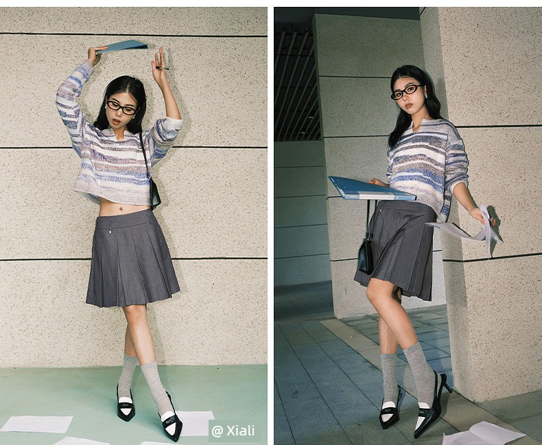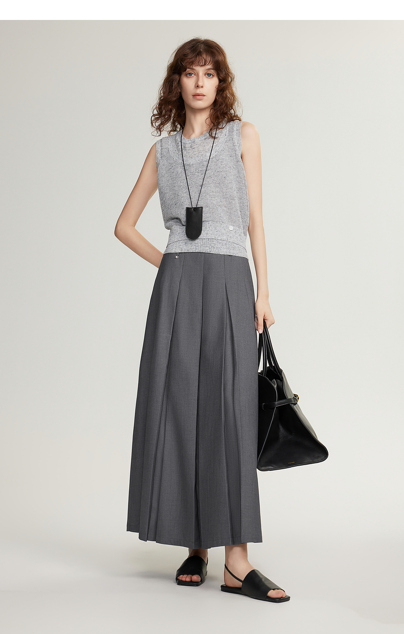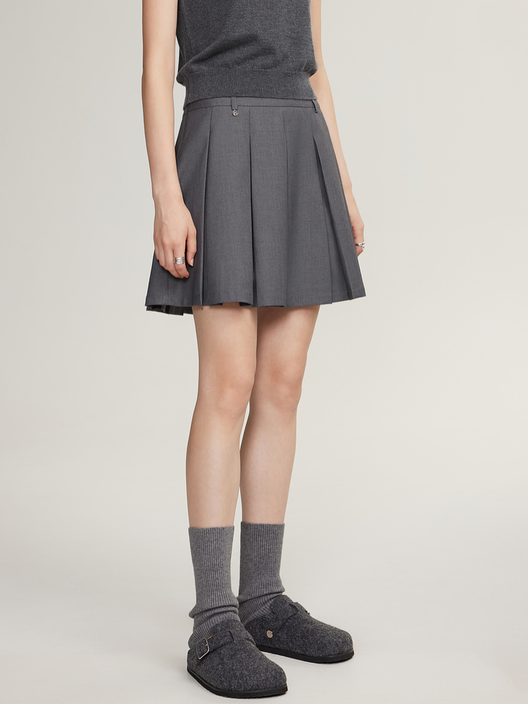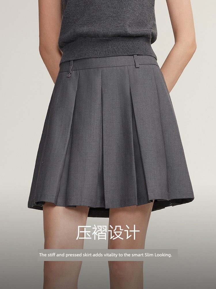 热卖ELLE学院灰色高腰显瘦秋季百褶裙