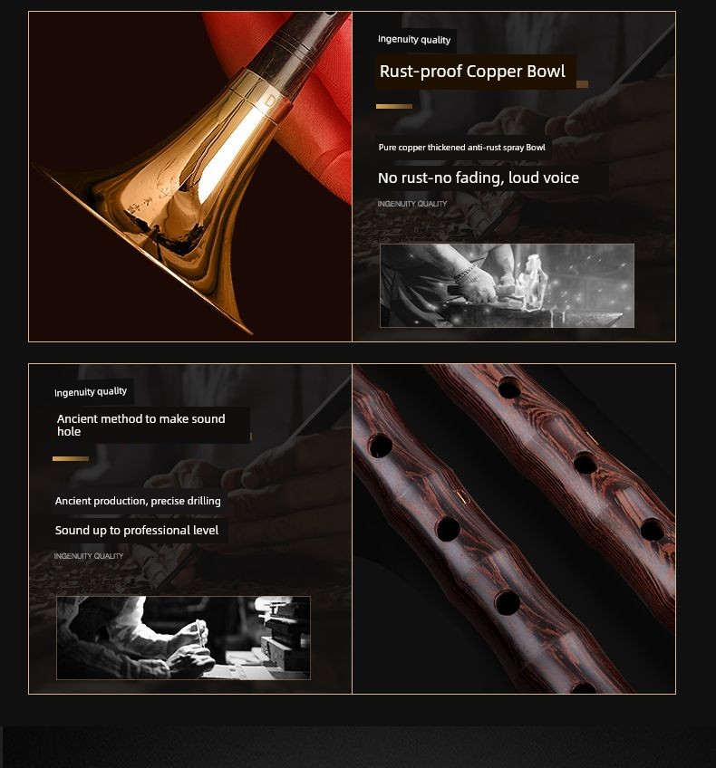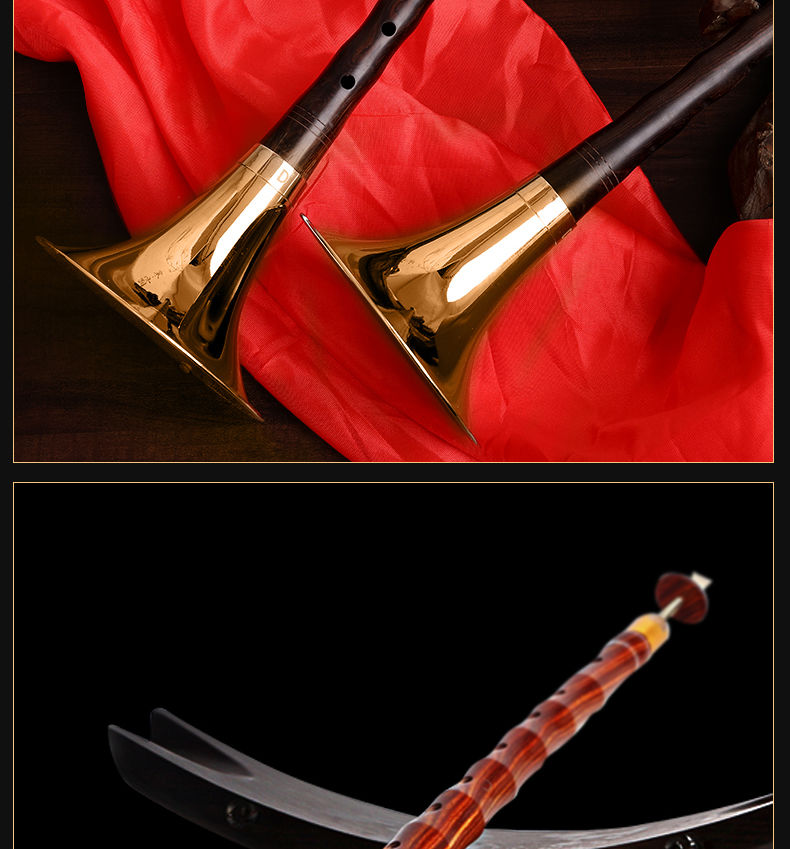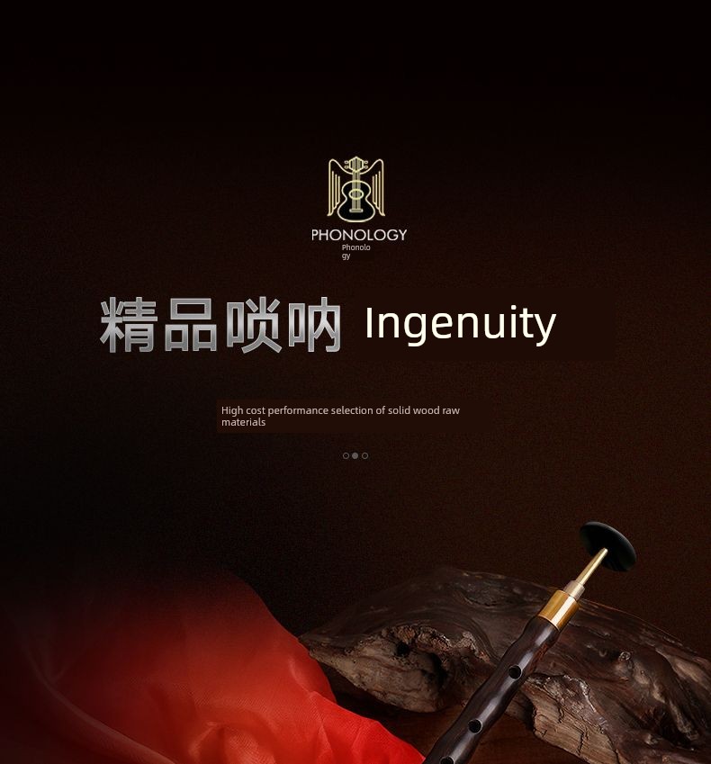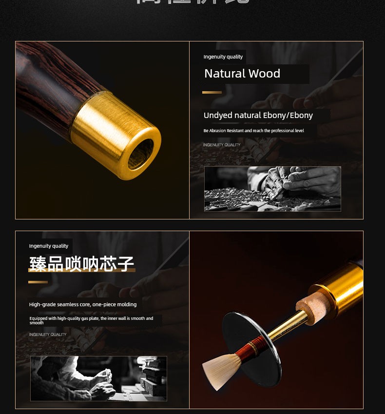 热卖演奏专业乌木黑檀木唢呐乐器全套d调D调初学者儿童入门大小号喇叭