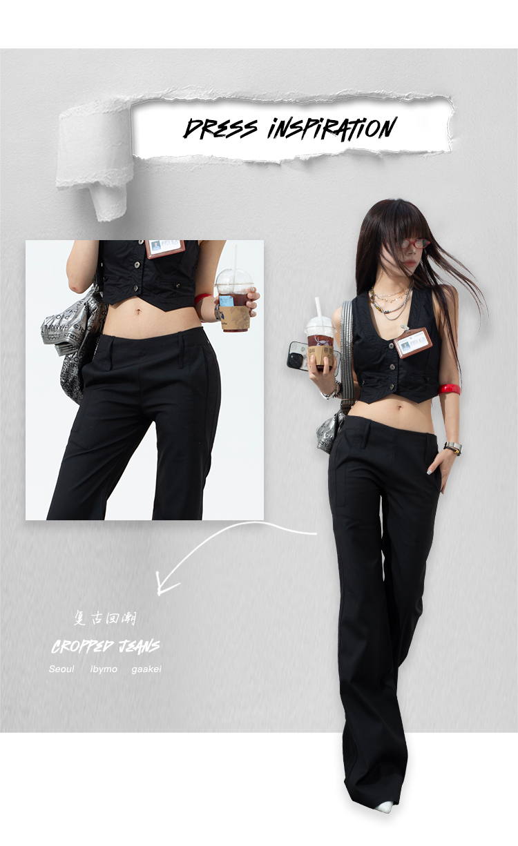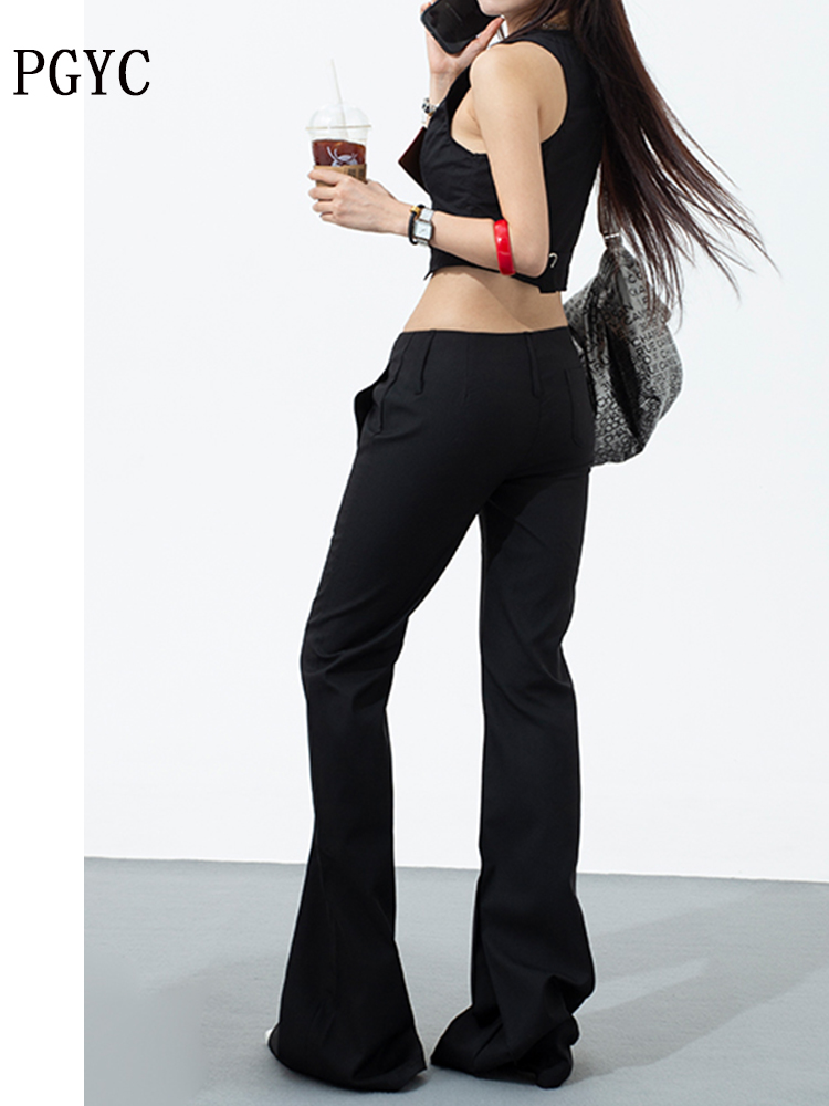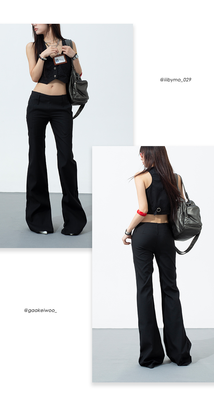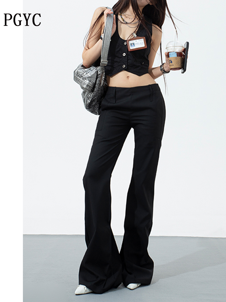 热卖黑色低腰西装微喇裤女2025春夏新款辣妹修身显瘦百搭直筒休闲裤子