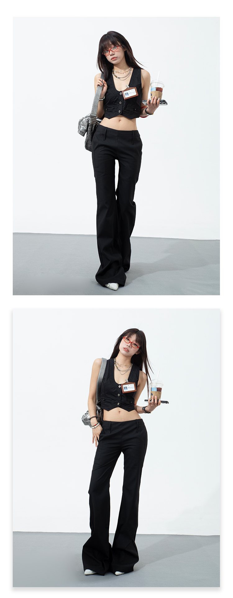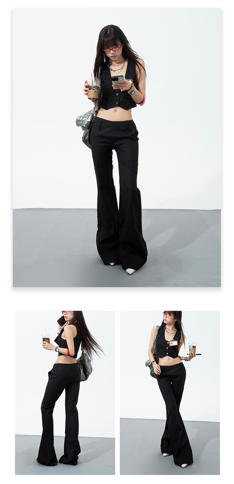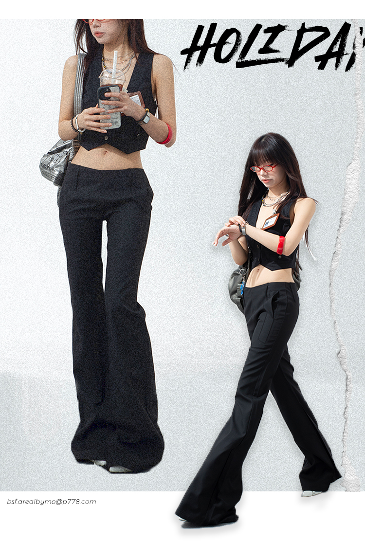 热卖黑色低腰西装微喇裤女2025春夏新款辣妹修身显瘦百搭直筒休闲裤子