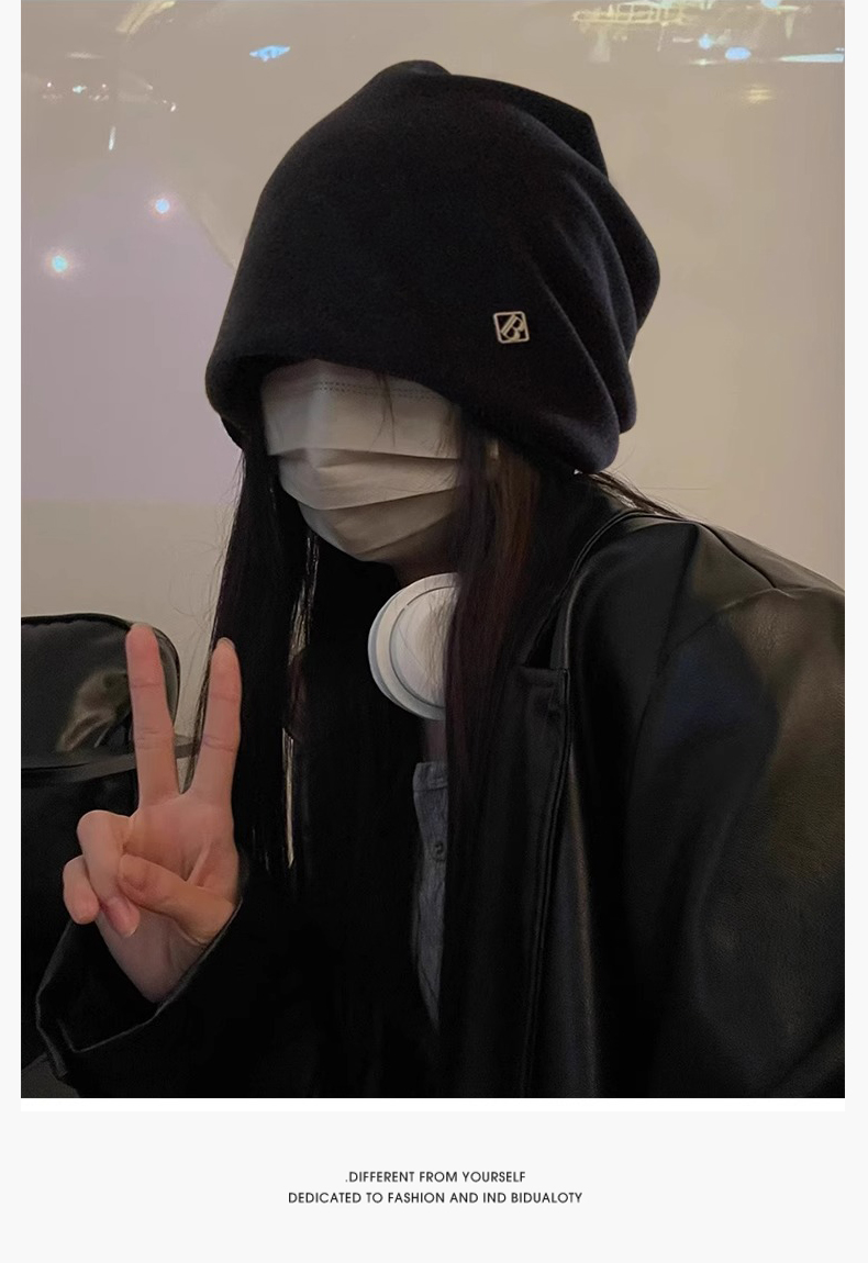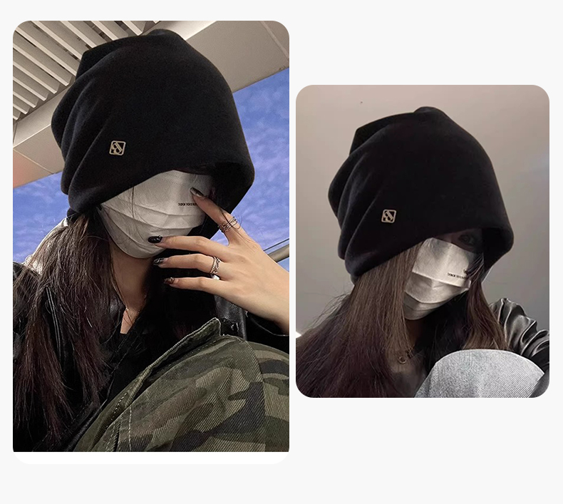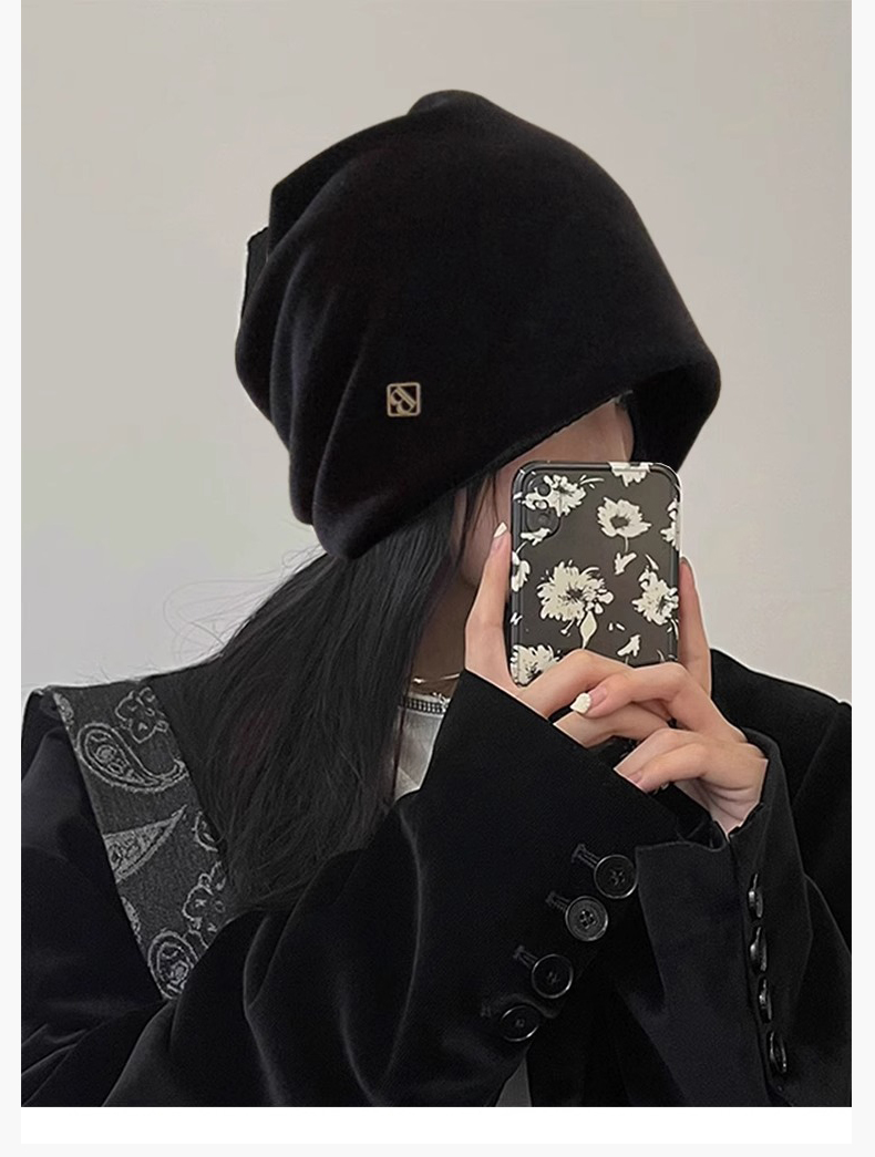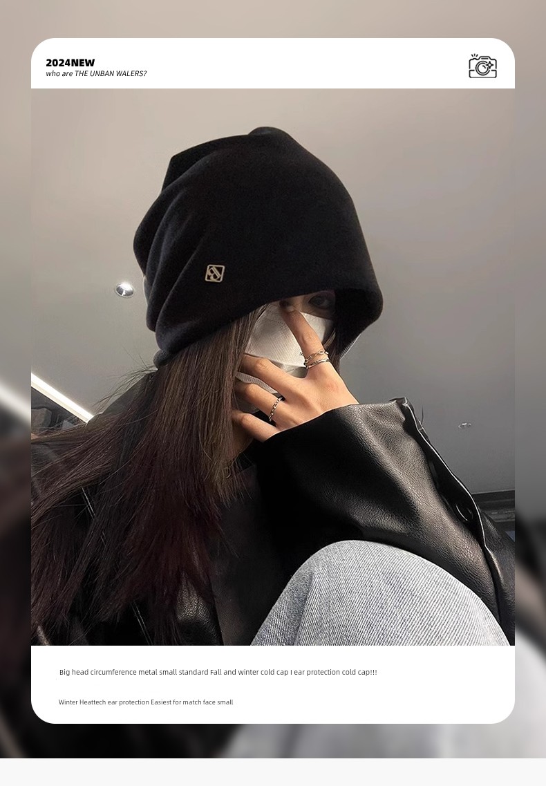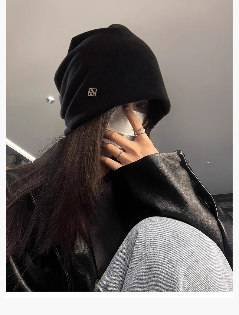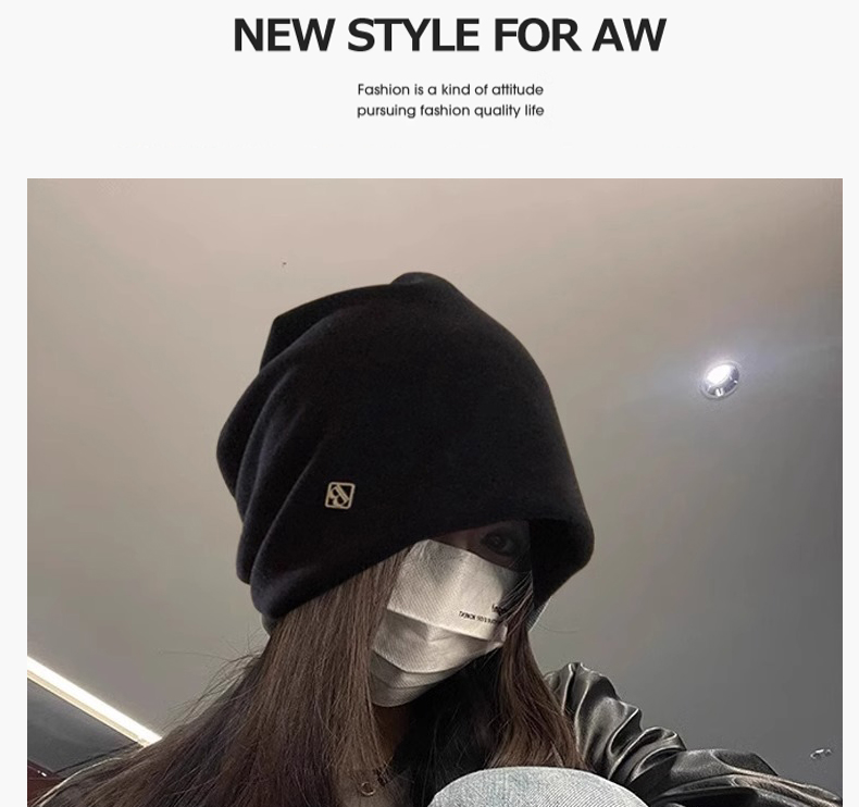 热卖冷帽高级感金属小标女士秋冬2025新款宽松保暖针织小众包头堆堆帽