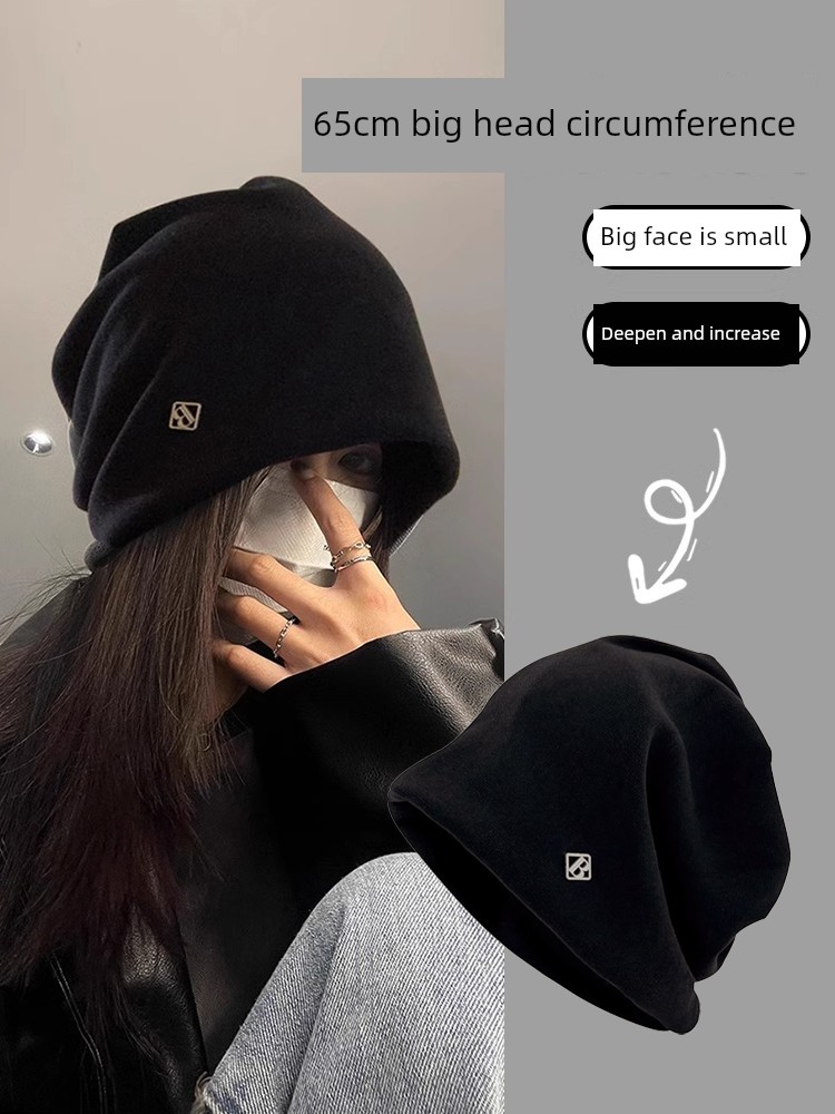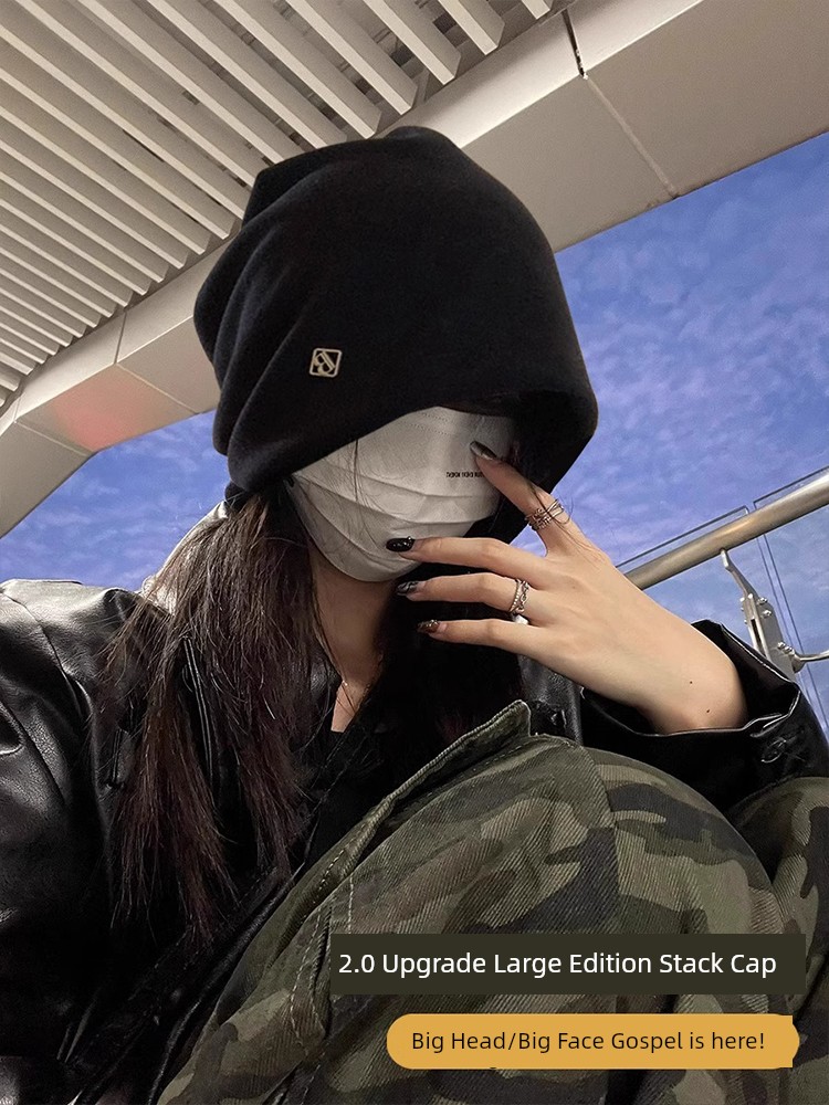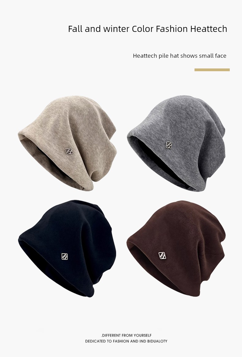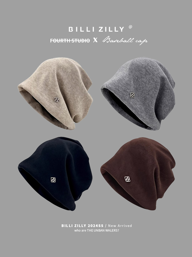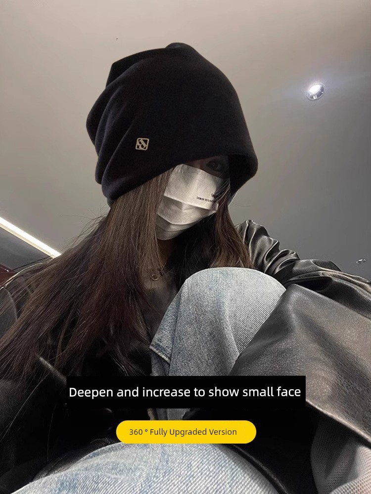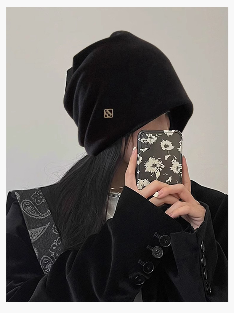 热卖冷帽高级感金属小标女士秋冬2025新款宽松保暖针织小众包头堆堆帽