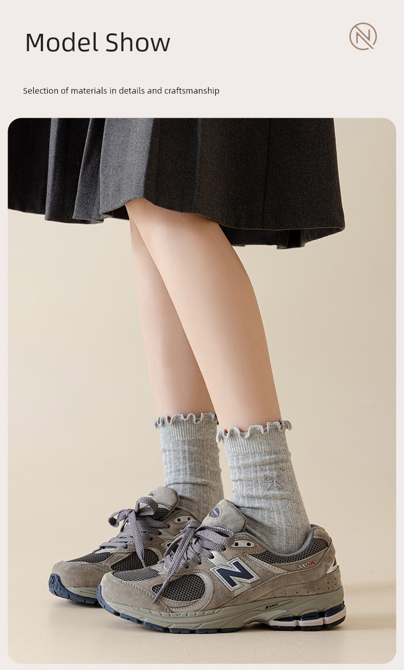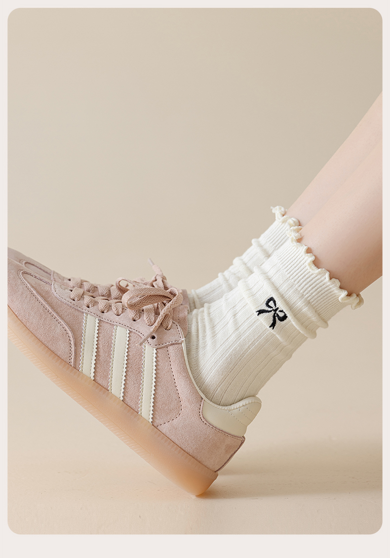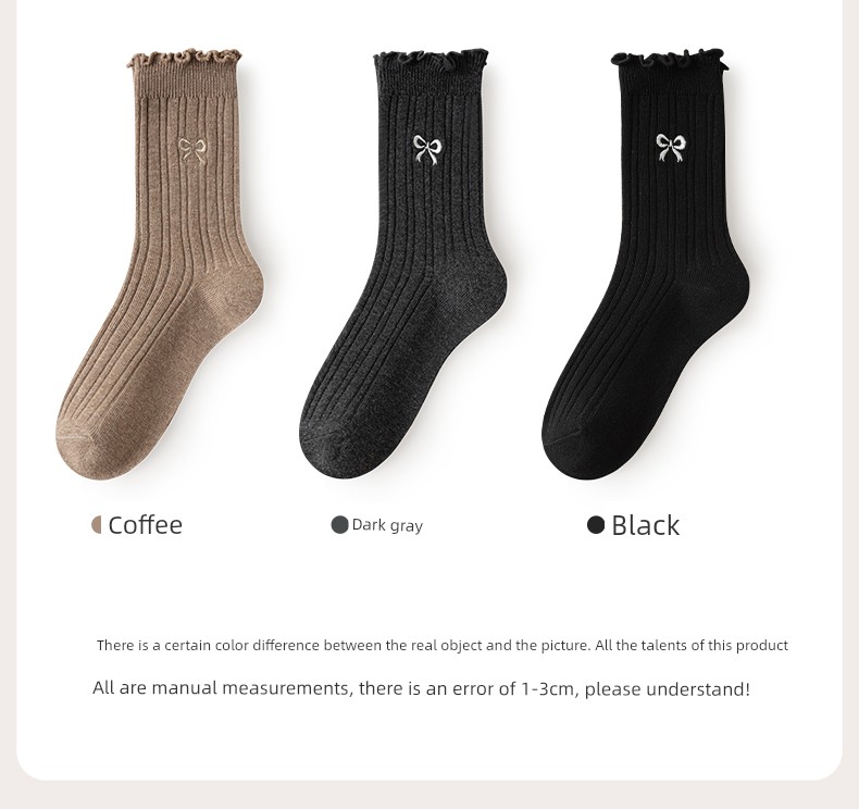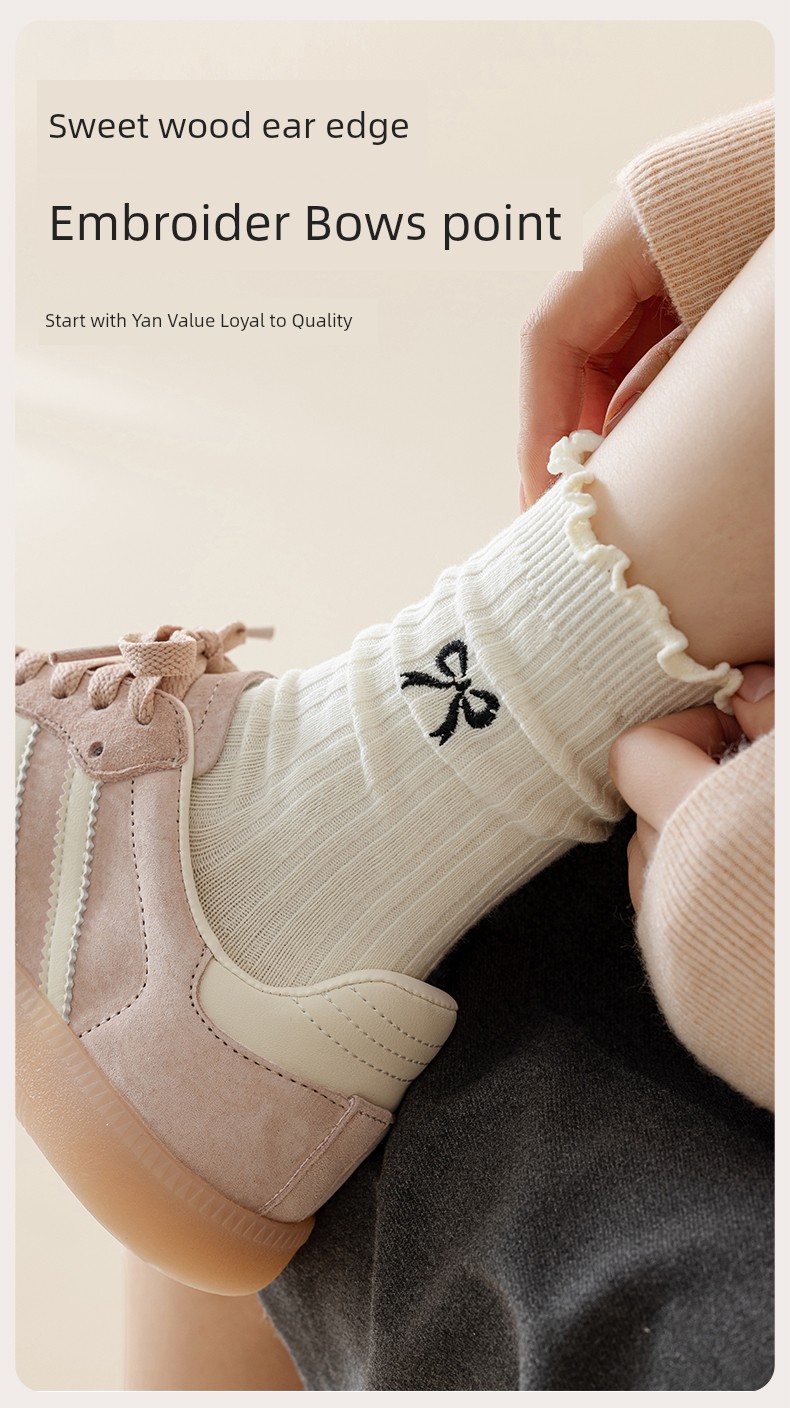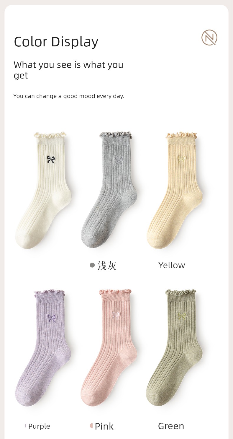 热卖灰色蝴蝶结袜子女秋季薄款中筒袜纯棉袜2025新款miu系花边堆堆袜