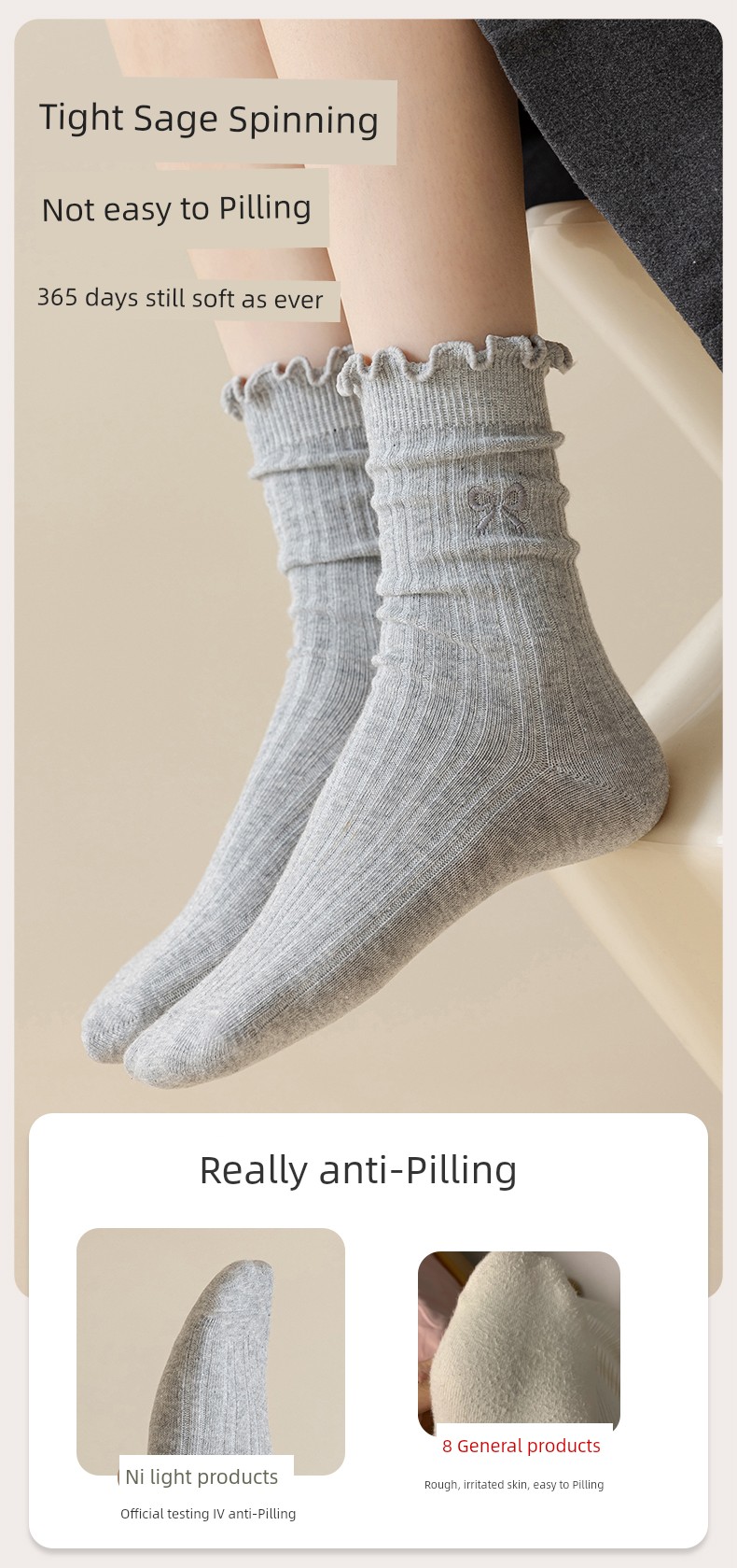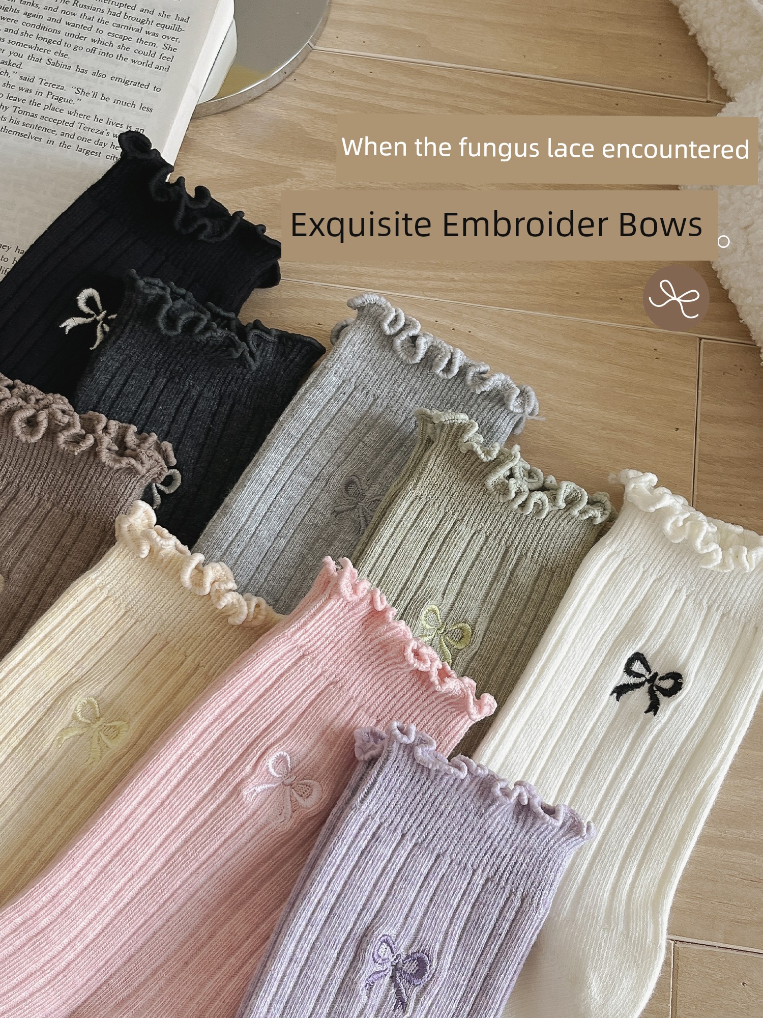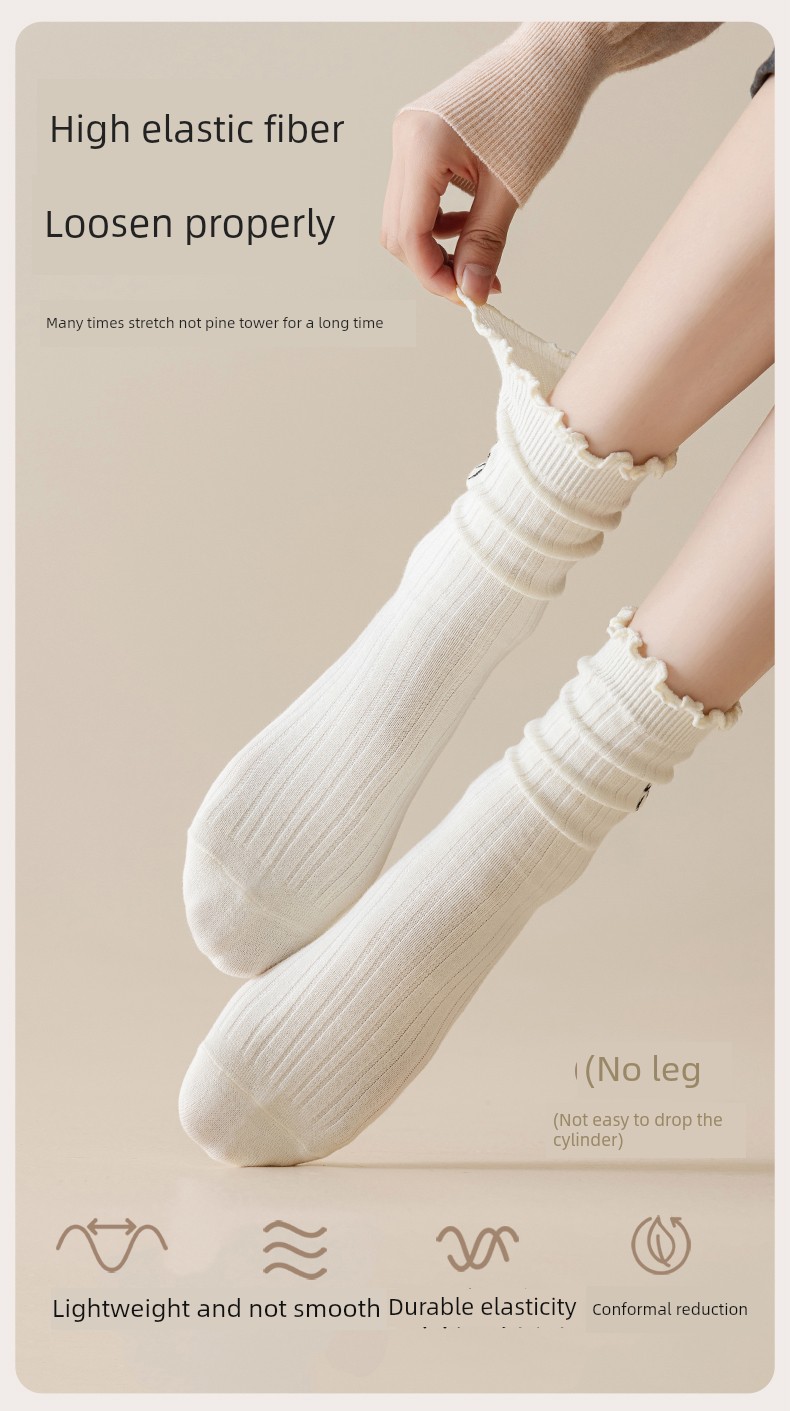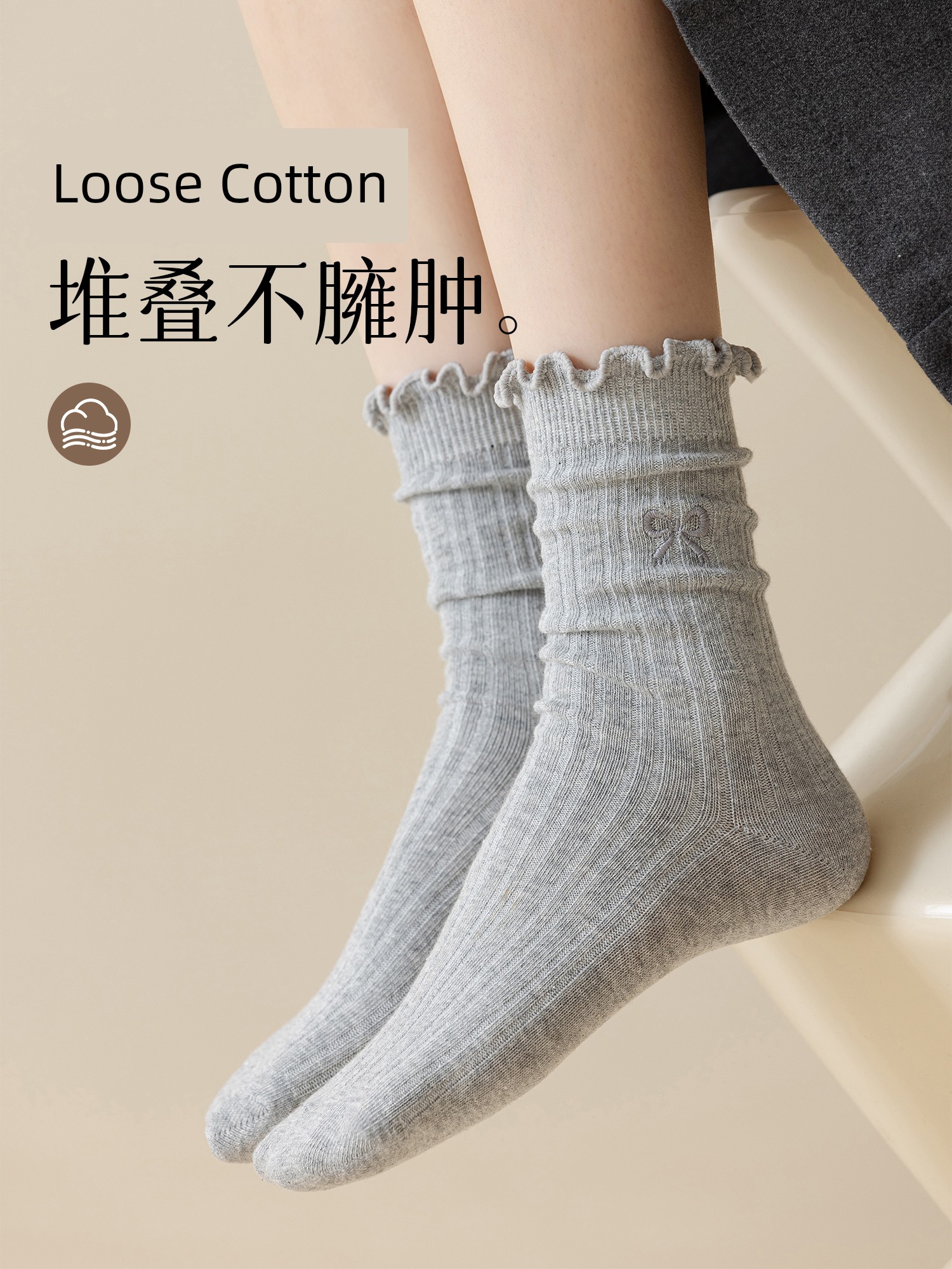 热卖灰色蝴蝶结袜子女秋季薄款中筒袜纯棉袜2025新款miu系花边堆堆袜