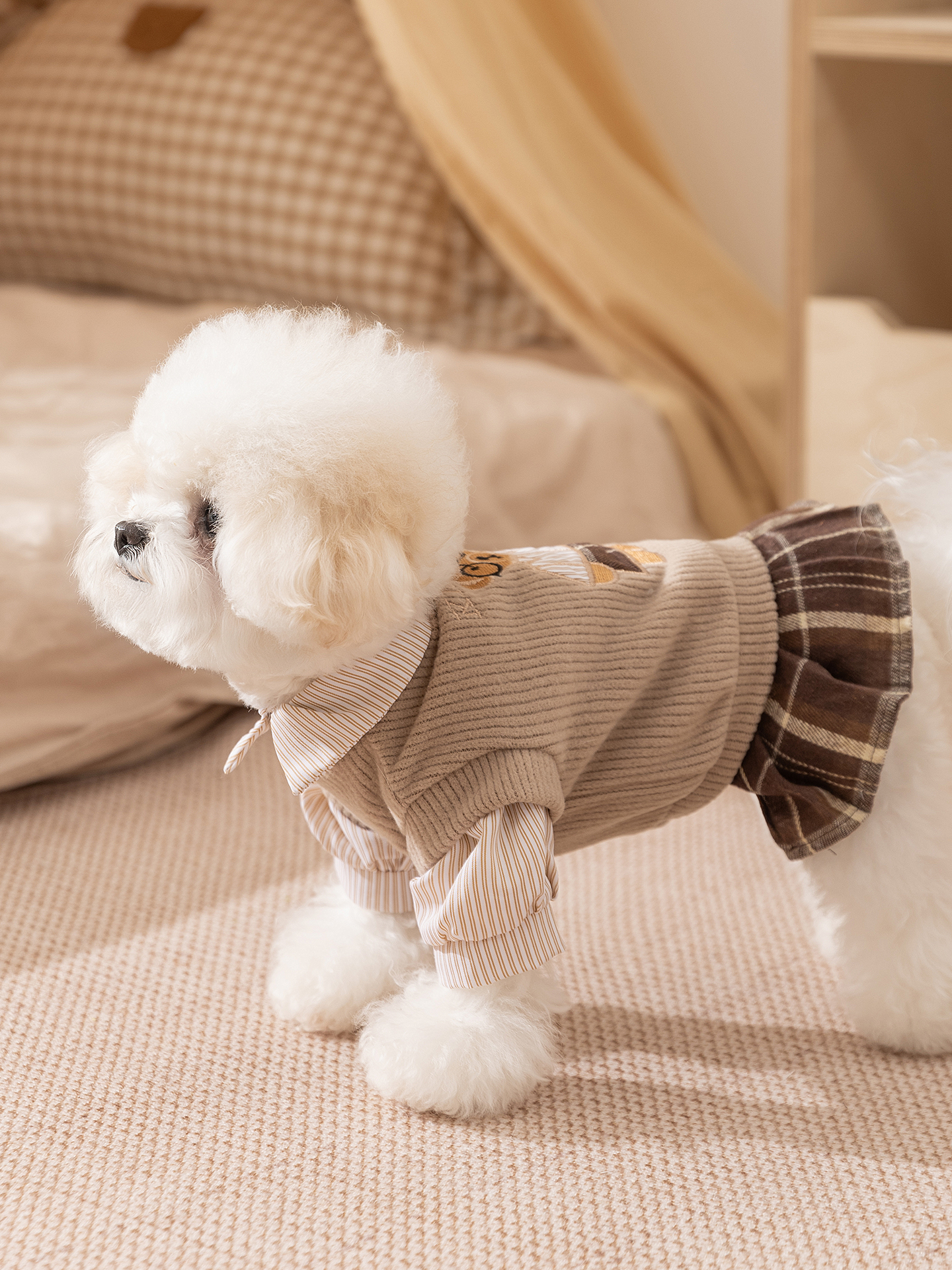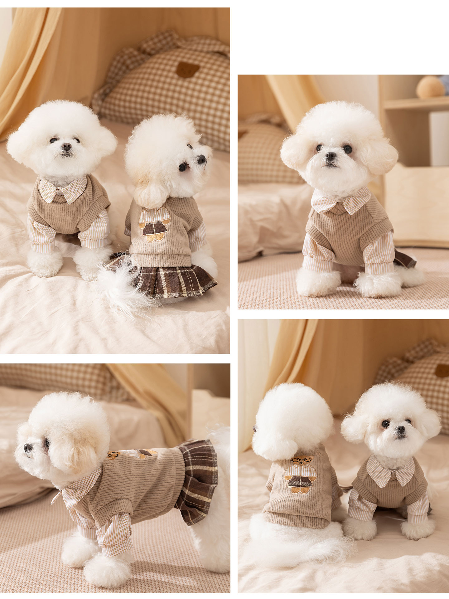 热卖宠物小狗狗衣服秋季情侣装学院风衬衫裙子泰迪比熊猫咪小型犬冬天