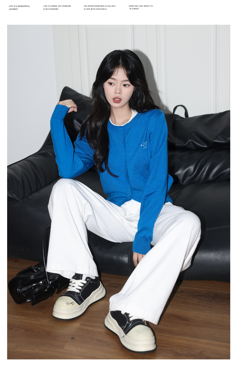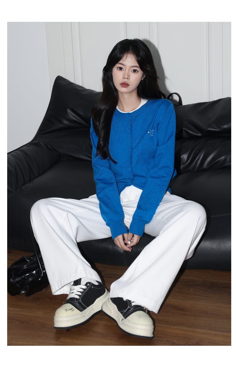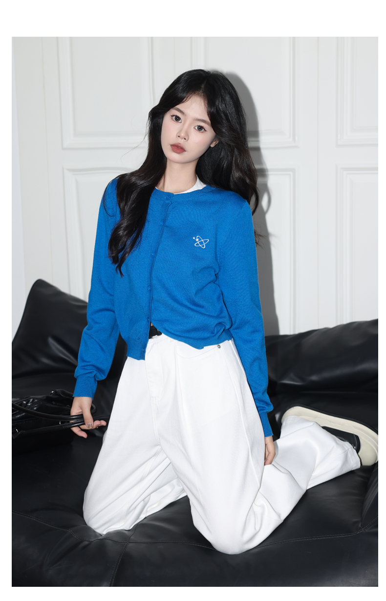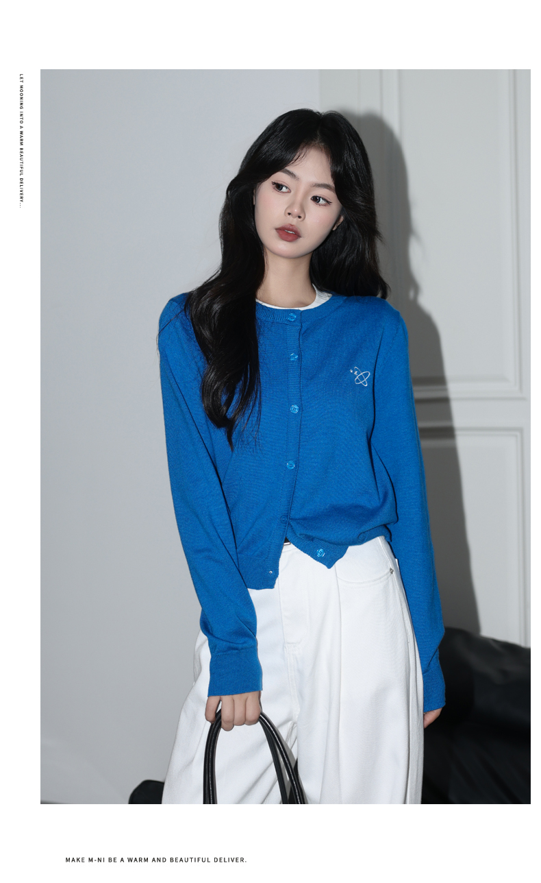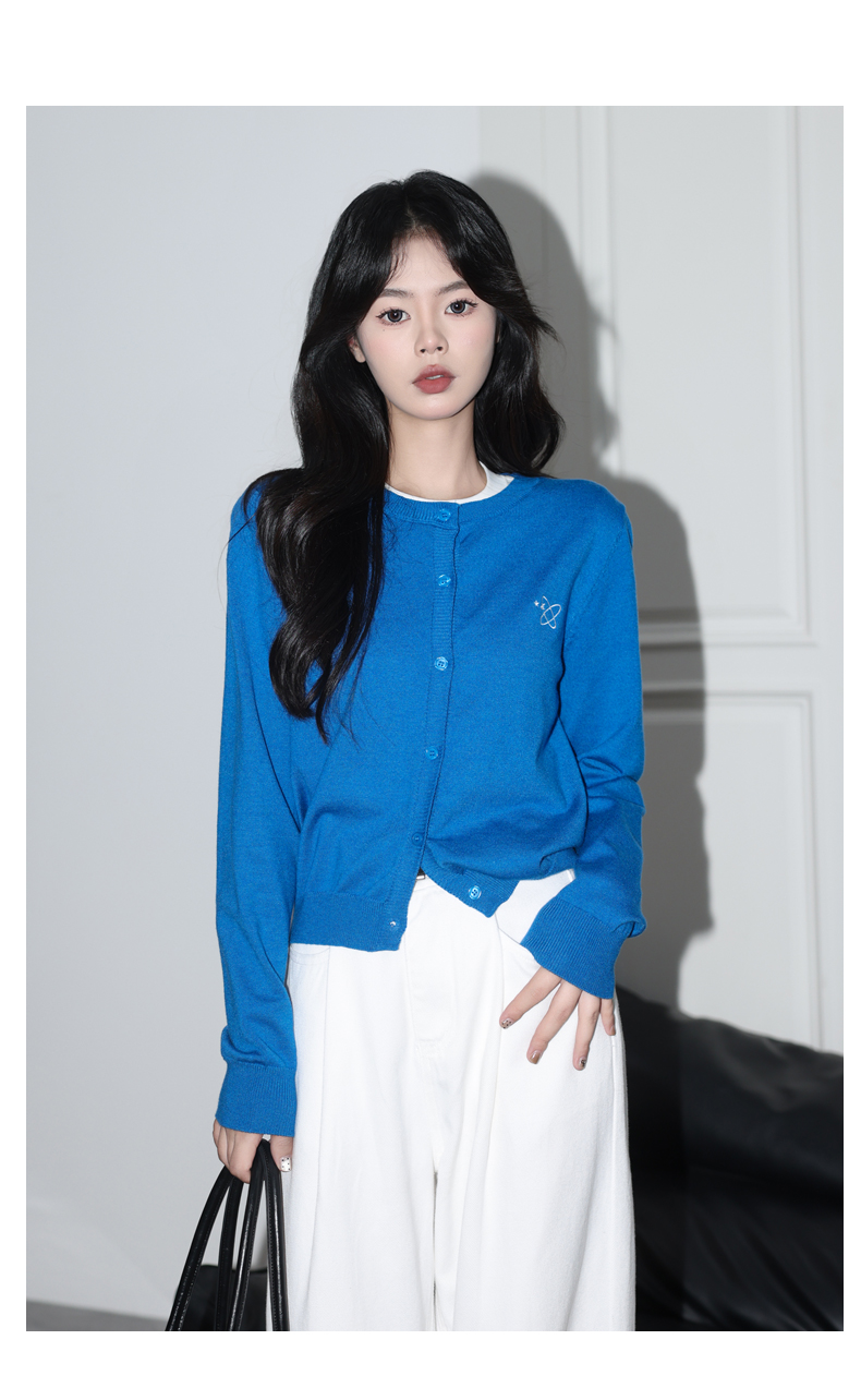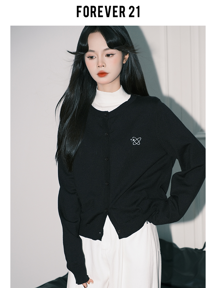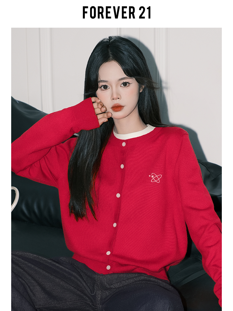 热卖Forever21克莱因蓝别致刺绣针织开衫女ins宽松上衣慵懒松弛感毛衣