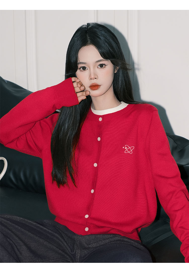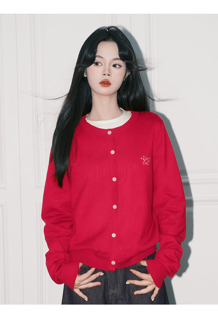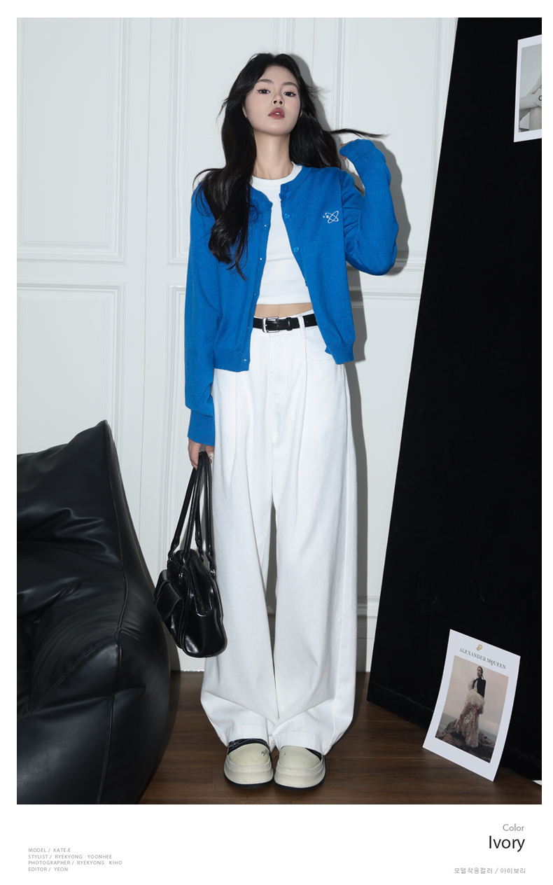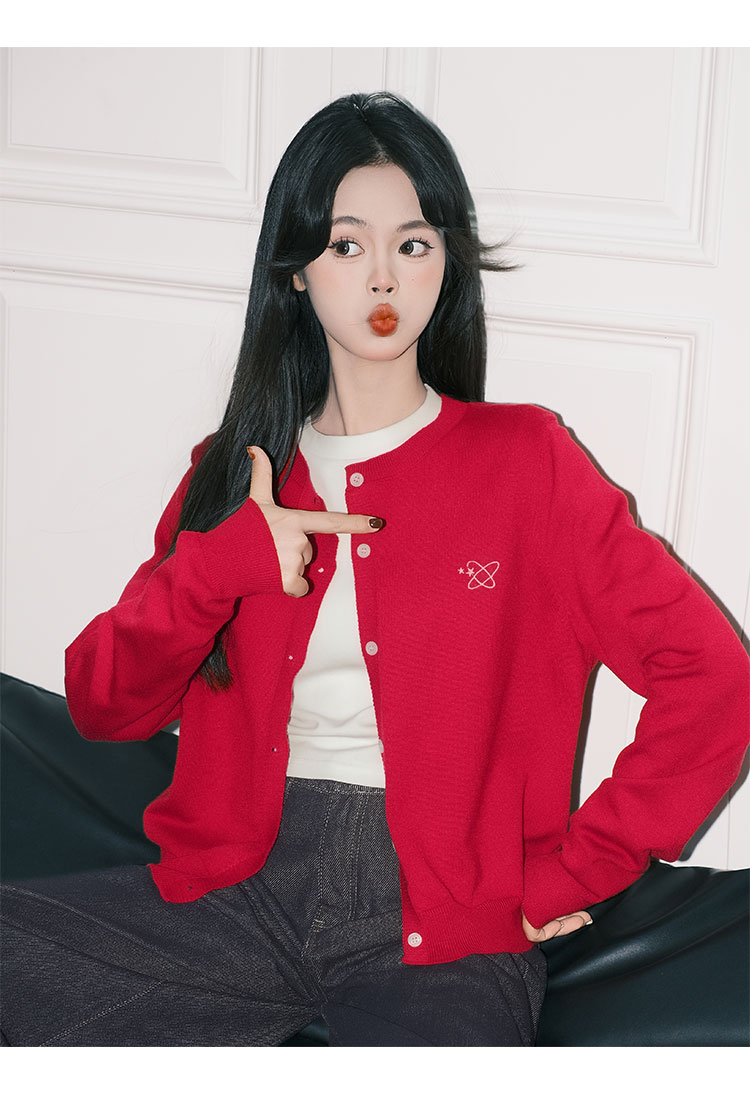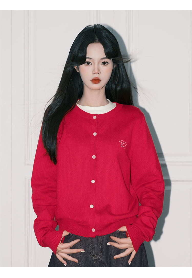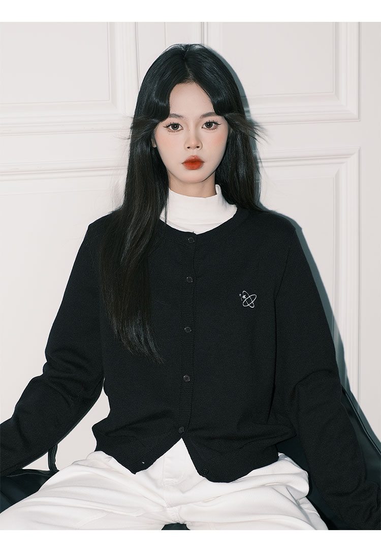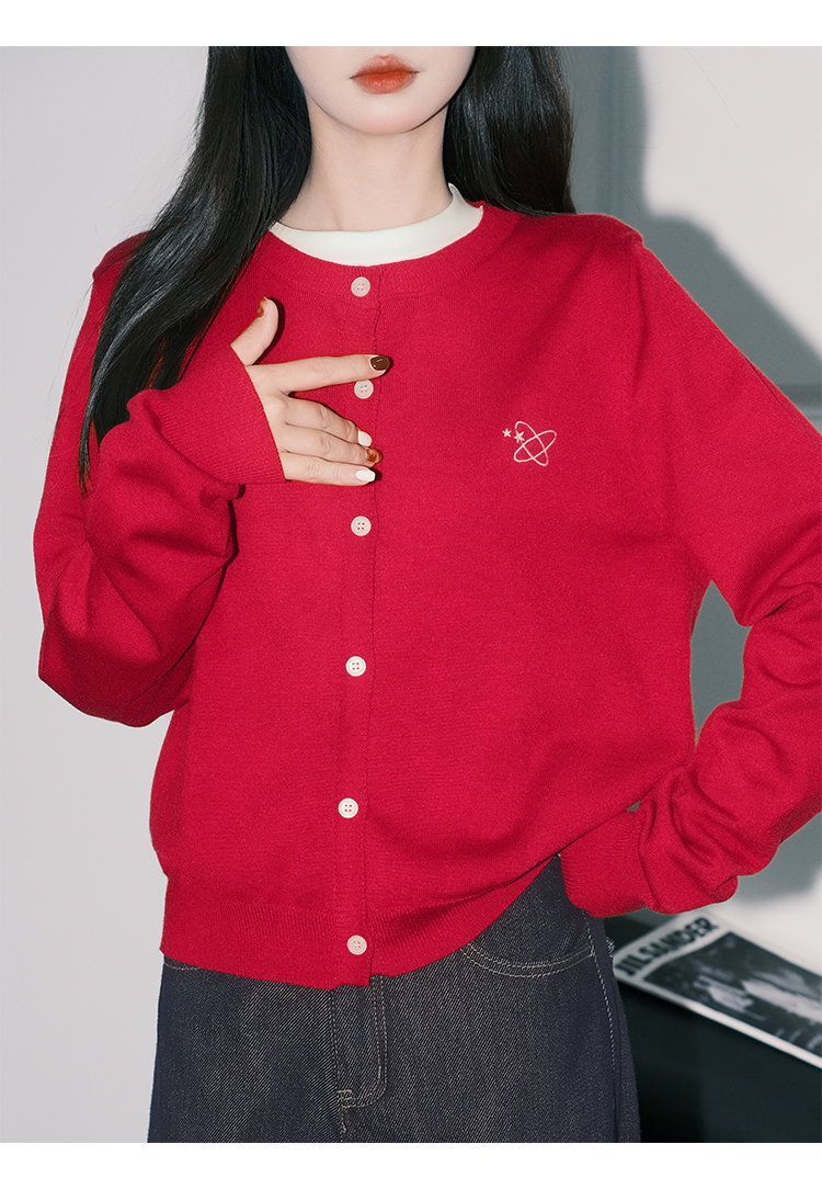 热卖Forever21克莱因蓝别致刺绣针织开衫女ins宽松上衣慵懒松弛感毛衣