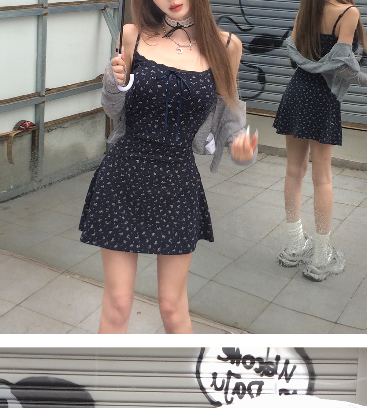 热卖吊带开衫甜辣妹复古碎花连衣裙