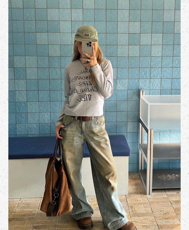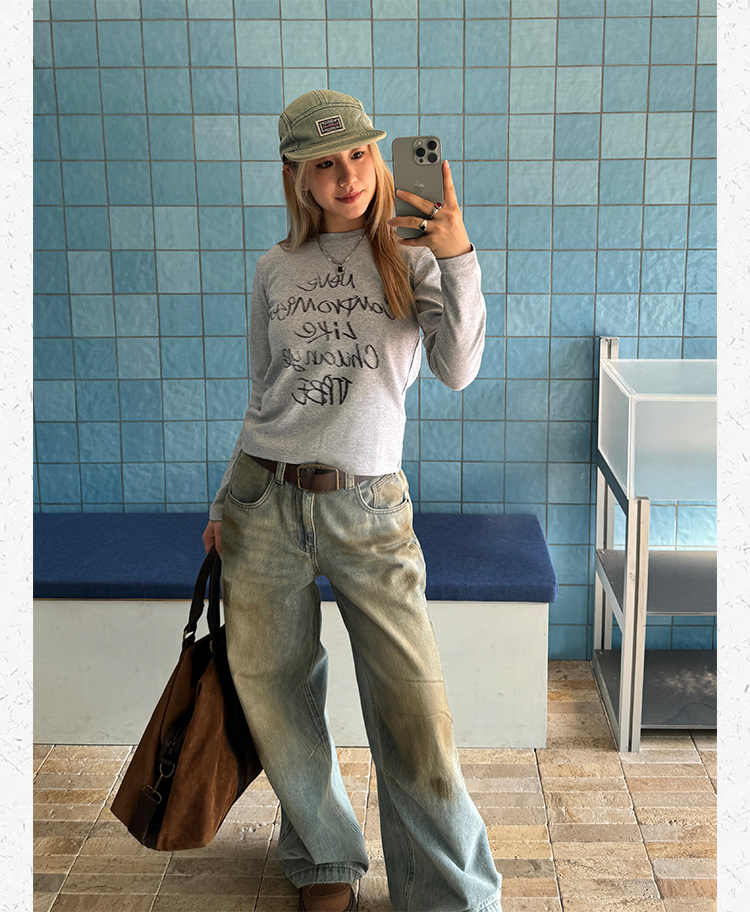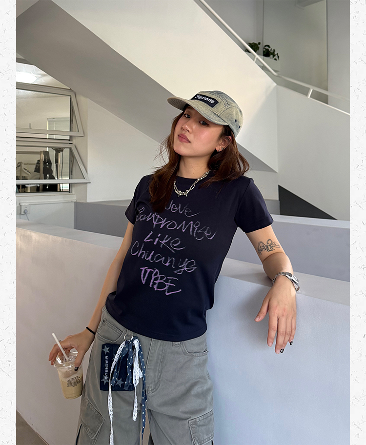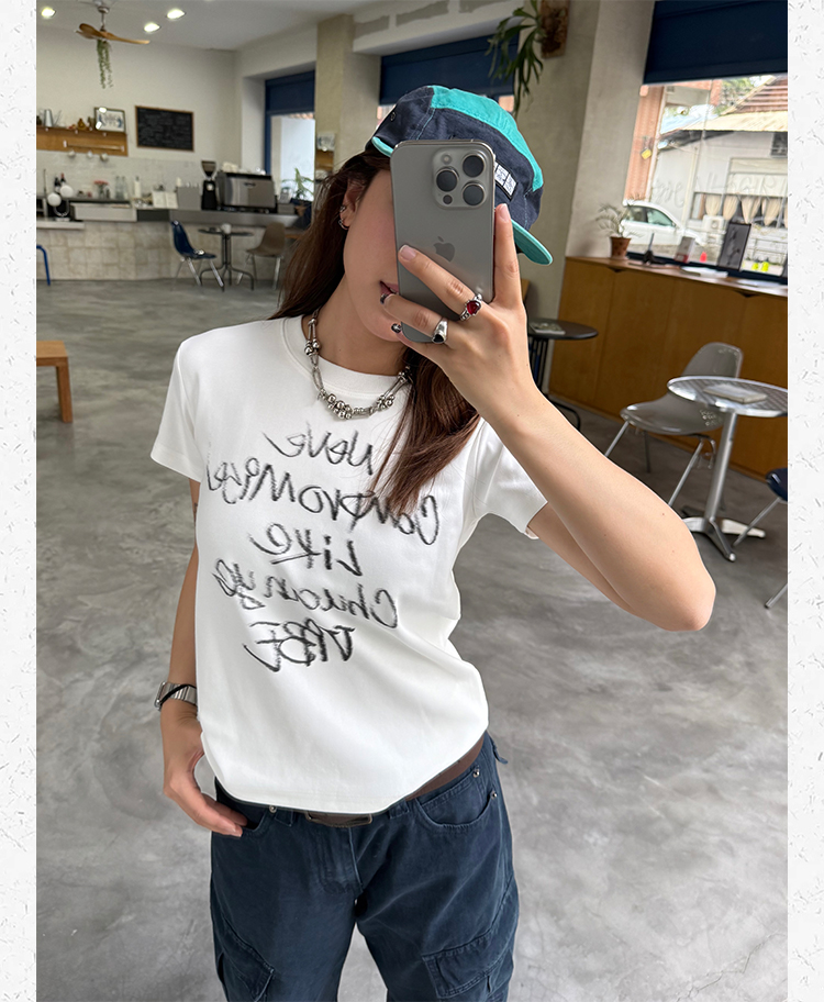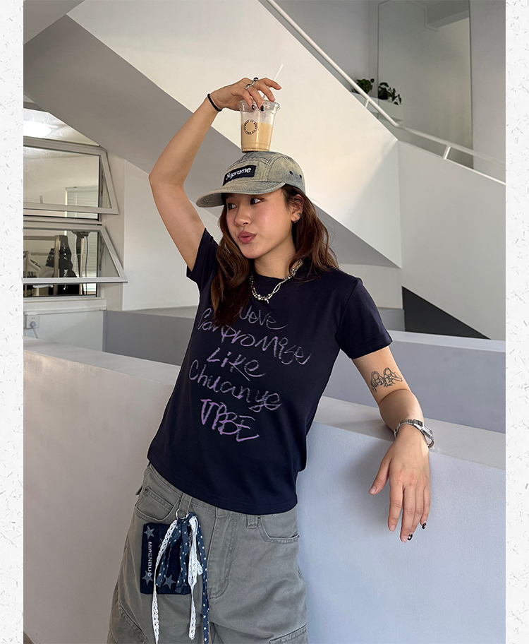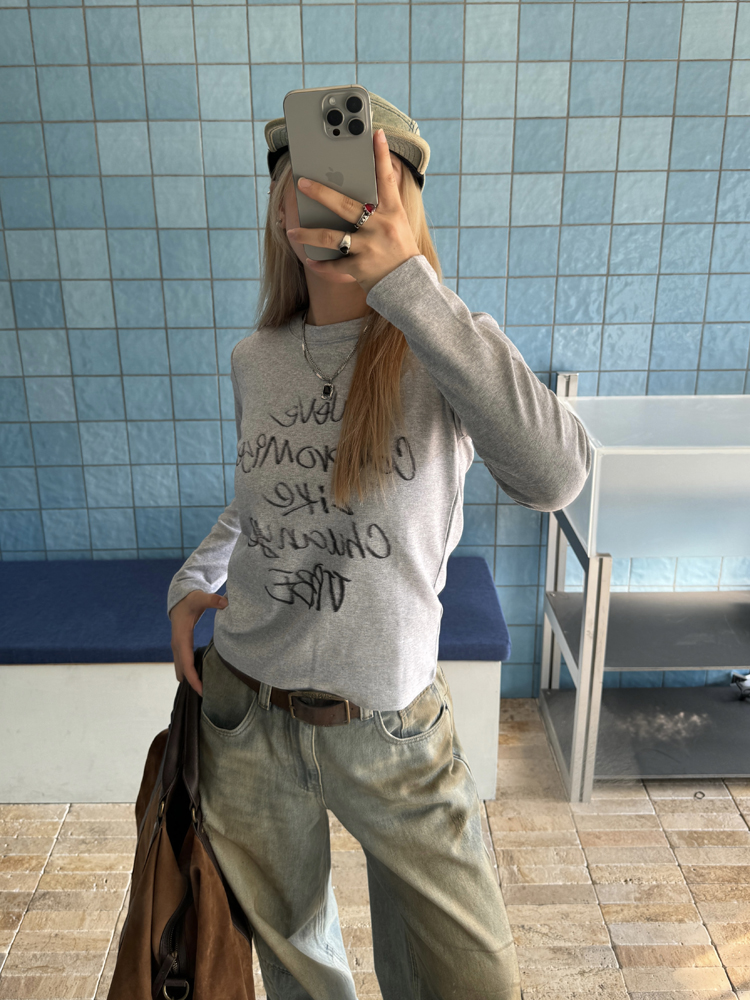 热卖正肩修身辣妹印花显瘦长袖T恤