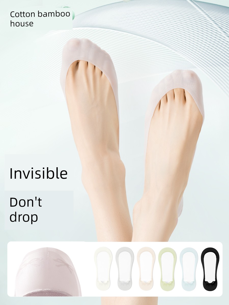 热卖棉竹屋冰丝船袜子女超浅口隐形夏季薄款防滑不掉跟纯棉底配高跟鞋
