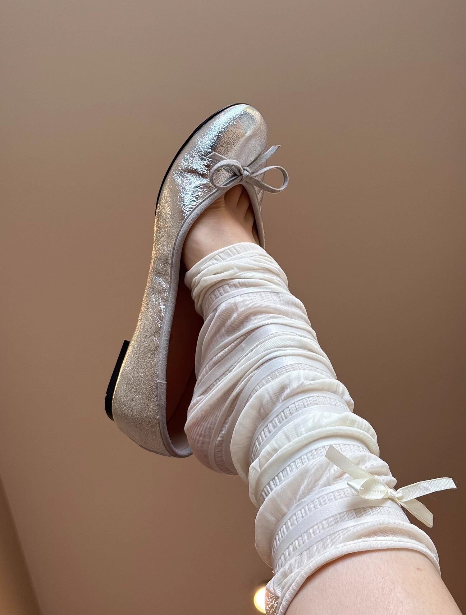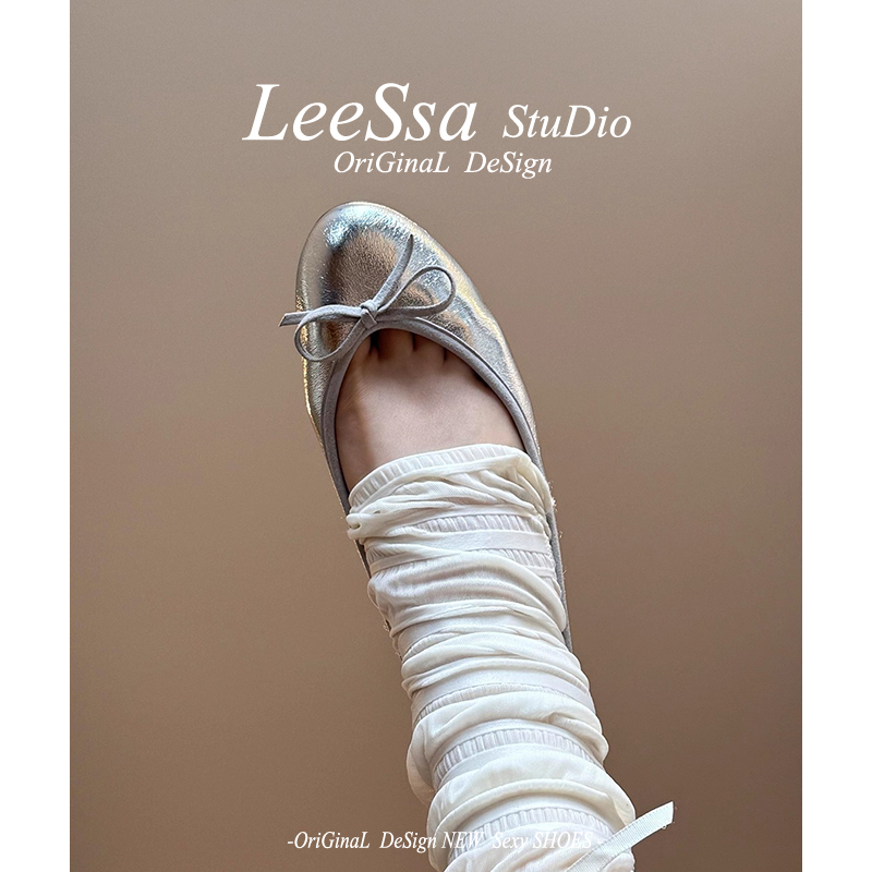 热卖羊皮版~甜美温柔蝴蝶结一脚蹬浅口单鞋仙女风圆头软底平底芭蕾鞋