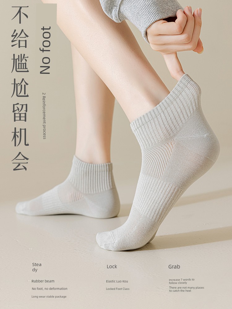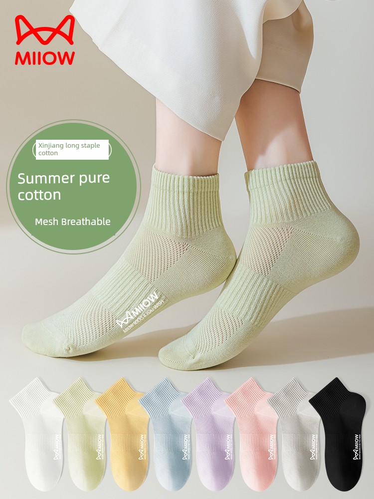 热卖猫人袜子女纯棉短袜夏季薄款吸汗透气2025新款网眼无骨女生短筒袜