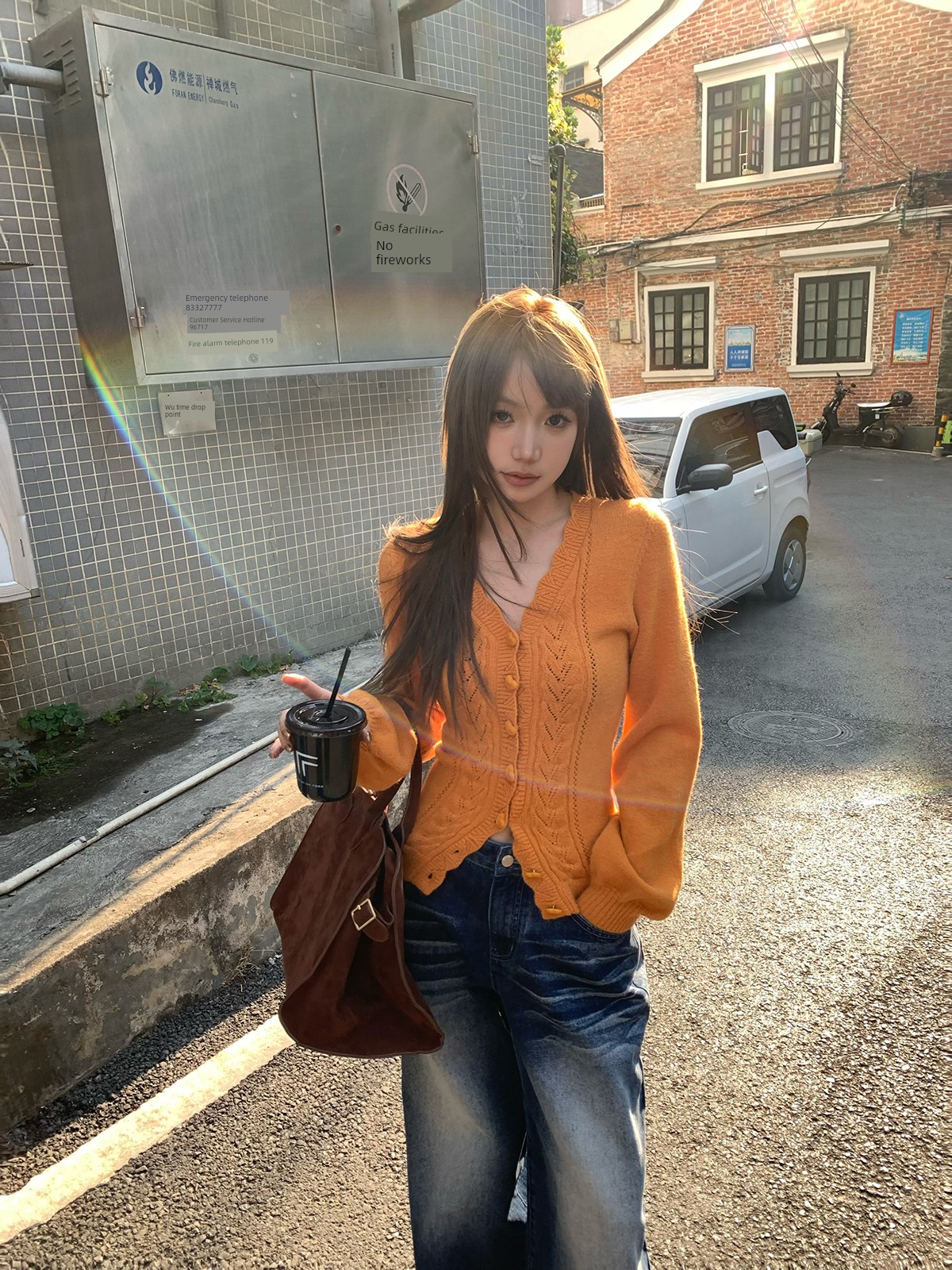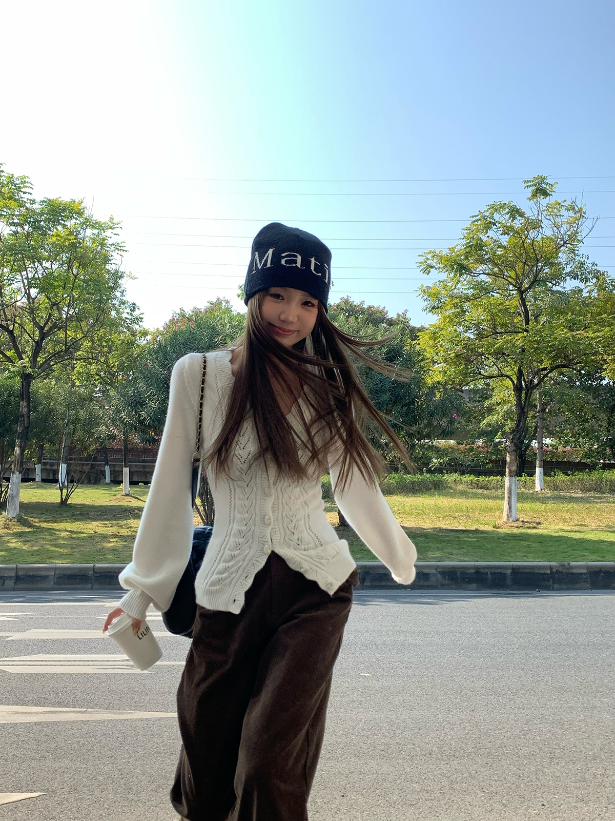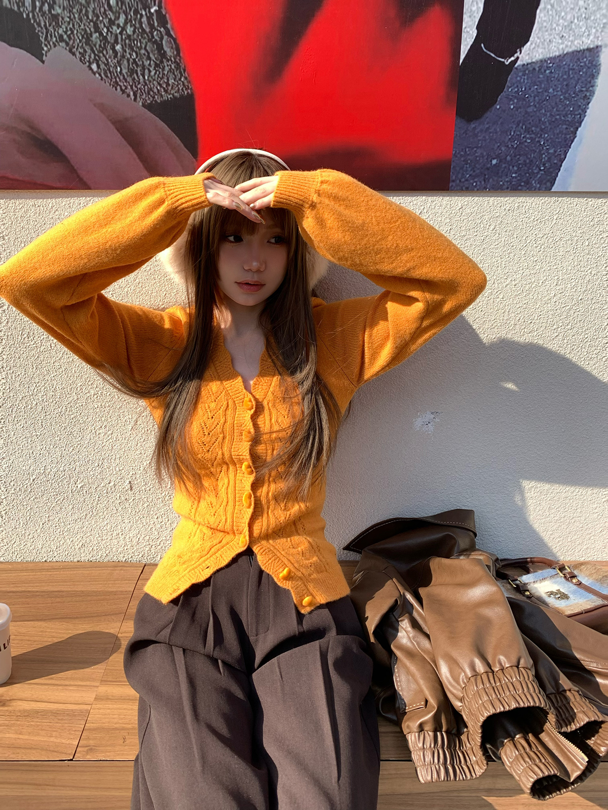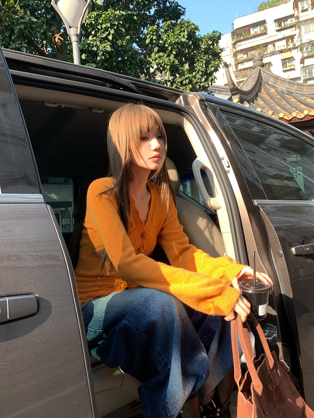 热卖ffcheer 初雪夕暮/织风私语 V领毛针织开衫女修身显瘦外搭上衣秋
