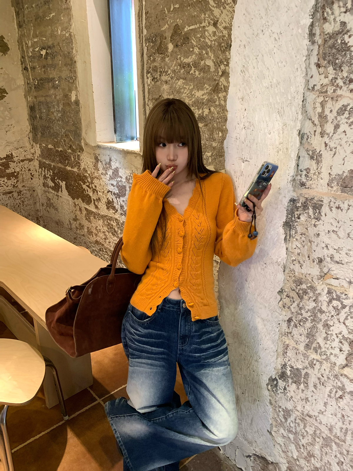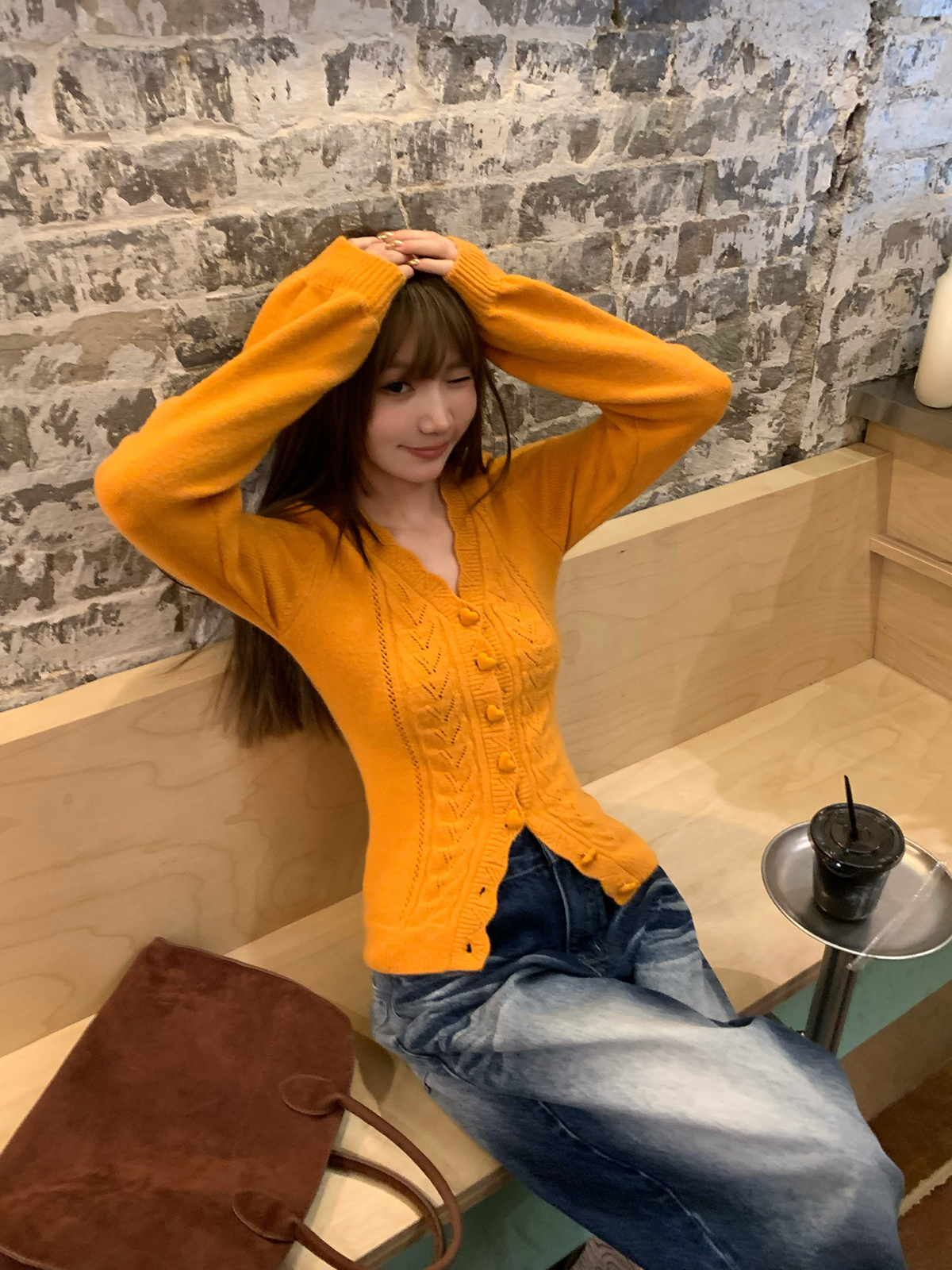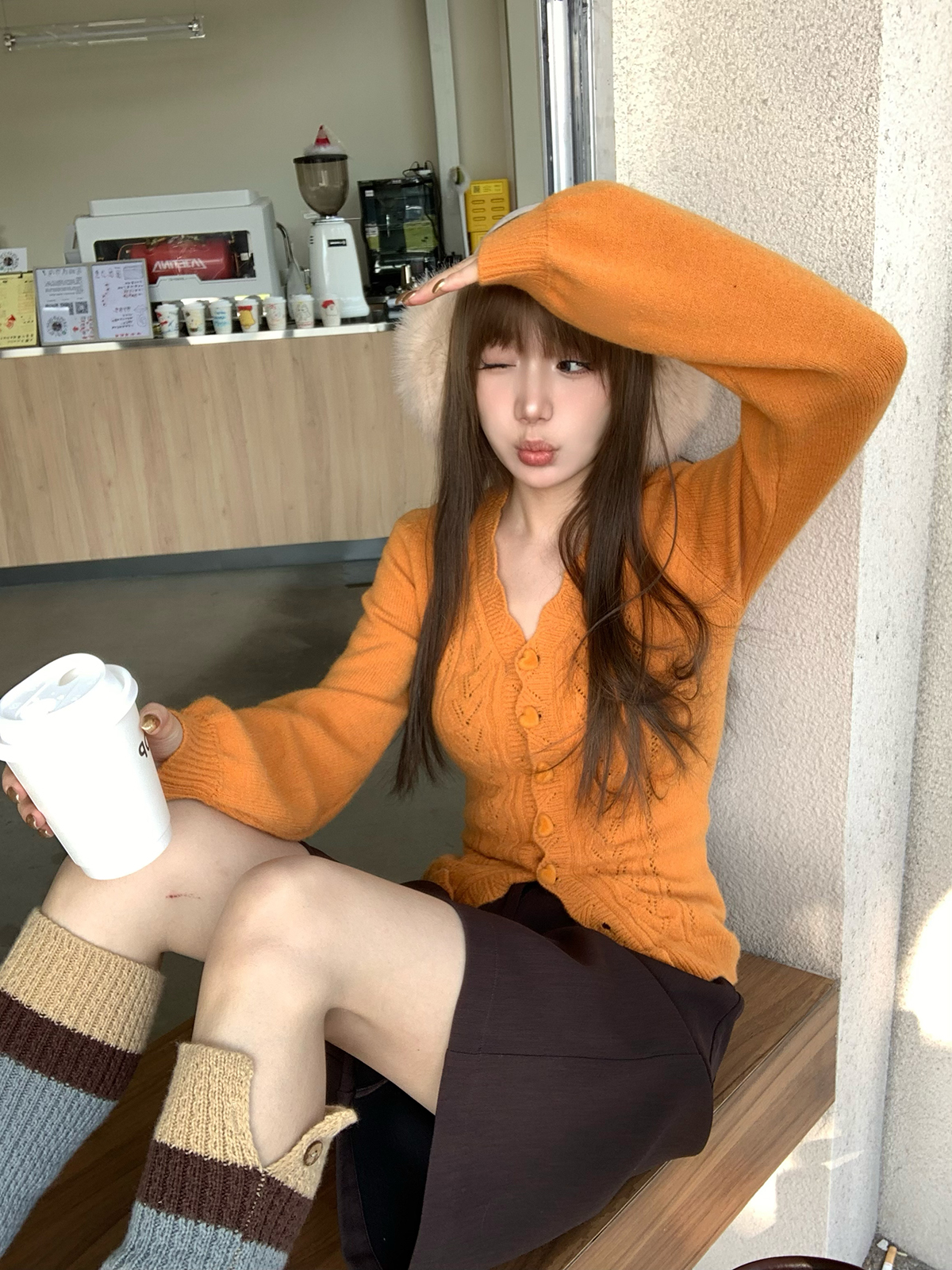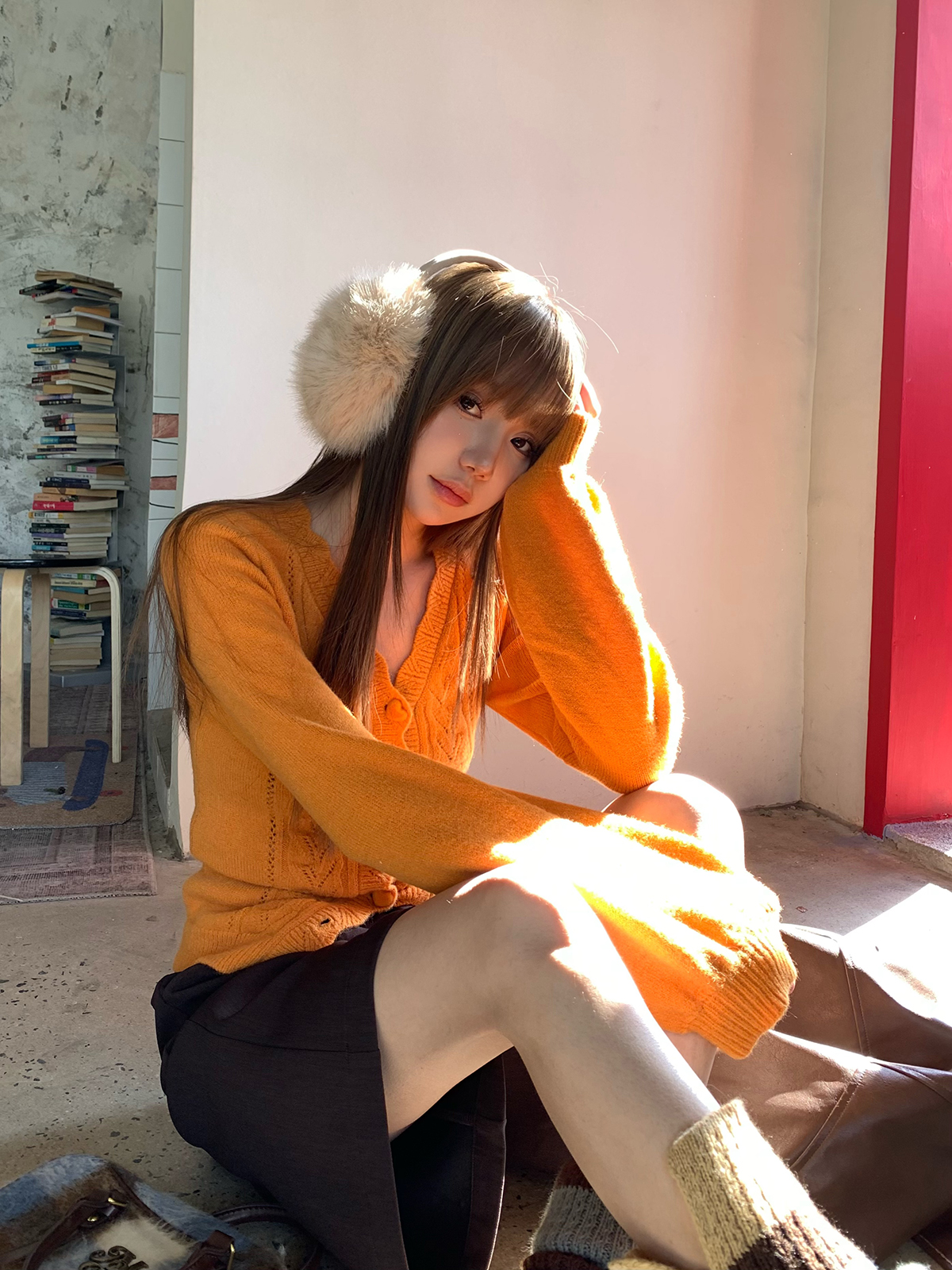 热卖ffcheer 初雪夕暮/织风私语 V领毛针织开衫女修身显瘦外搭上衣秋