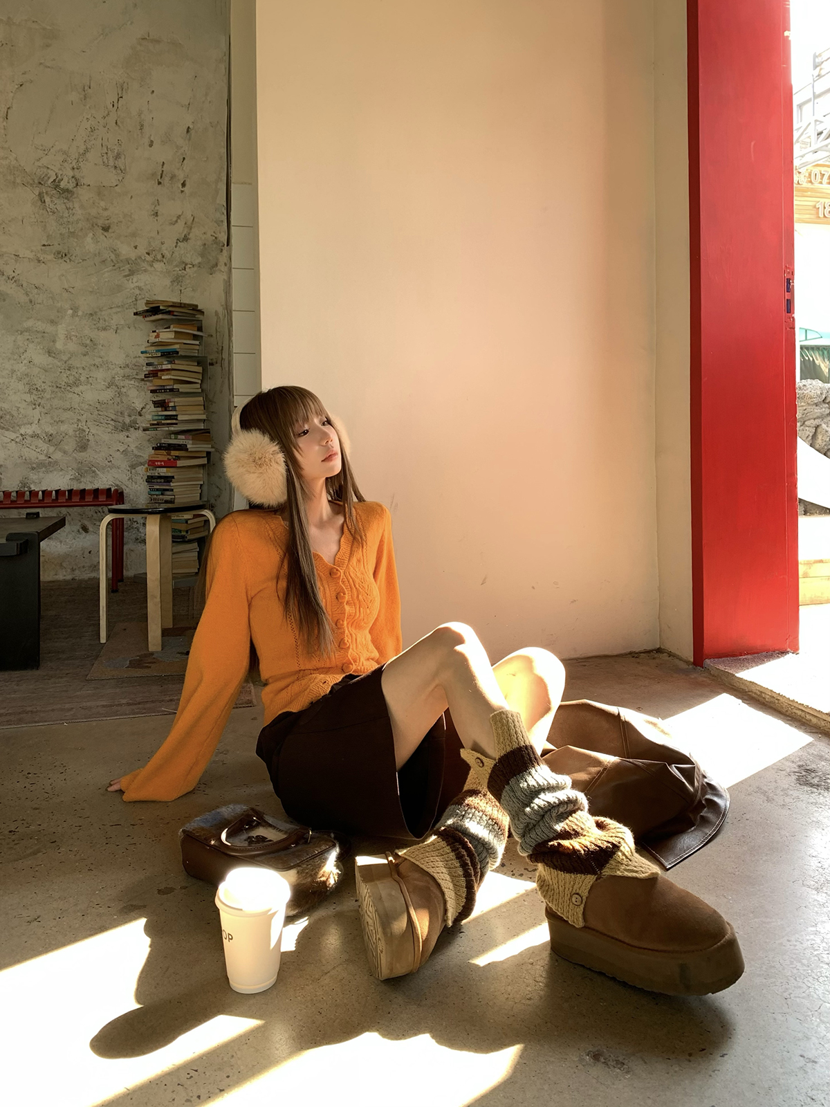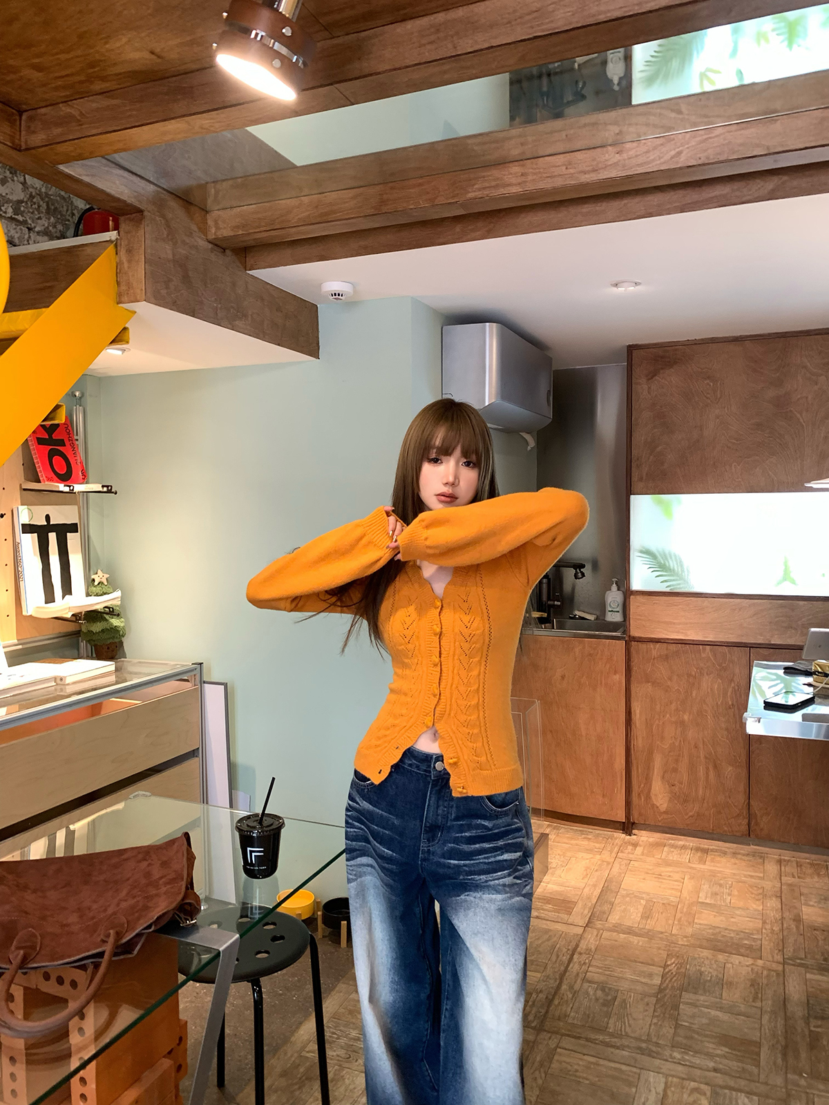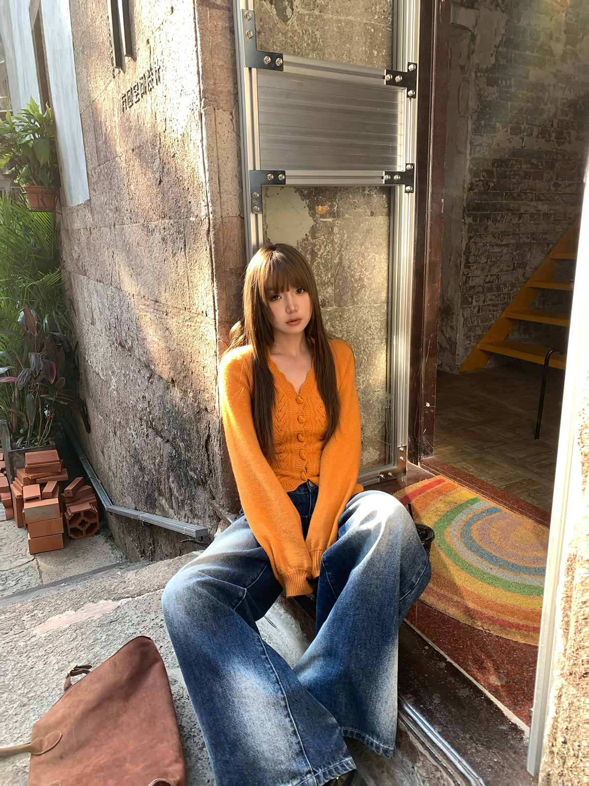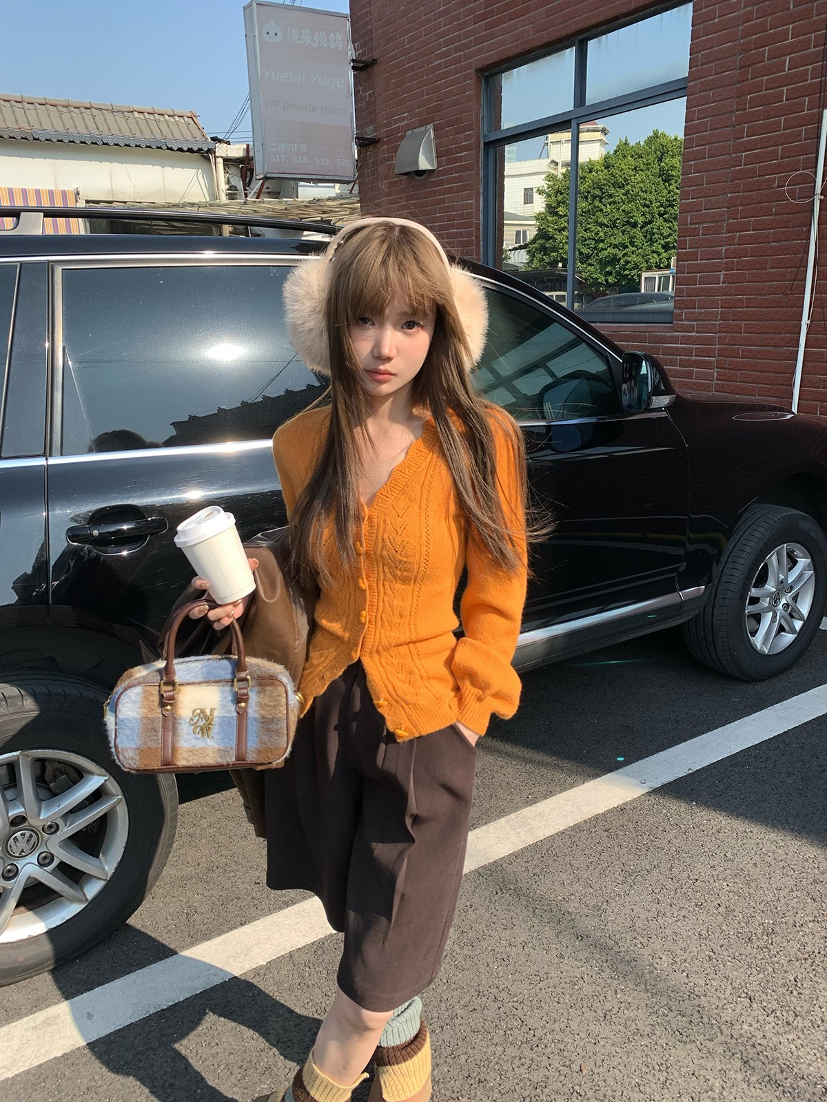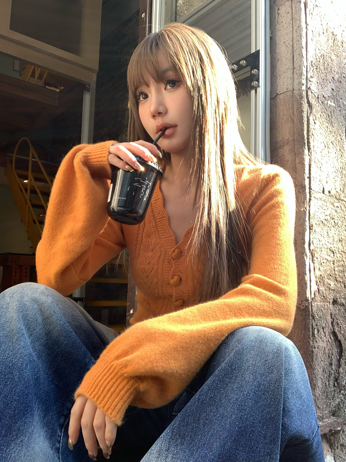 热卖ffcheer 初雪夕暮/织风私语 V领毛针织开衫女修身显瘦外搭上衣秋