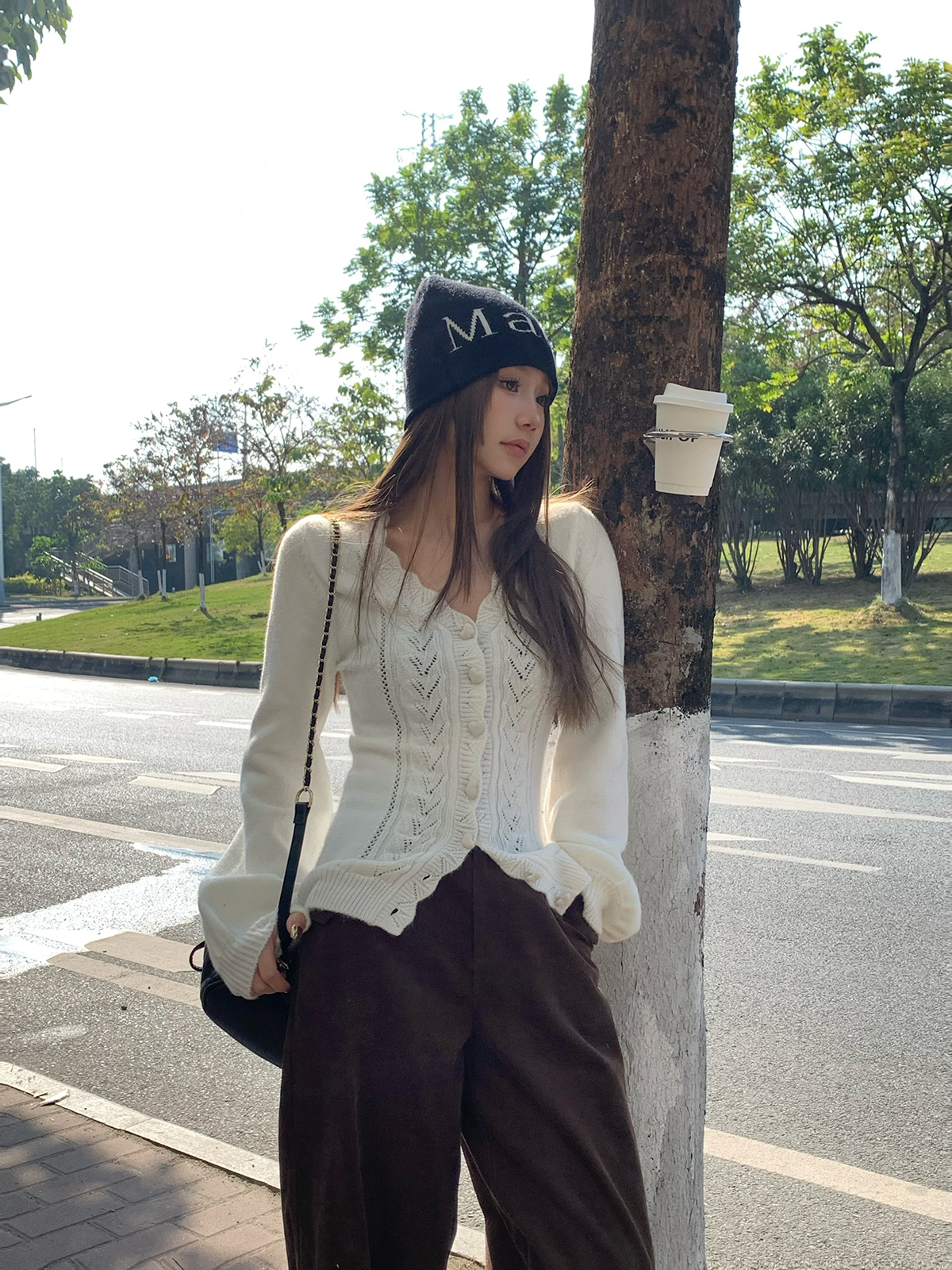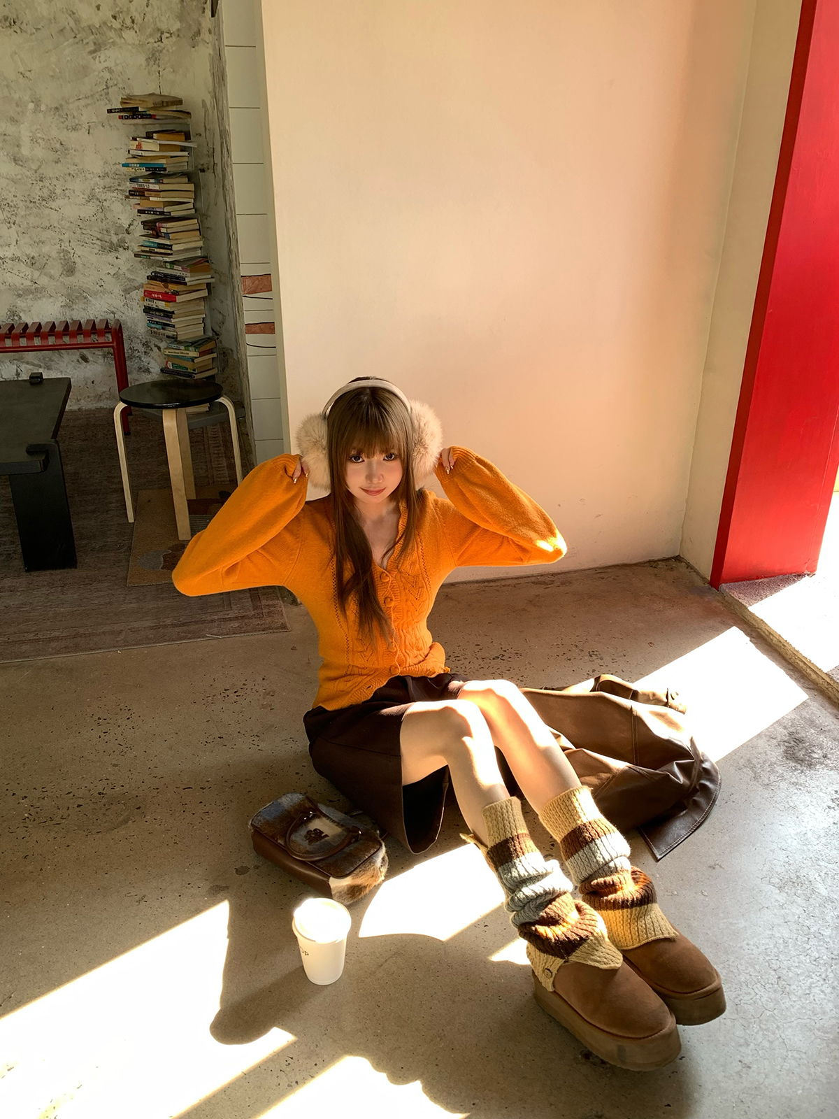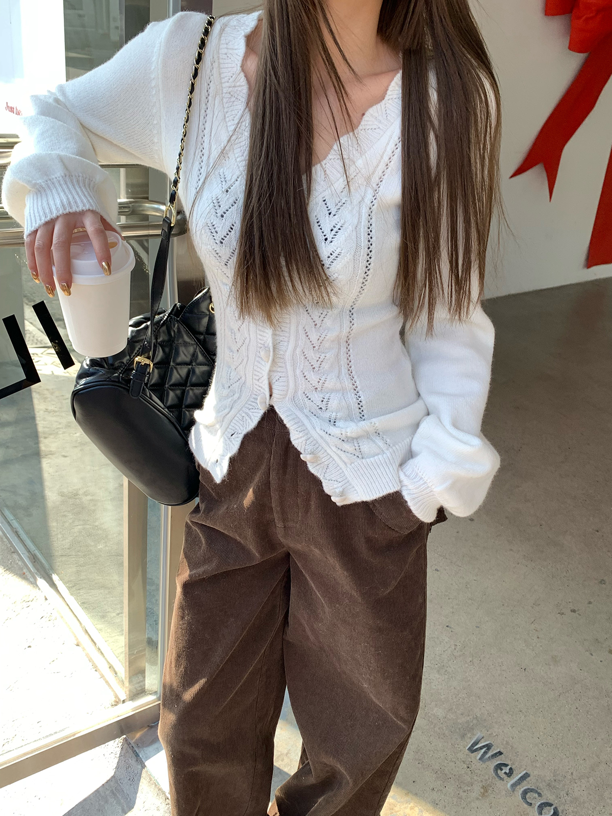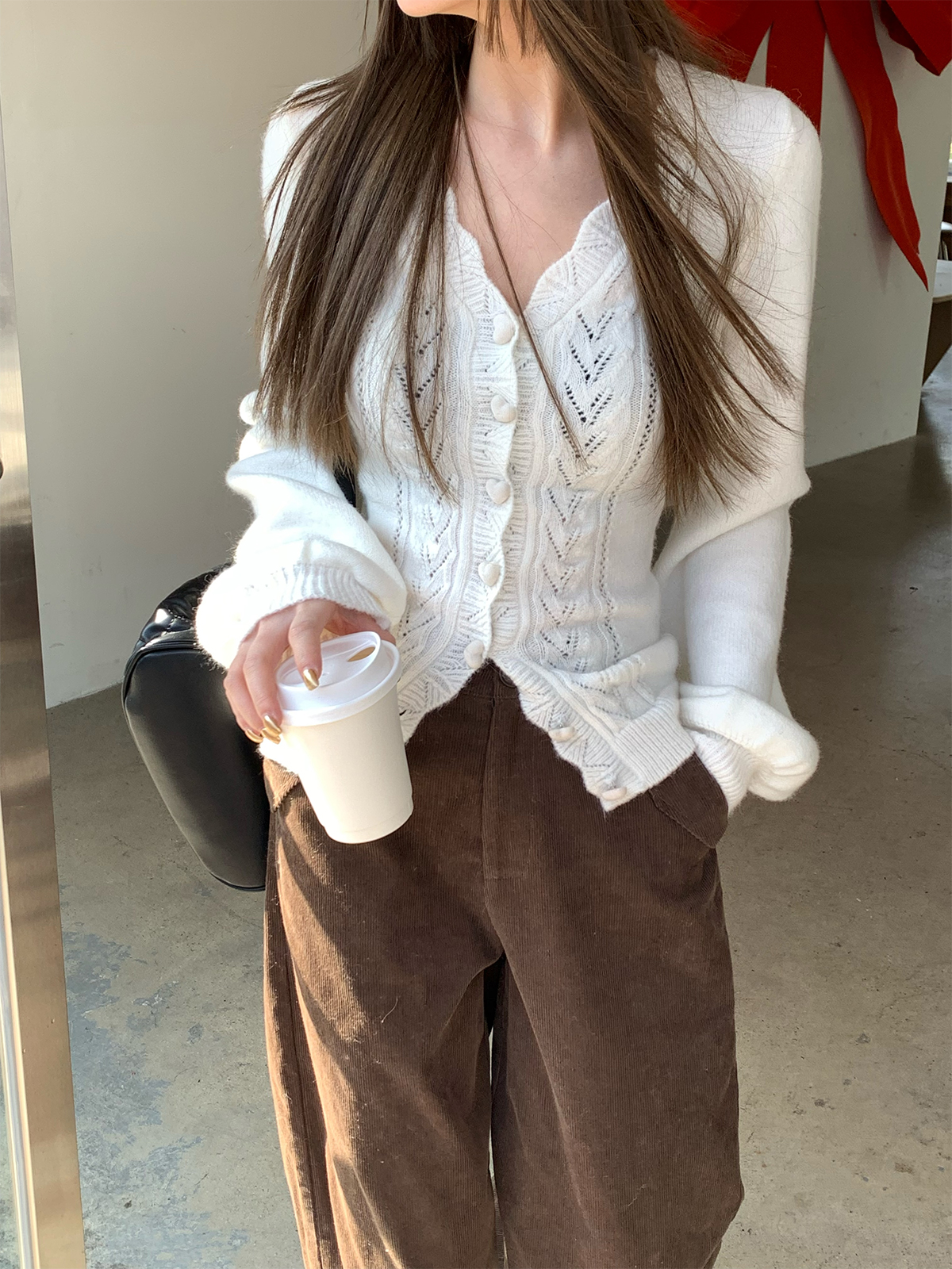热卖ffcheer 初雪夕暮/织风私语 V领毛针织开衫女修身显瘦外搭上衣秋