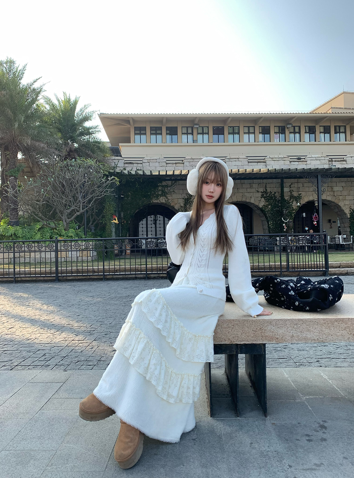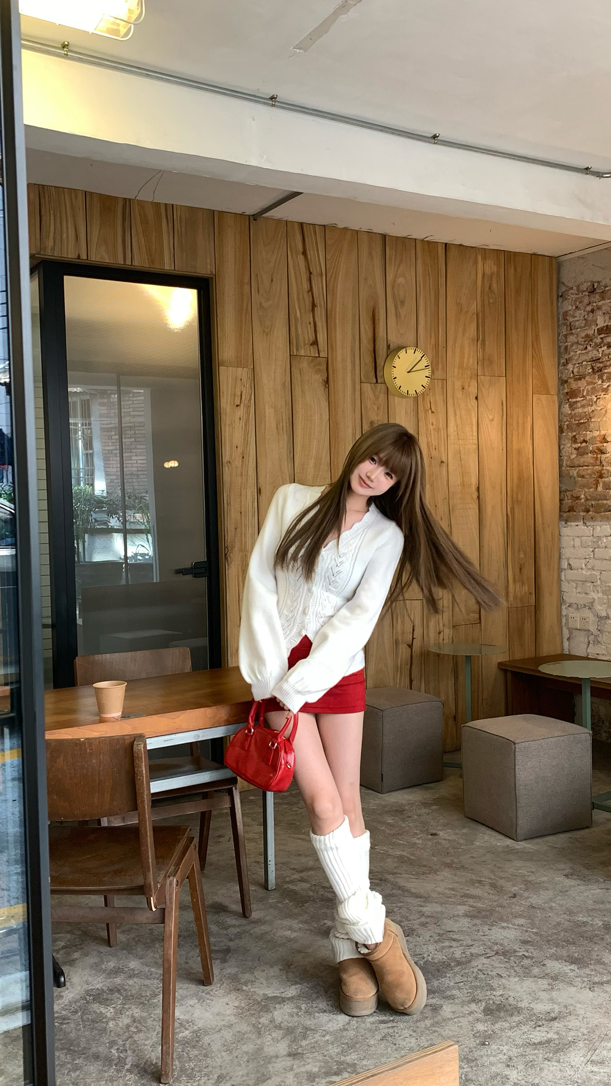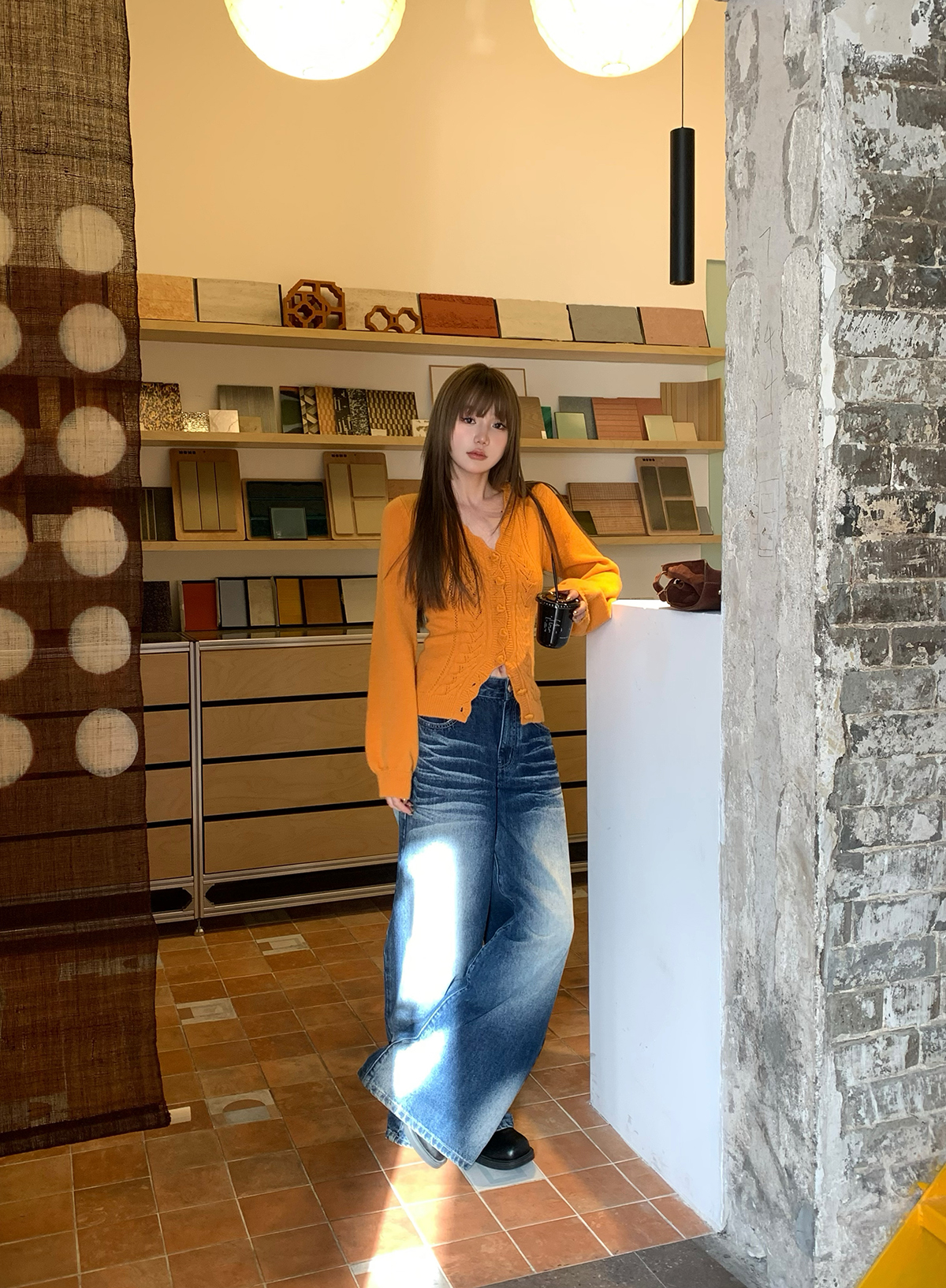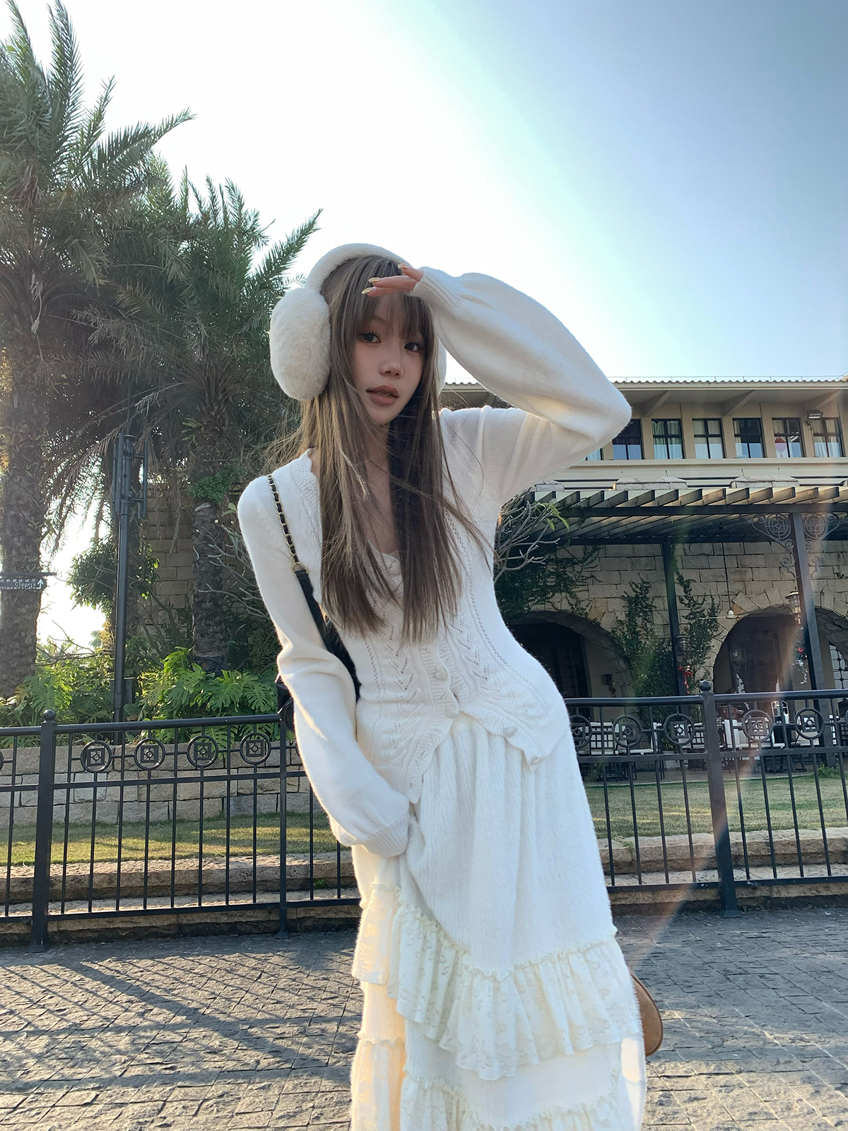热卖ffcheer 初雪夕暮/织风私语 V领毛针织开衫女修身显瘦外搭上衣秋