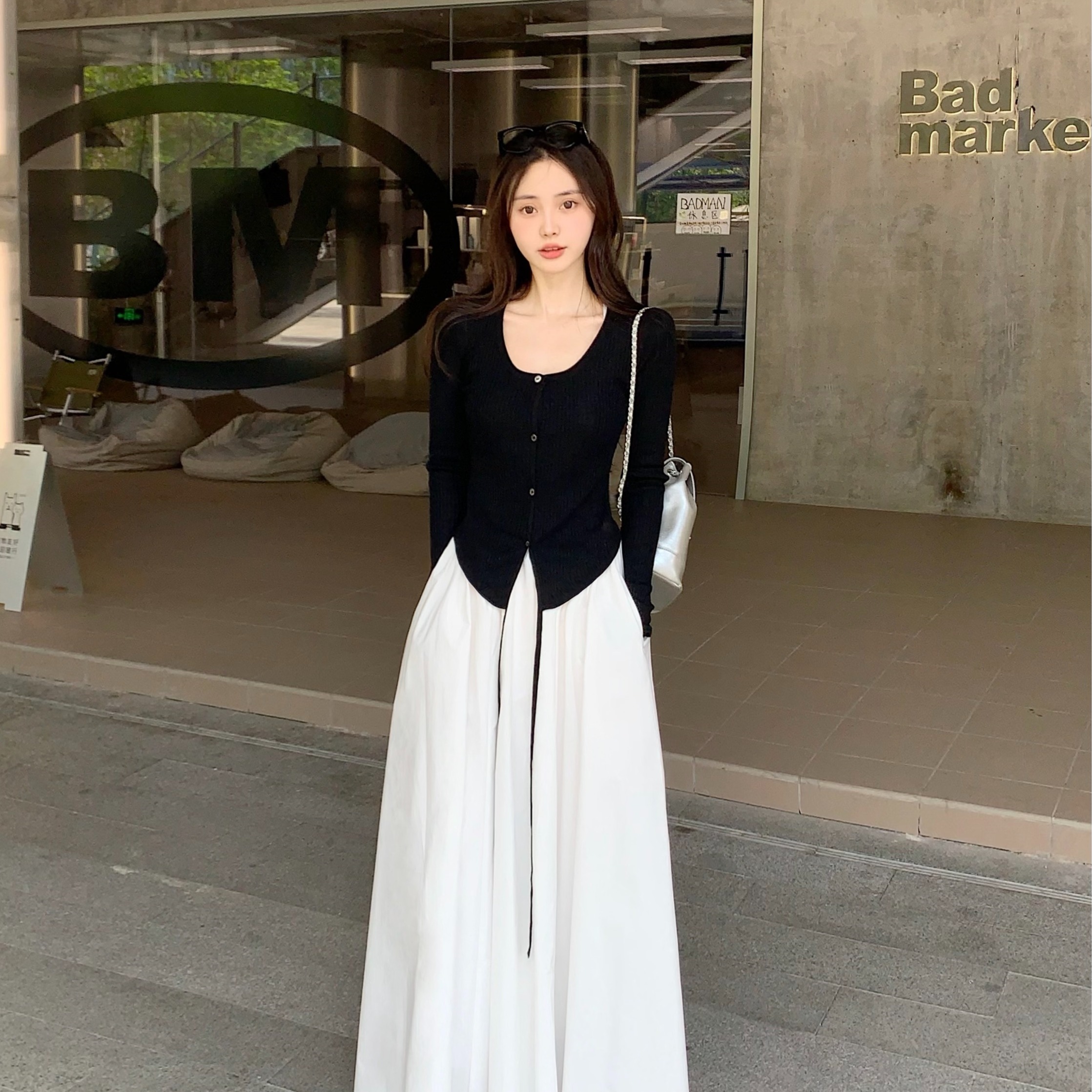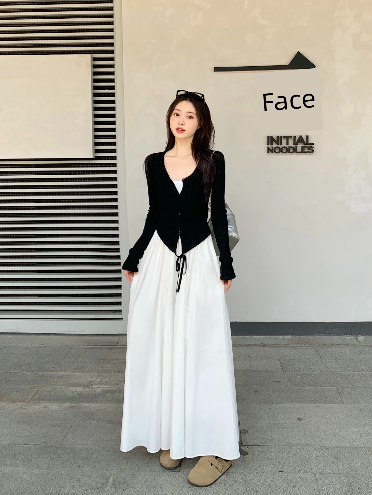 热卖早川少女~针织开衫长袖慵懒外搭上衣气质中长款连衣裙套装