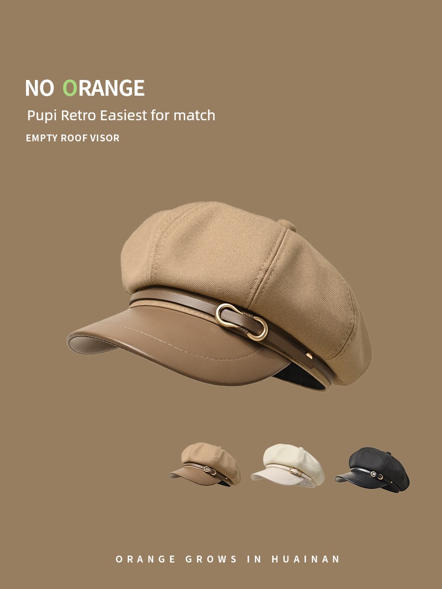 热卖女英伦风春秋冬方圆脸八角贝雷帽