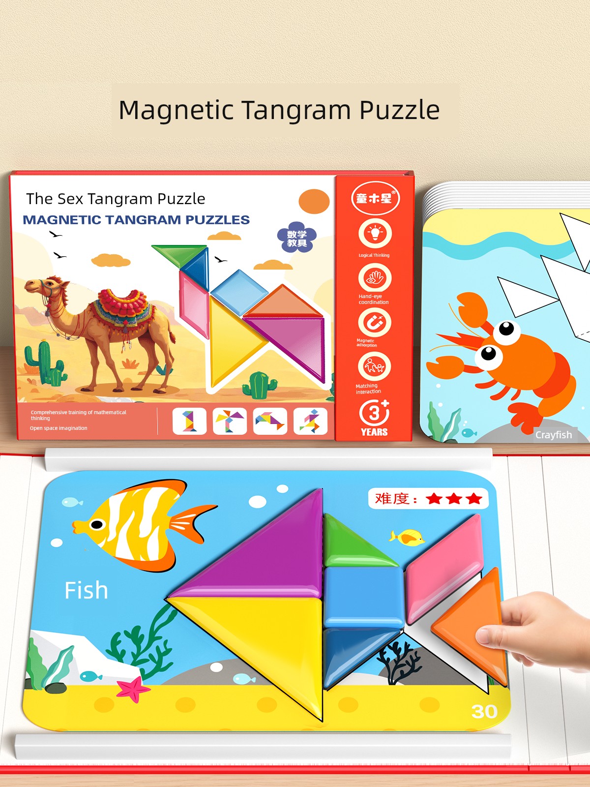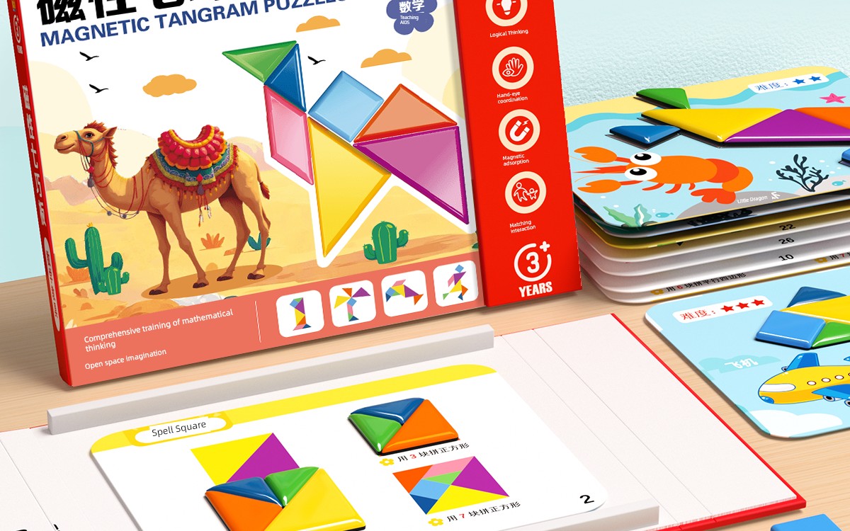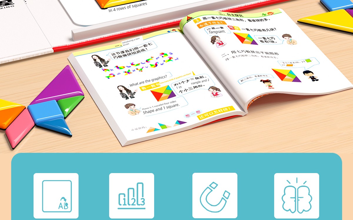 热卖儿童磁性七巧板小学生一年级教具益智玩具幼儿园专用智力磁力拼图