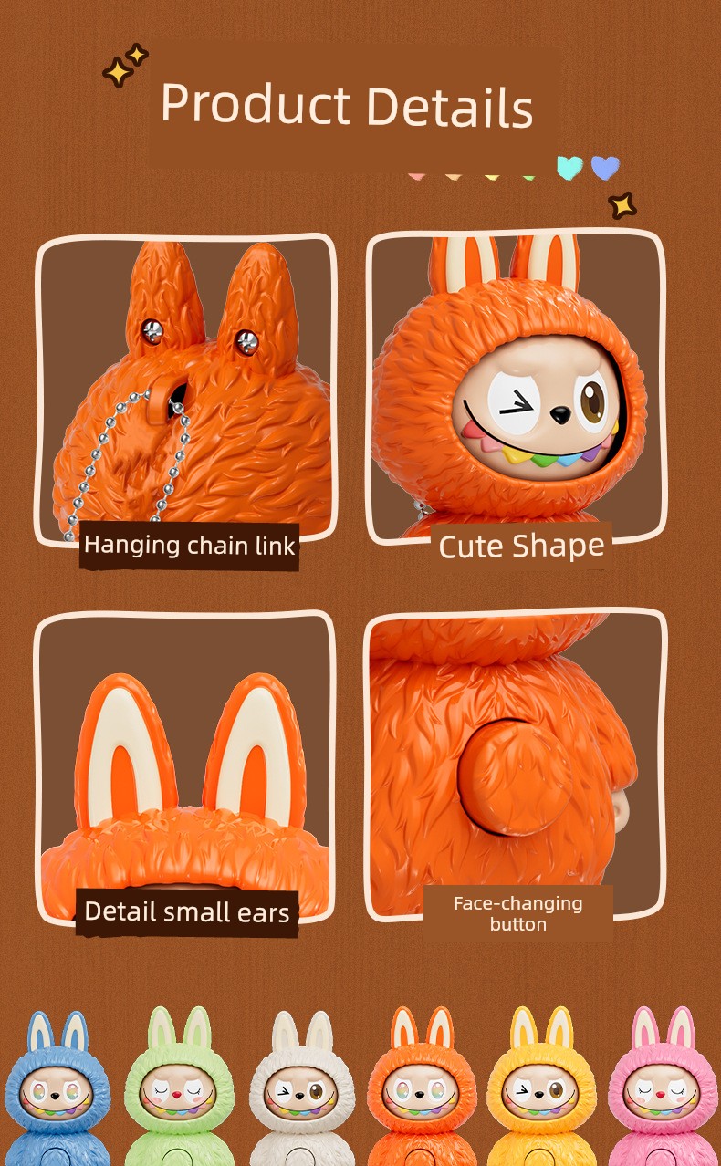 热卖拉布卟变脸公仔可爱解压玩具按压旋转正品玩偶钥匙扣小挂件送学生