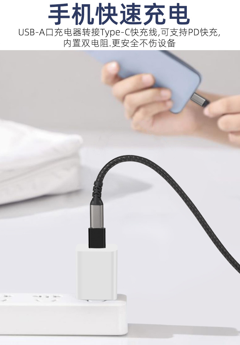 热卖USB转Type-C转接头3.2A公转C母转换器适用安卓华为苹果充电转接头