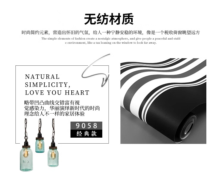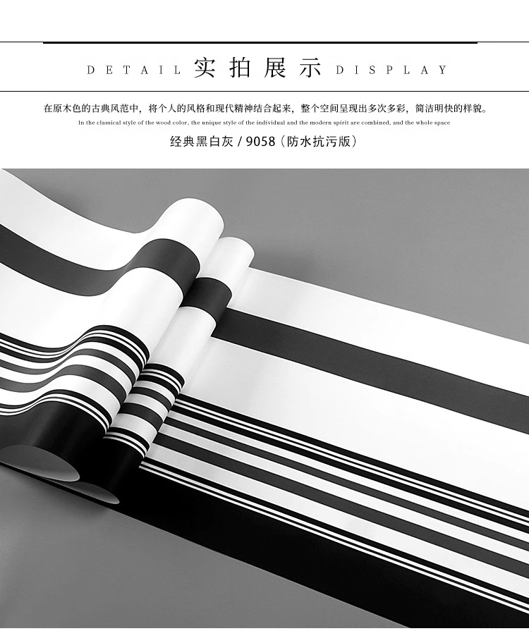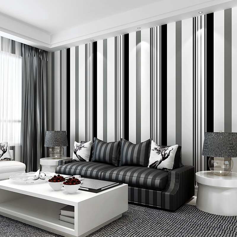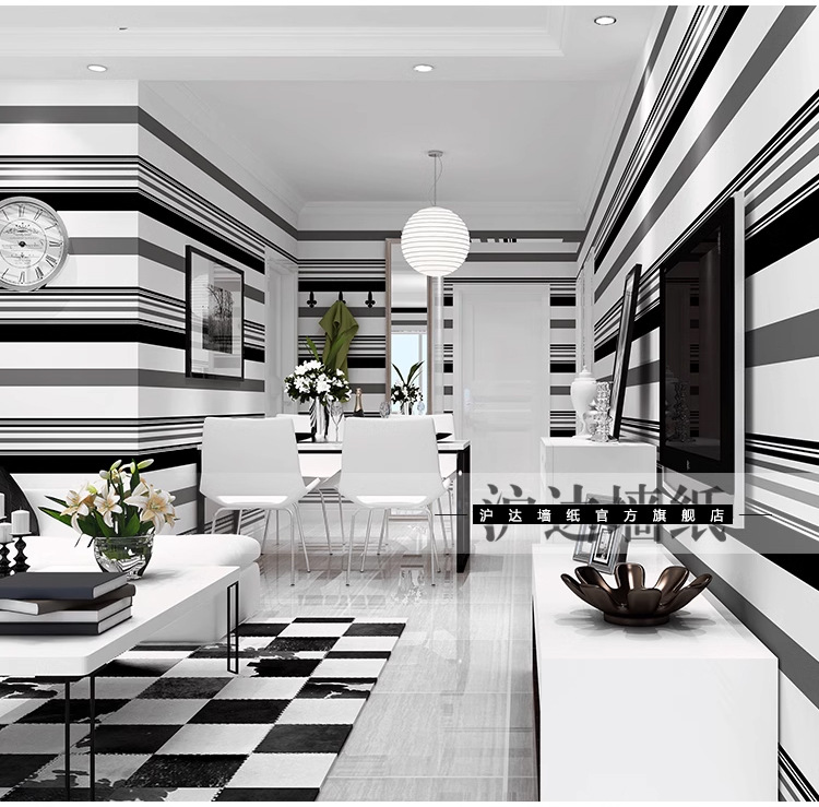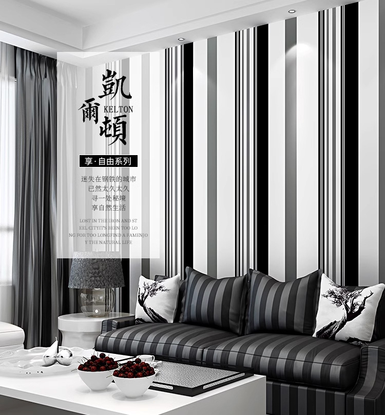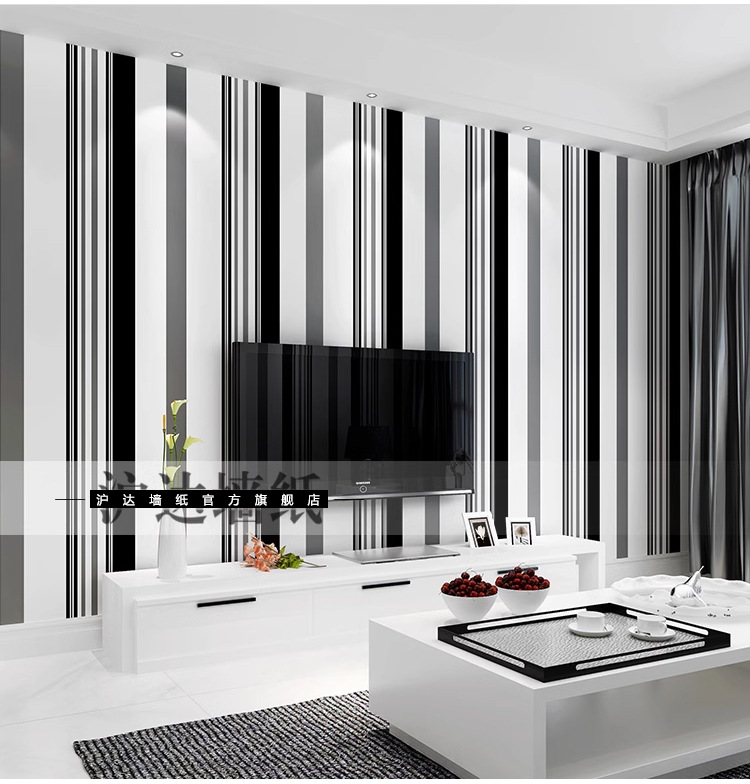 热卖电视背景墙壁纸影视客厅现代简约无纺布大气时尚黑白灰色条纹墙纸
