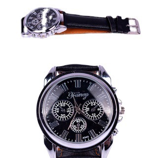 • 名称:男士大表盘时尚个性圆形PU带石英手表礼品套装(4Pcs/set)