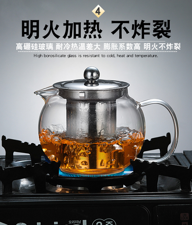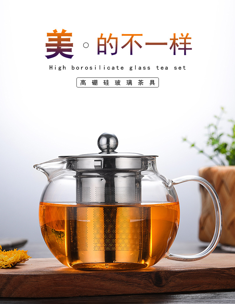 热卖玻璃茶壶加厚泡茶壶茶水分离不锈钢过滤大容量单壶耐热家用新中式