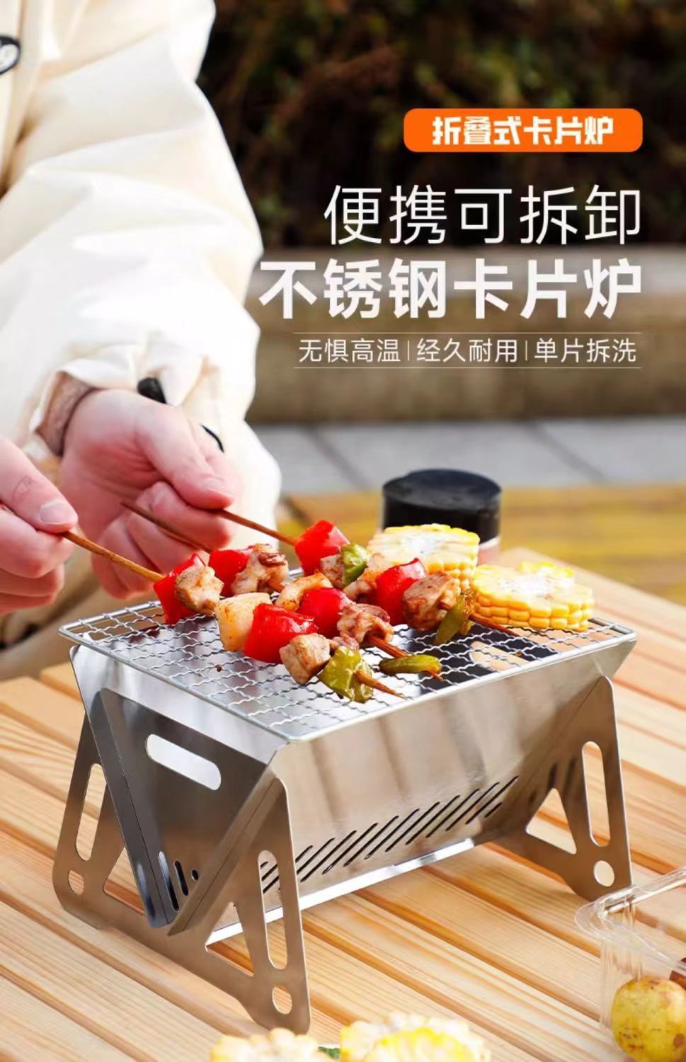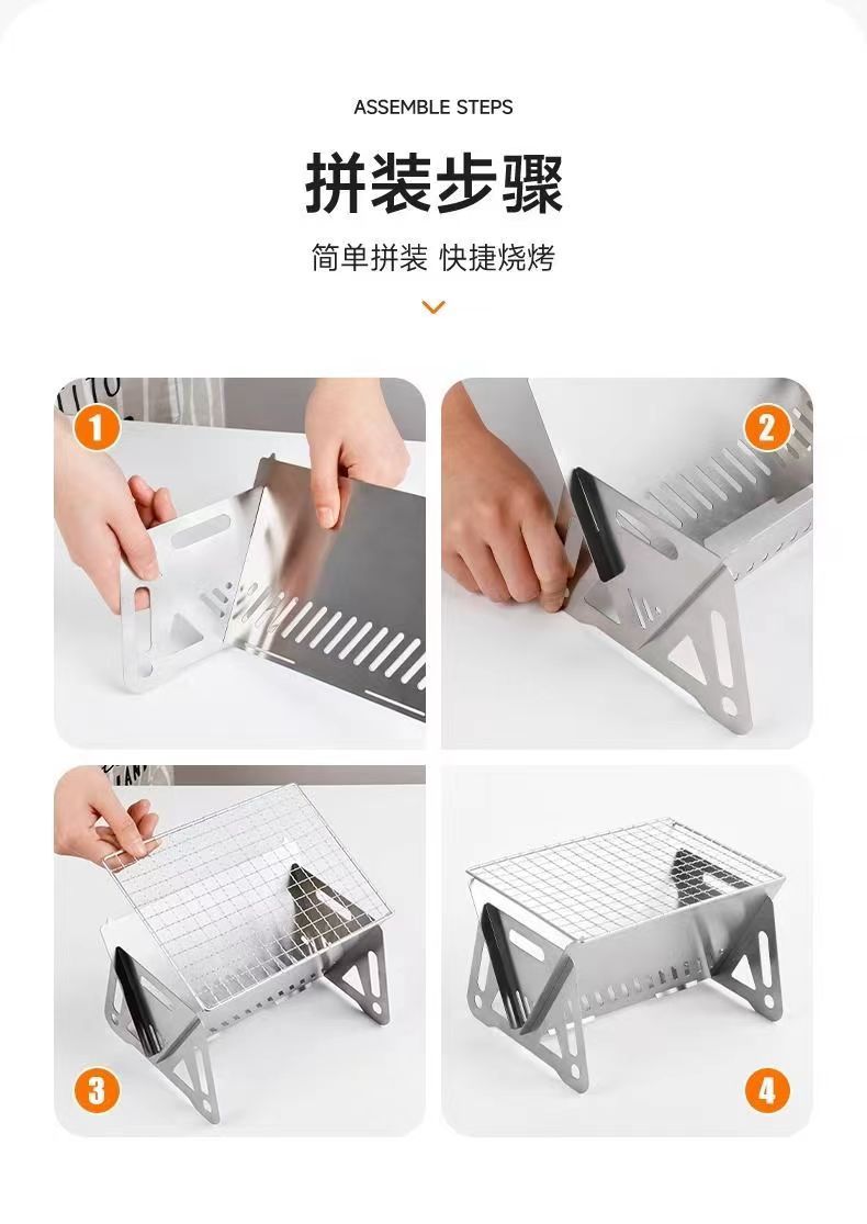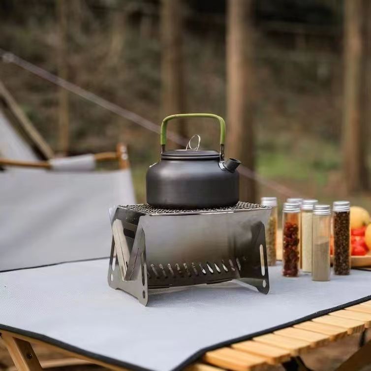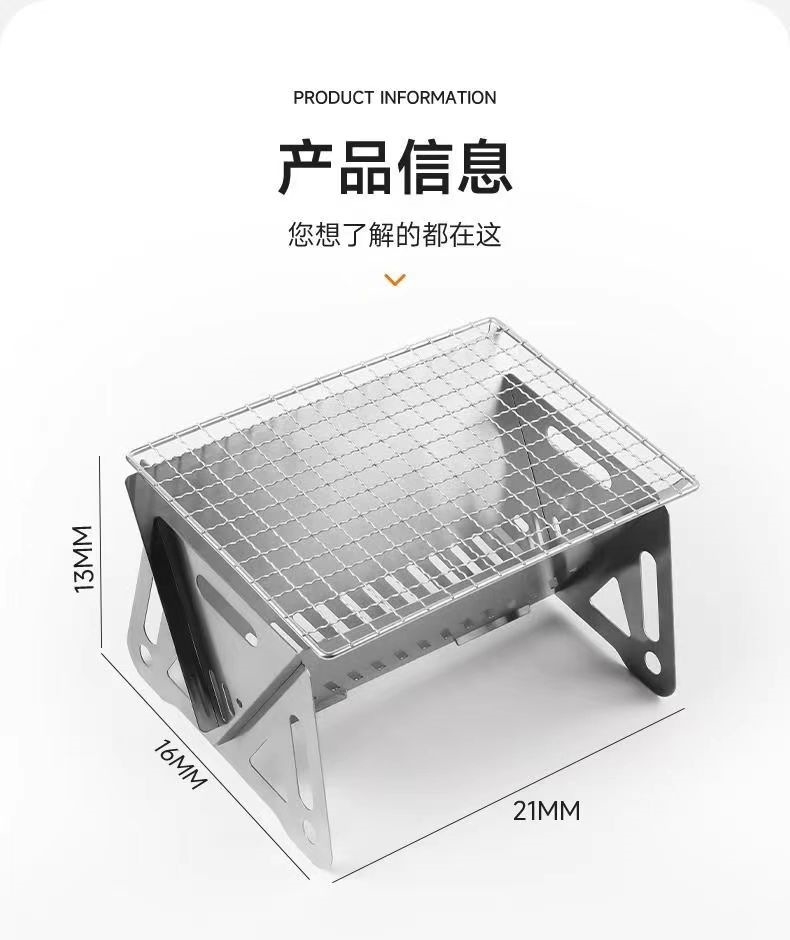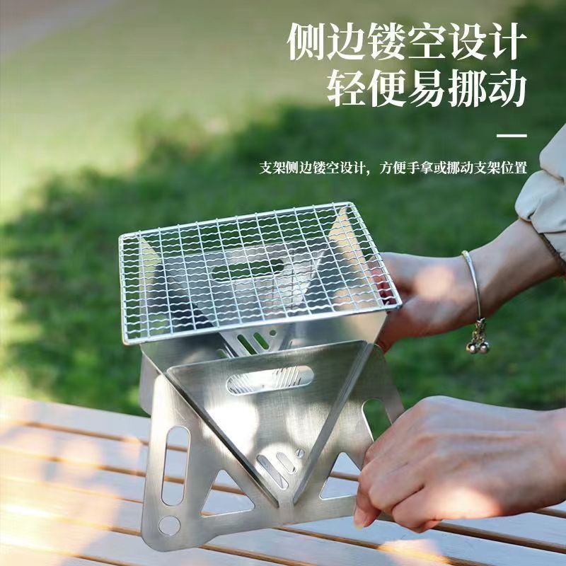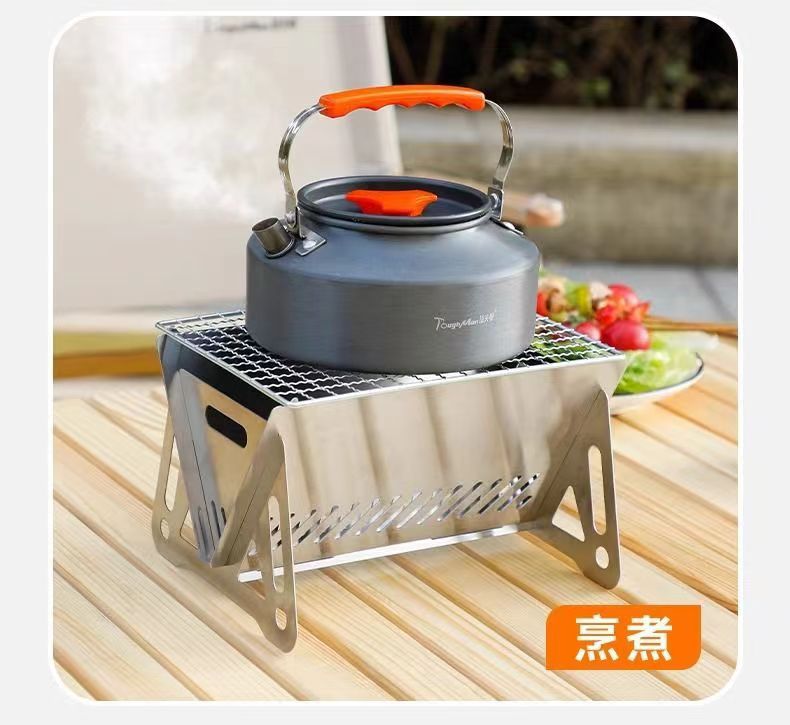热卖户外迷你版小烤炉烧烤野营折叠咖啡炉喝茶木炭炉不锈钢卡片式小炉