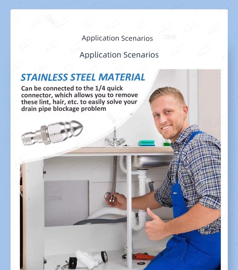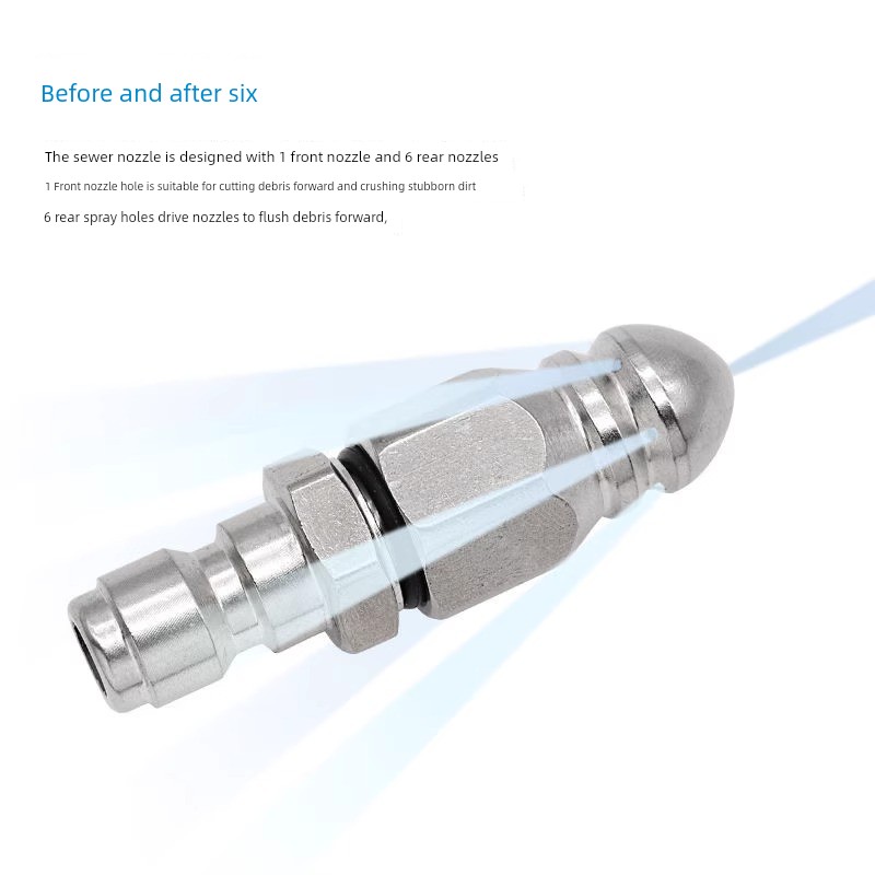 热卖洗车机用不锈钢1/4快插高压水老鼠头喷嘴宝塔前1后6下水道疏通头